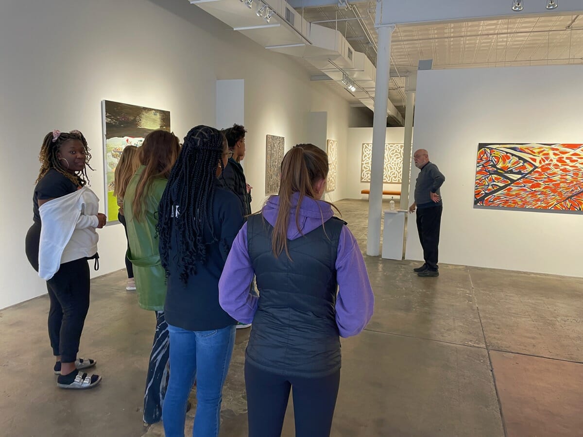 Each year, Upper School Fine Arts Teacher Denise Douglas shepherds her Photo 3 & 4 and AP 2D Design students through a tour of prominent local galleries. Douglas explains, “The purpose of the trip is to experience the art of current working artists, understand how galleries operate, see the relationship between artists and galleries, and generally feel comfortable visiting galleries without the pressure to purchase artwork.”