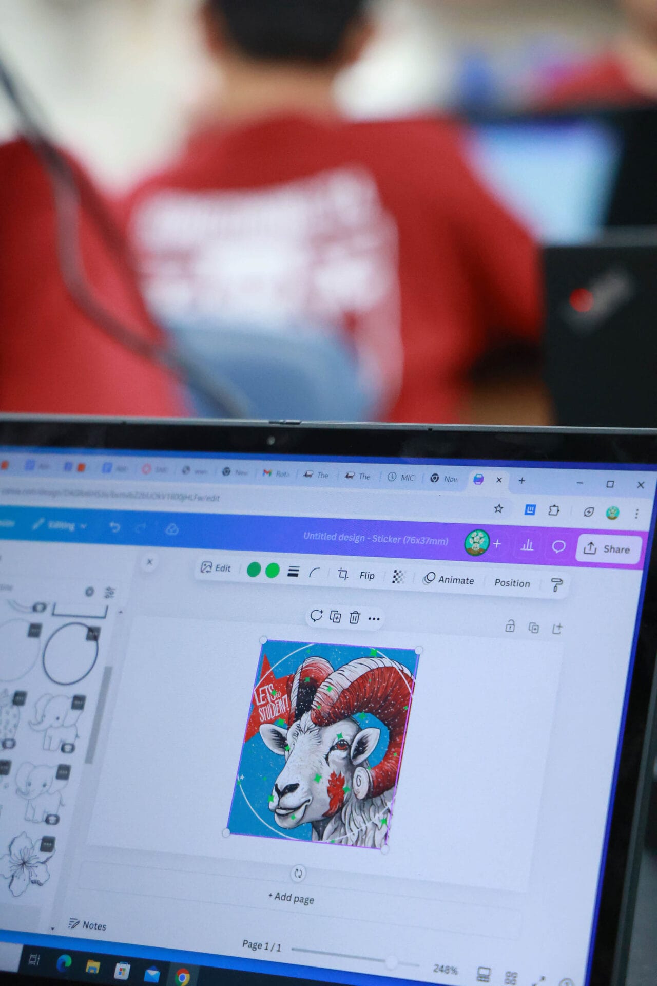 In a creative workshop in the Middle School makerspace, Middle School Science Teachers Branson Lawrence and Kelly Long led students in designing personalized stickers for student recognition. Students will vote on their favorite design, and the winning sticker will be used to reward students who go above and beyond, whether it’s helping others, demonstrating exceptional effort in class, or showcasing leadership qualities.