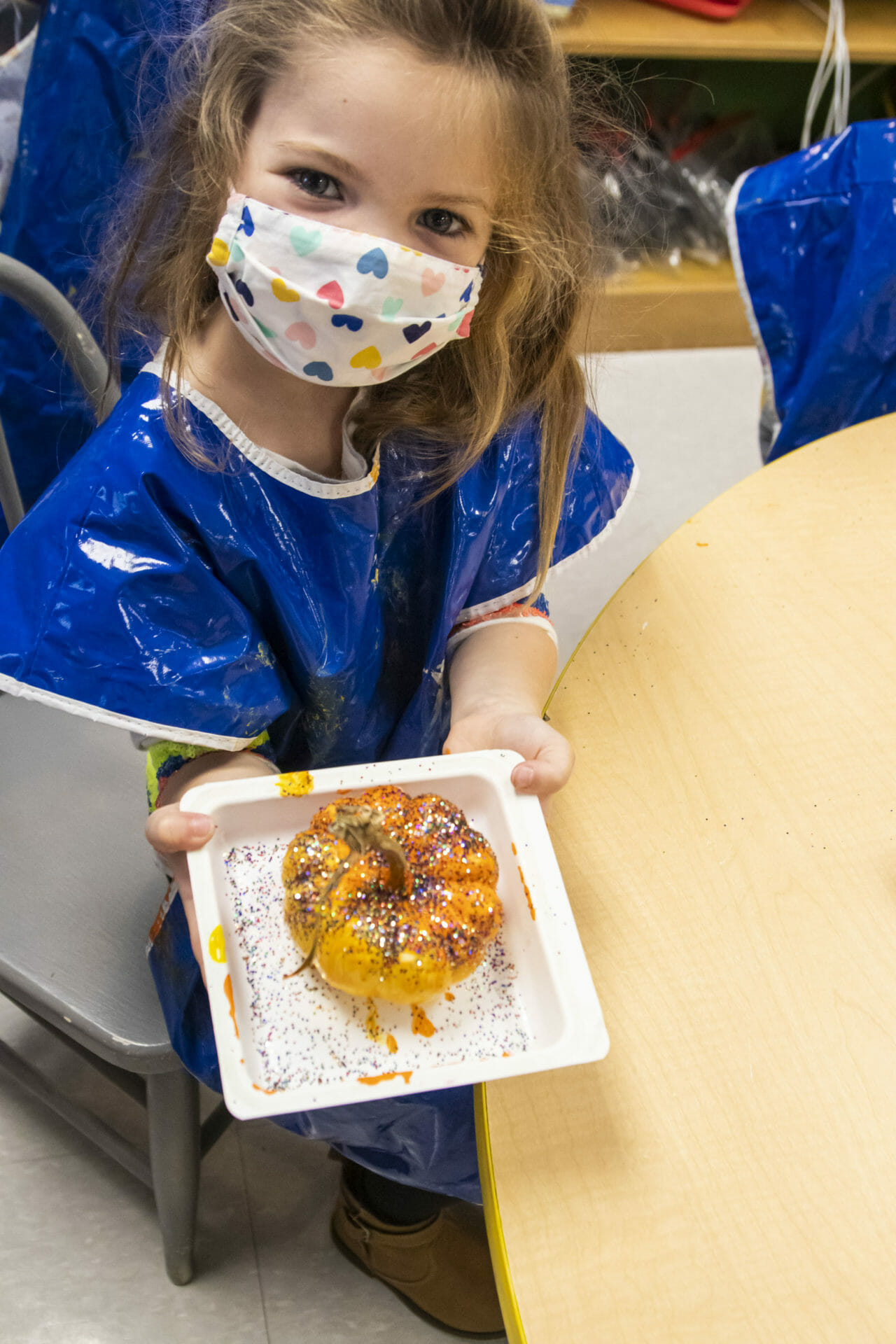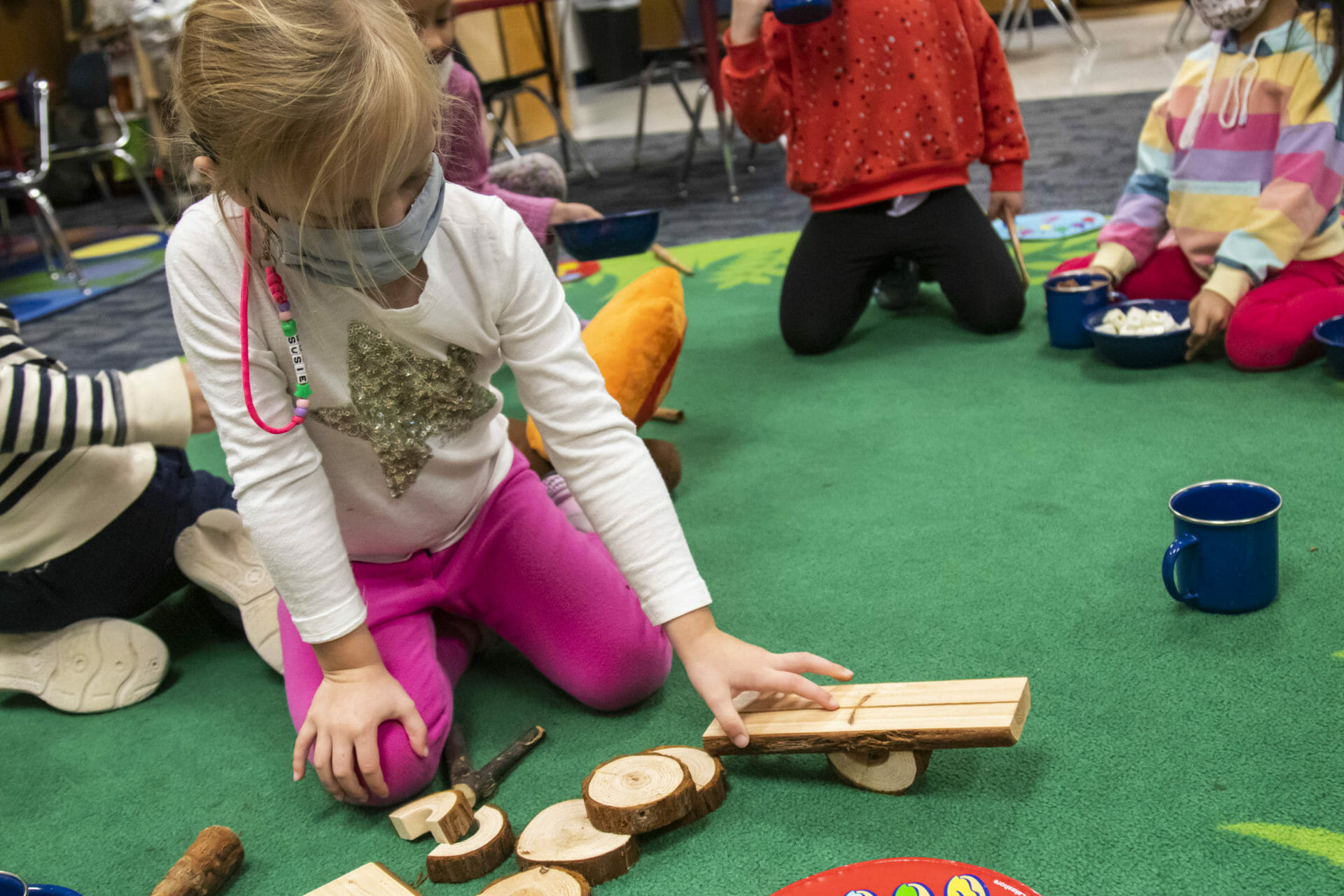 Students also enjoyed different habitat stations with campfire building logs, pumpkin decorating, forest paintings, owl art, and forest-related books. There was something for everyone to explore, from s’mores (using white and brown math blocks) to finger-painting.