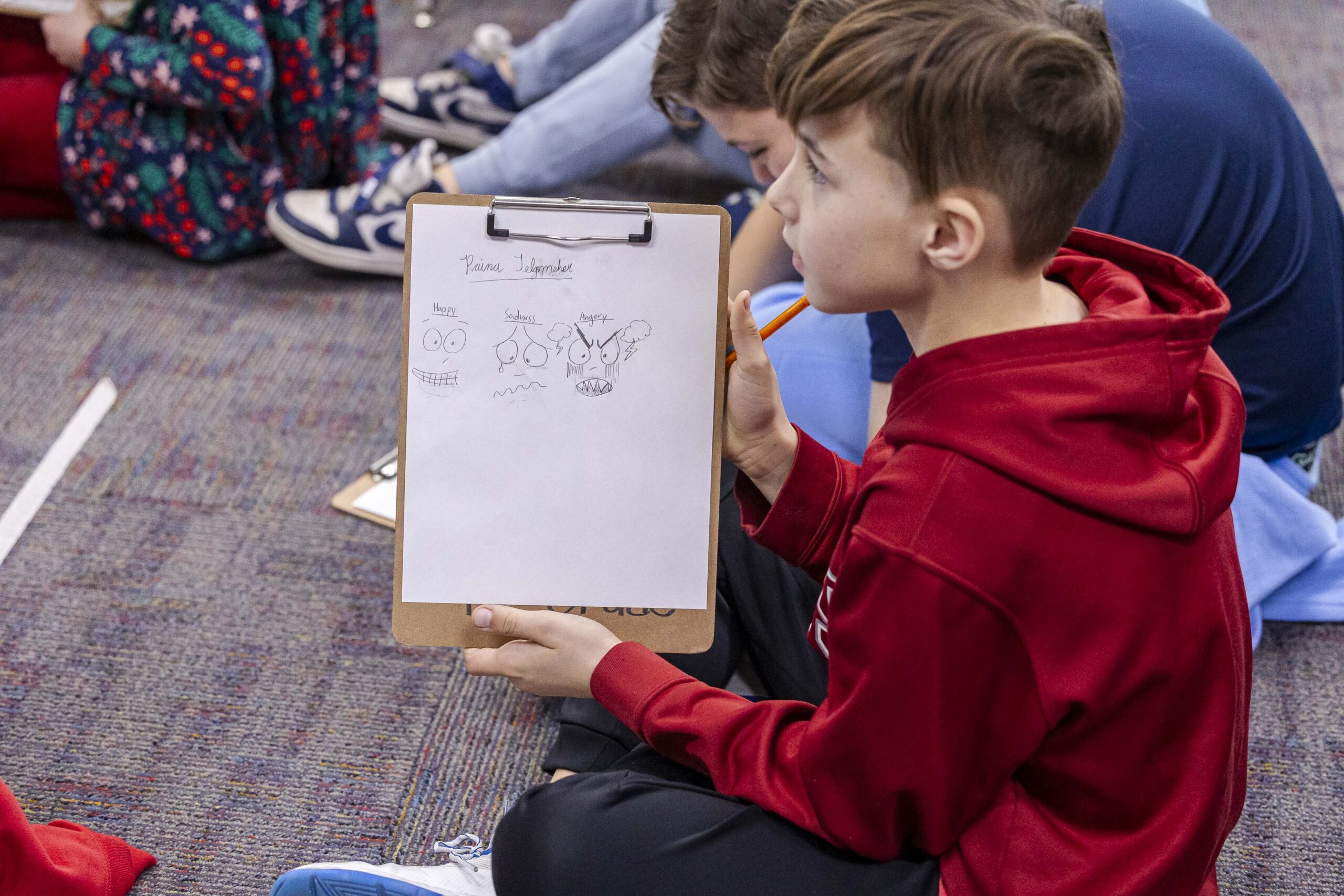 The inspiration didn’t end with the Zoom call. Telgemeier will visit the students in Jen Van Dyken‘s fourth-grade classroom at a later date, and students can continue exploring her journey through her new book, Facing Feelings, and a graphic novel, The Cartoonists Club, co-created with Scott McCloud.