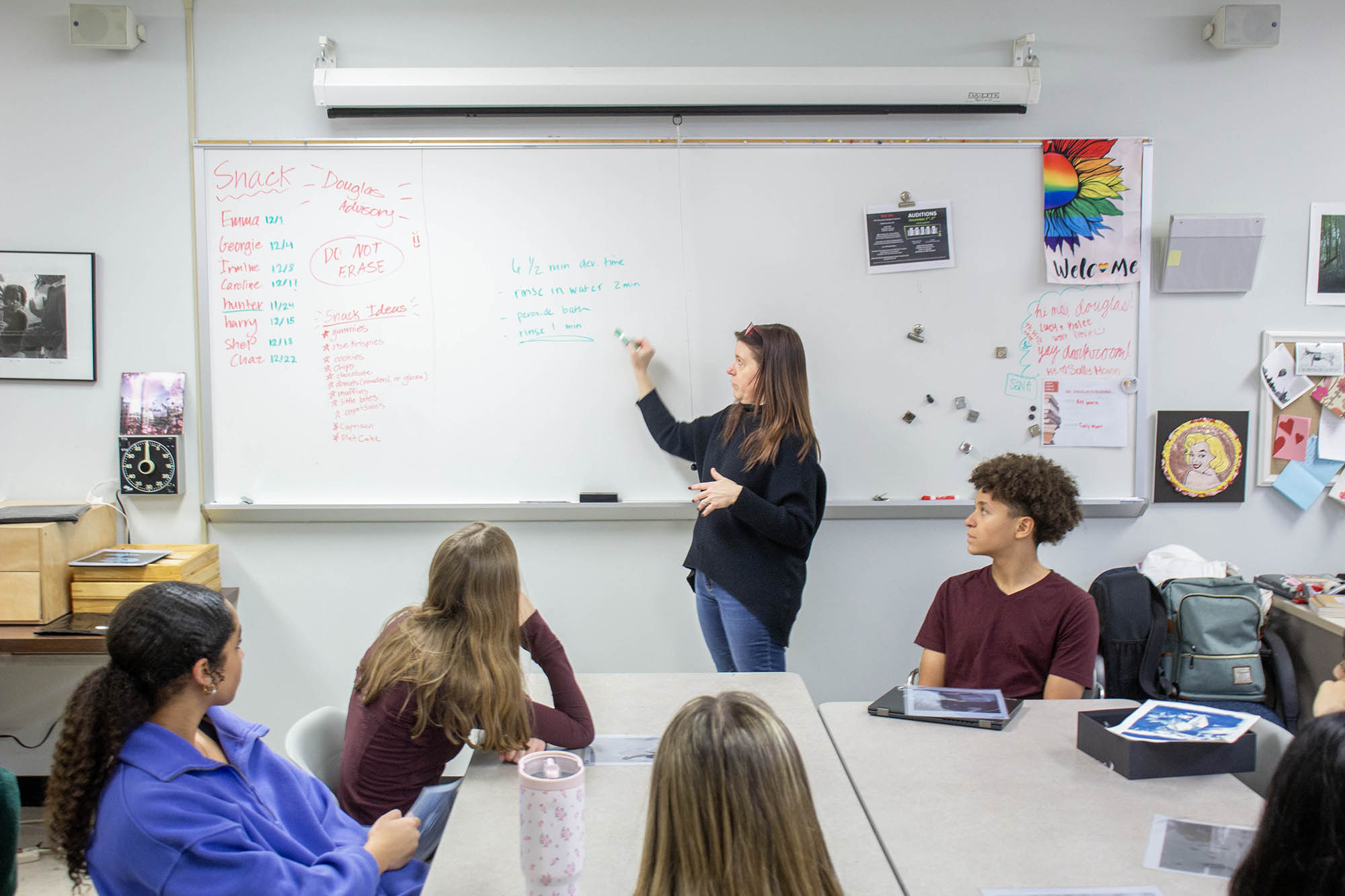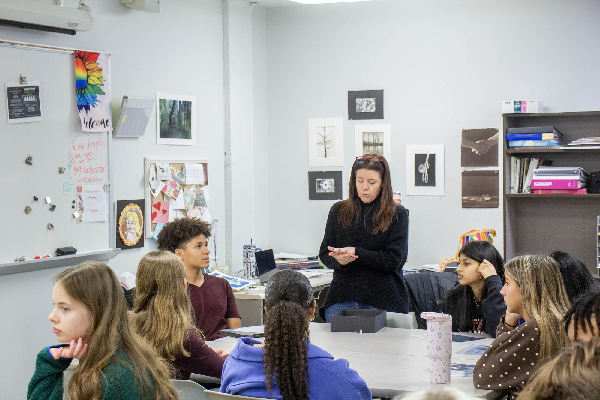Cyanotype printing is a type of photography that feels both creative and hands-on. Instead of using a modern printer or a regular photo lab, students make images using chemicals, paper, and sunlight. At MICDS, this Winter Term cyanotype photography class, taught by Upper School Photography Teacher Denise Douglas, introduces students to an older photo process that depends on careful steps and attention to detail. The class is practical, artistic, and focused on learning through trial and error.