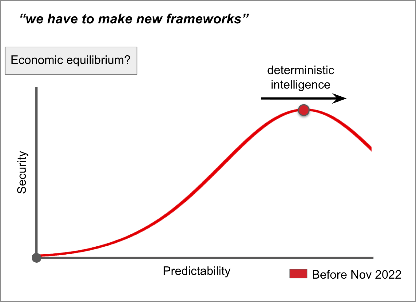 One such new framework might proceed from the assumption that economic security is a function of predictability and that, prior to OpenAI’s release of ChatGPT in November 2022 and the subsequent proliferation of large language model (LLM) AI technologies, human beings in educational and professional settings maximized their security principally through behaviors correlated with predictability—memorization, repetition, conscientiousness, consistency, and conformity, for example.