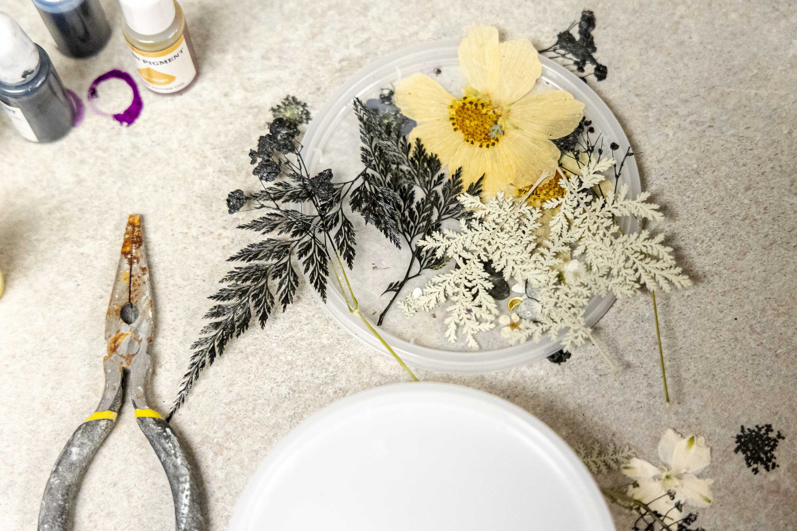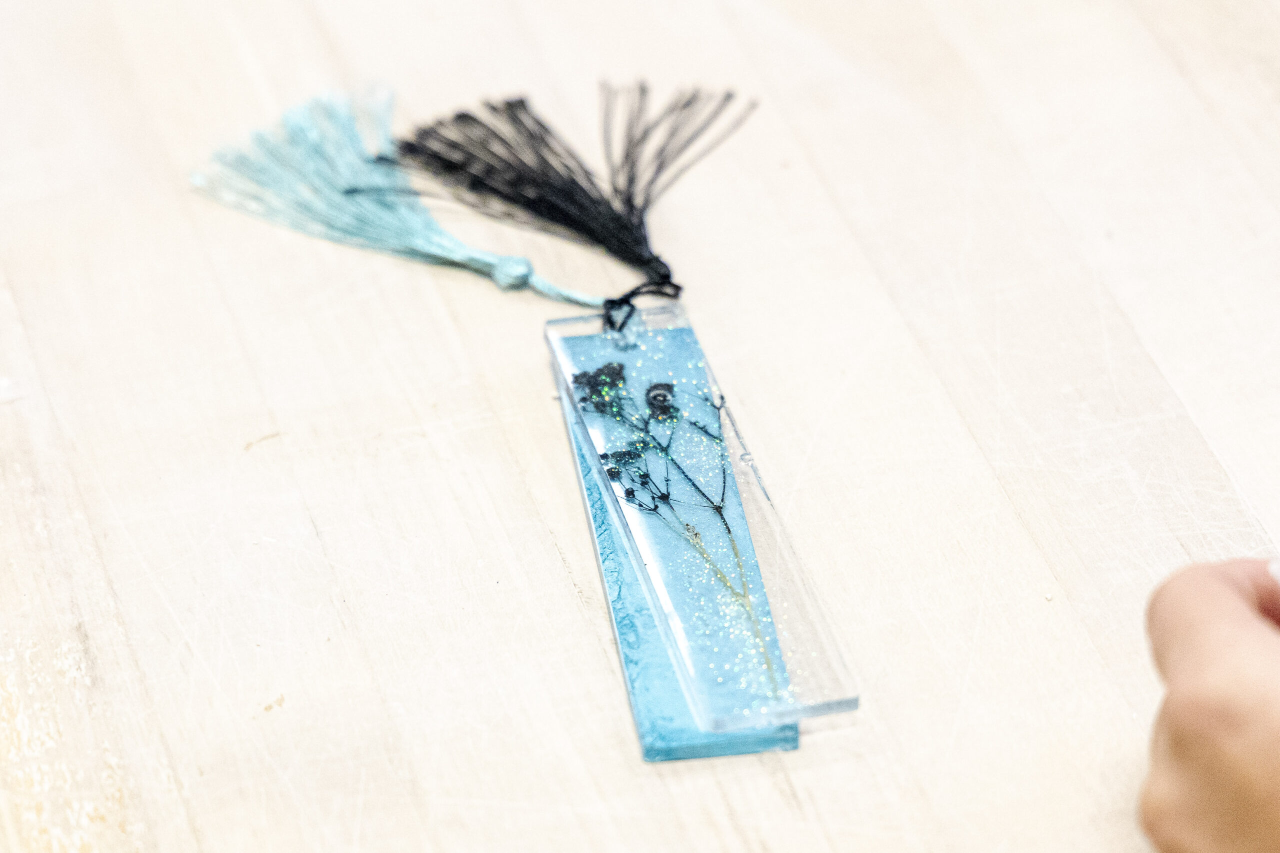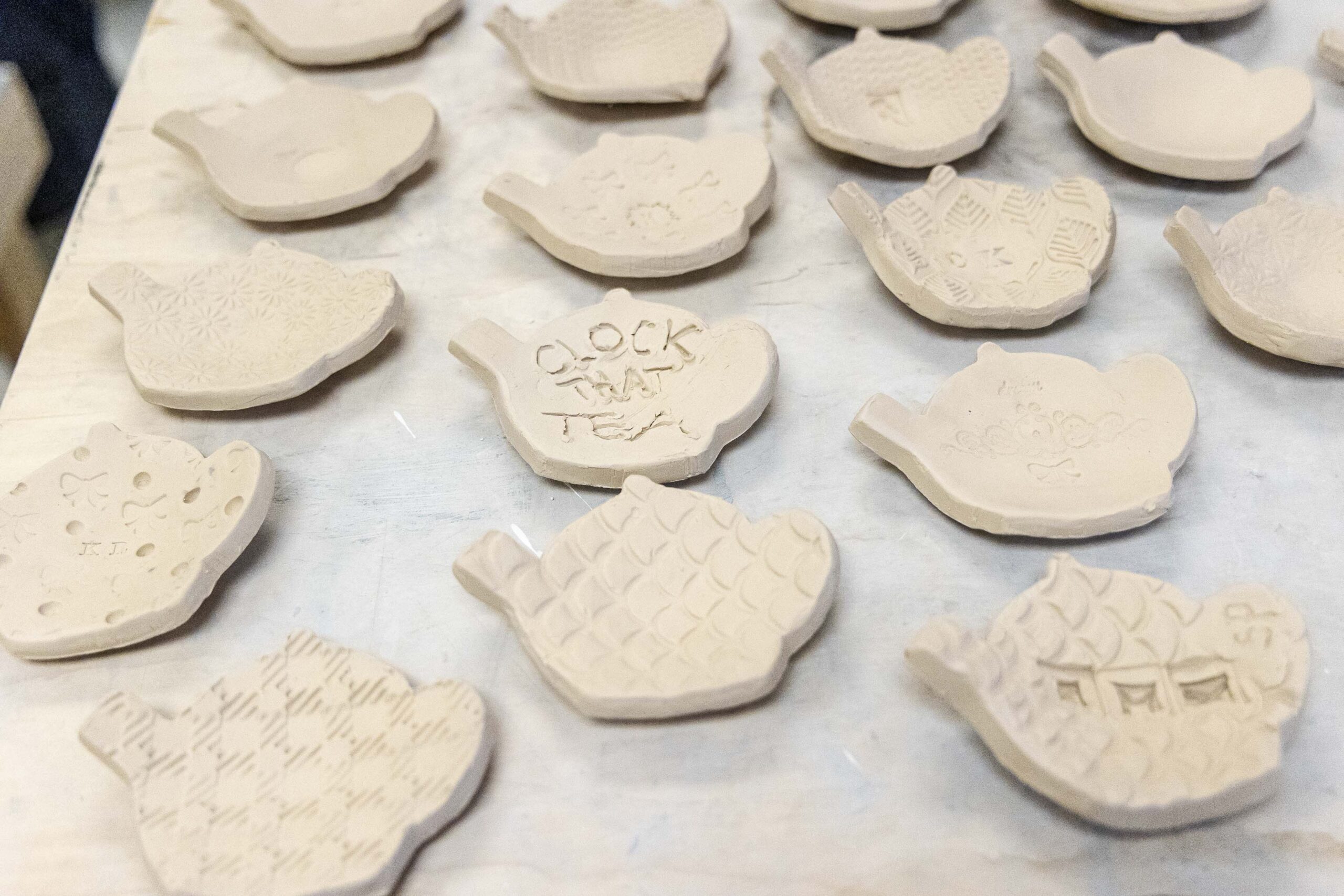 As students drifted into the art studio, they checked the results of their still-warm glass pieces and lightly tapped their resin works to see if their molds were fully cured. Students chose resin molds that could serve as simple design objects or functional pieces, such as bookmarks or jewelry. Other students were picking up the prior day’s clay pieces to continue molding and shaping their 3D inspirations.