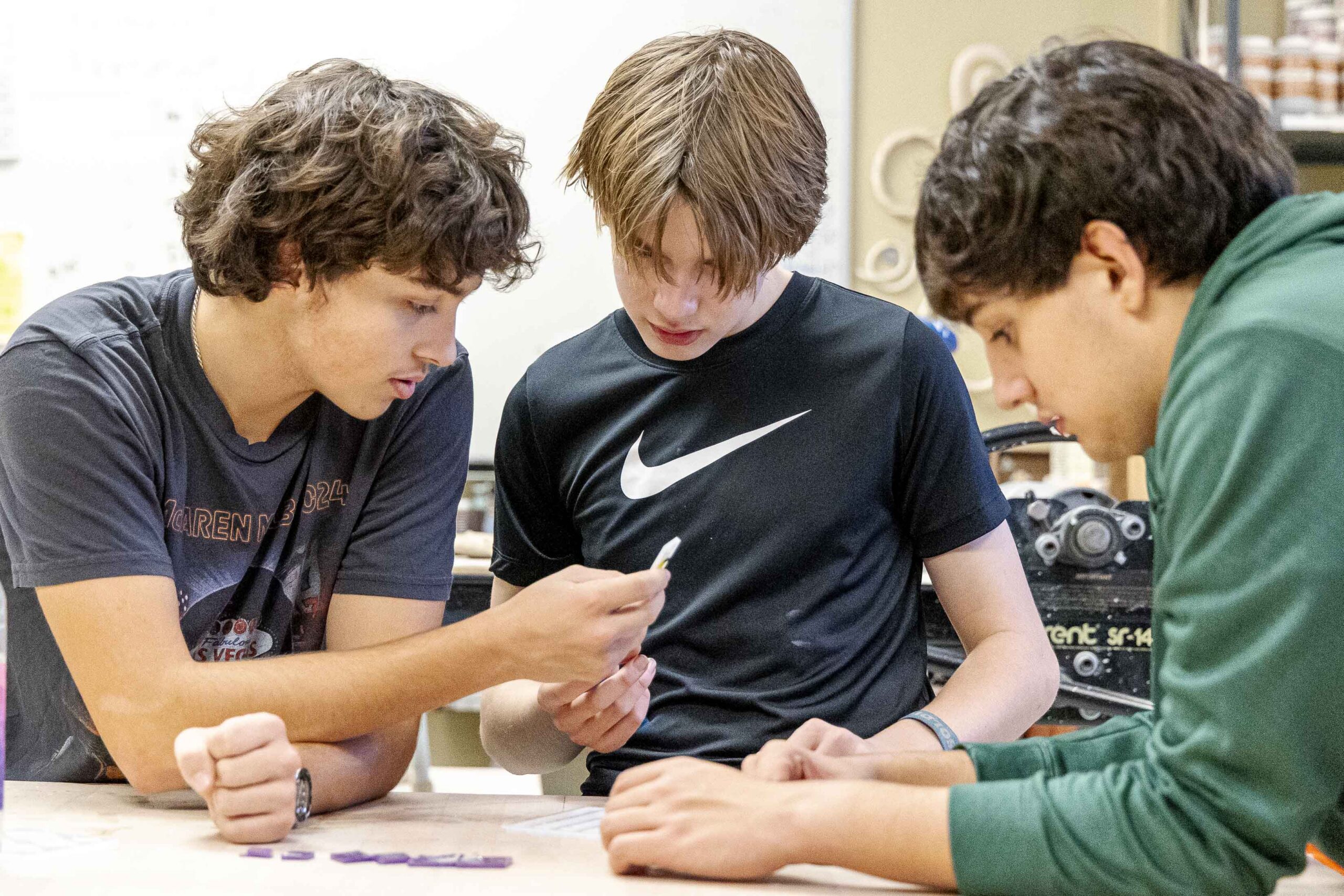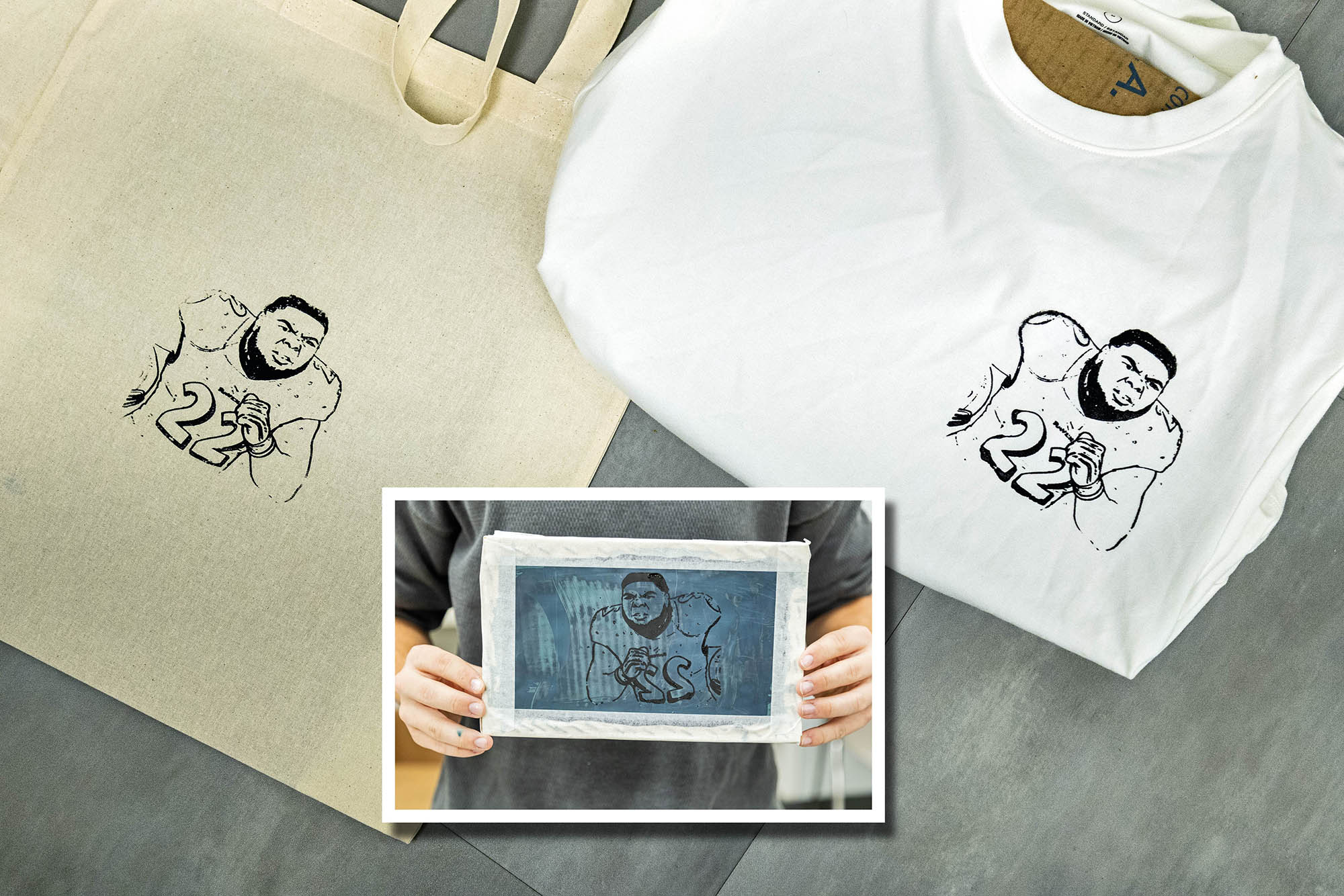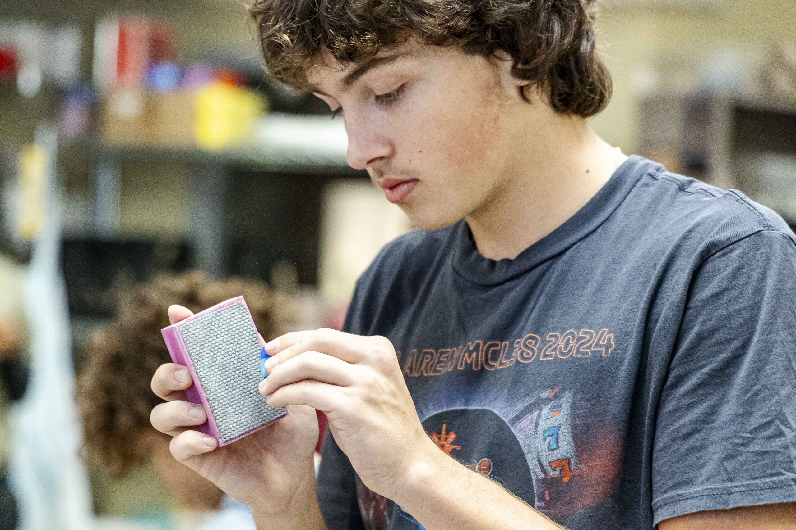 While examining the students’ final screenprinting designs before putting ink to fabric, Williams said, “3D art is expressive. Students have dabbled in screen printing to design bold prints, fired up their imaginations with copper enameling, made jewelry and pottery, and more. Whether they love making wearable art, custom décor, or just want to try something new, this class is all about experimenting, creating, and discovering your unique artistic voice.”