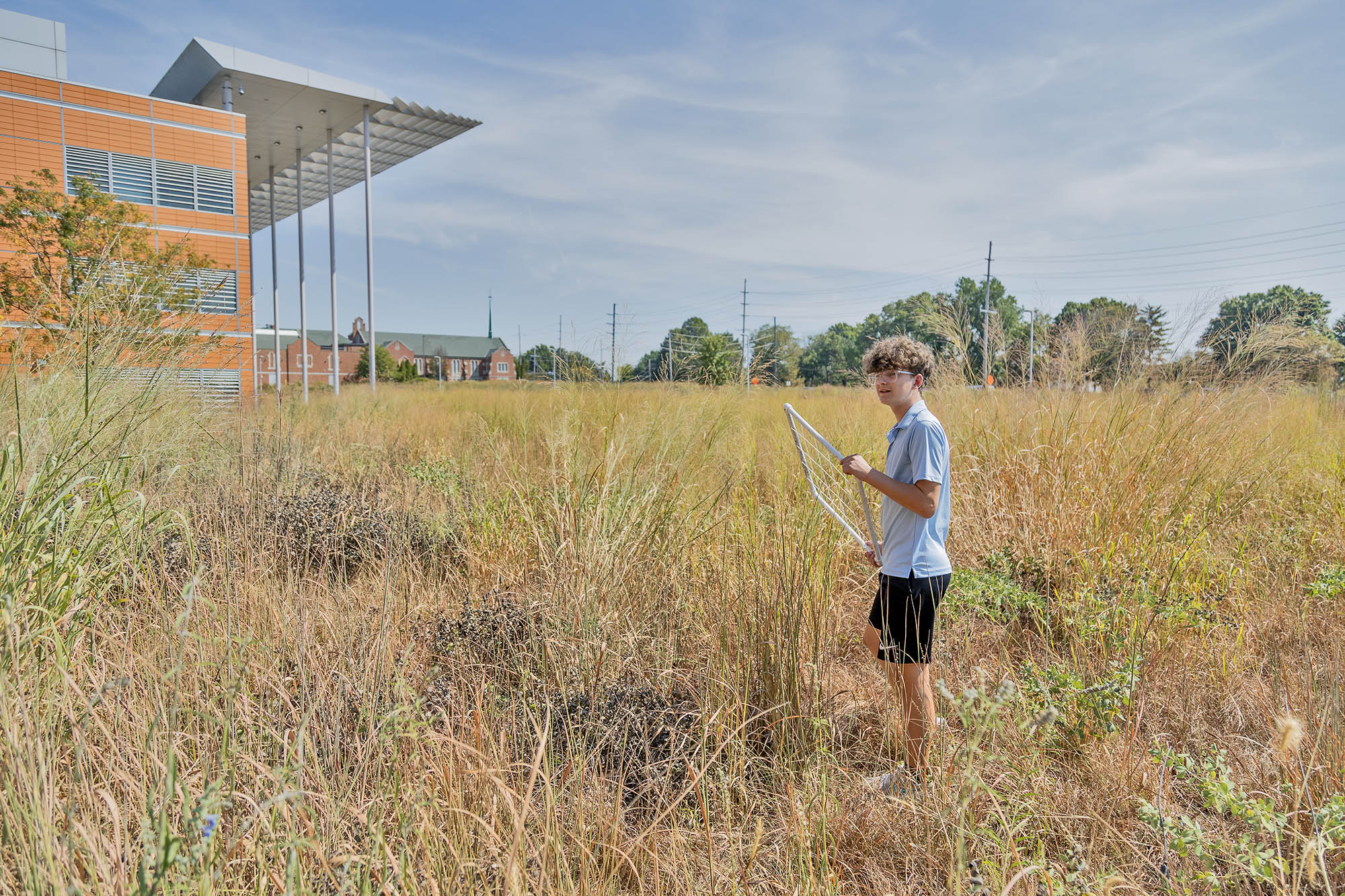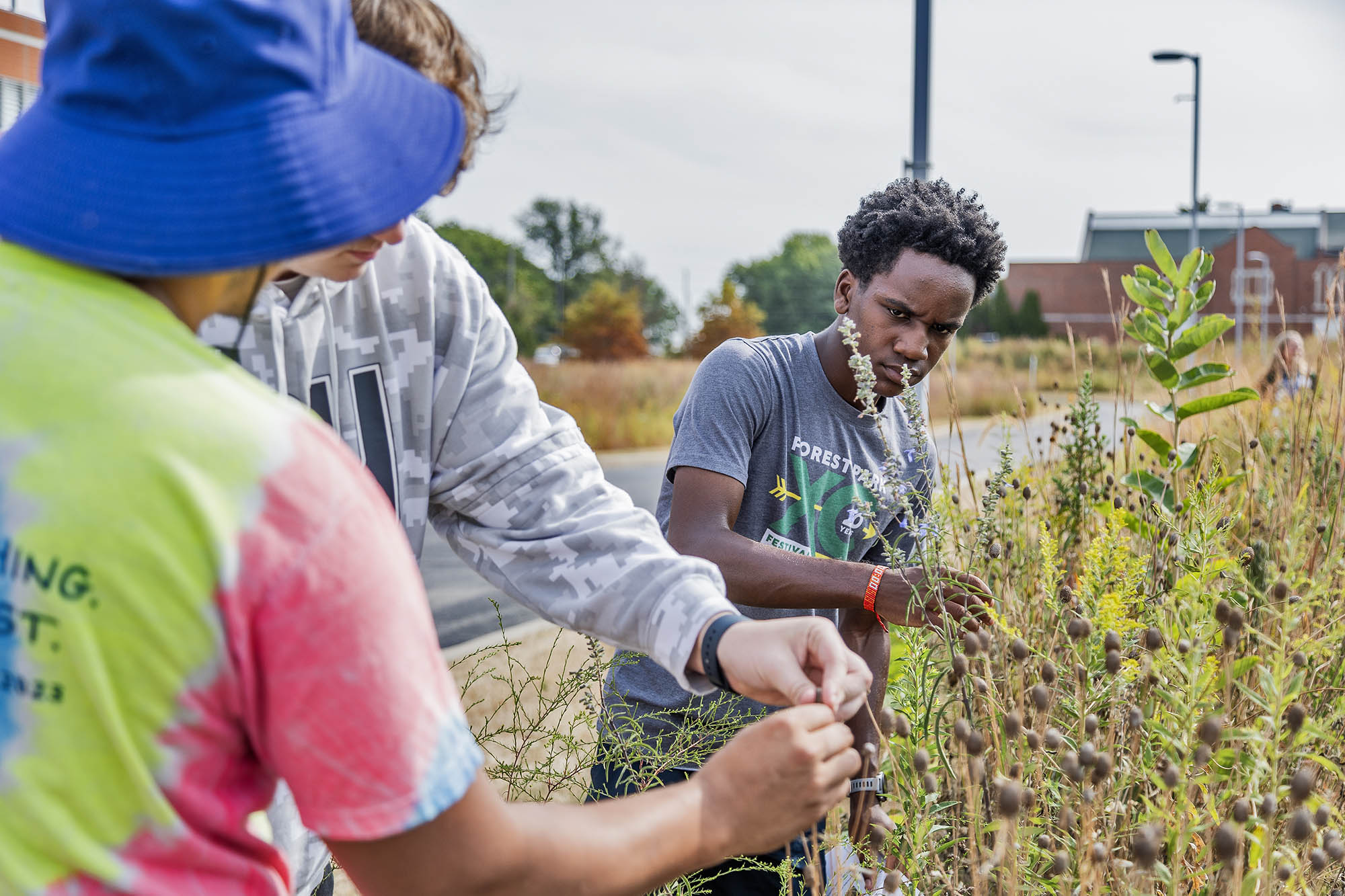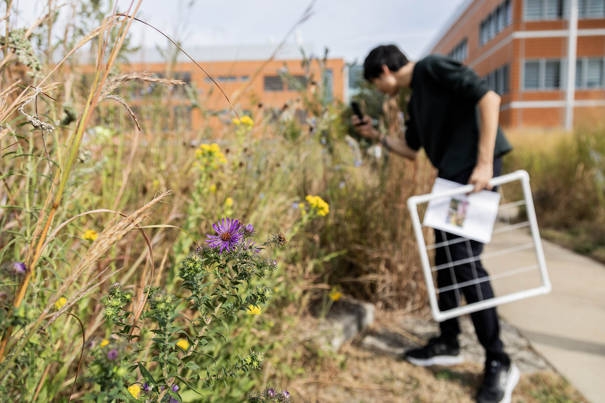 To start, biology students headed to the north end of A Lot on campus, where a sign peeks through the tall plants: Prairie Restoration Area. Using quadrats, they collected a wide variety of data to calculate percent cover, identify species, and calculate biodiversity.