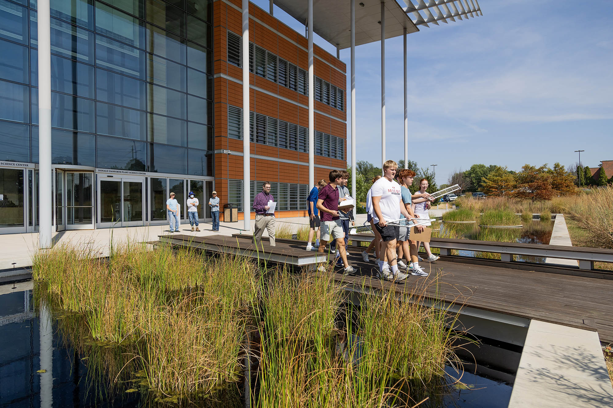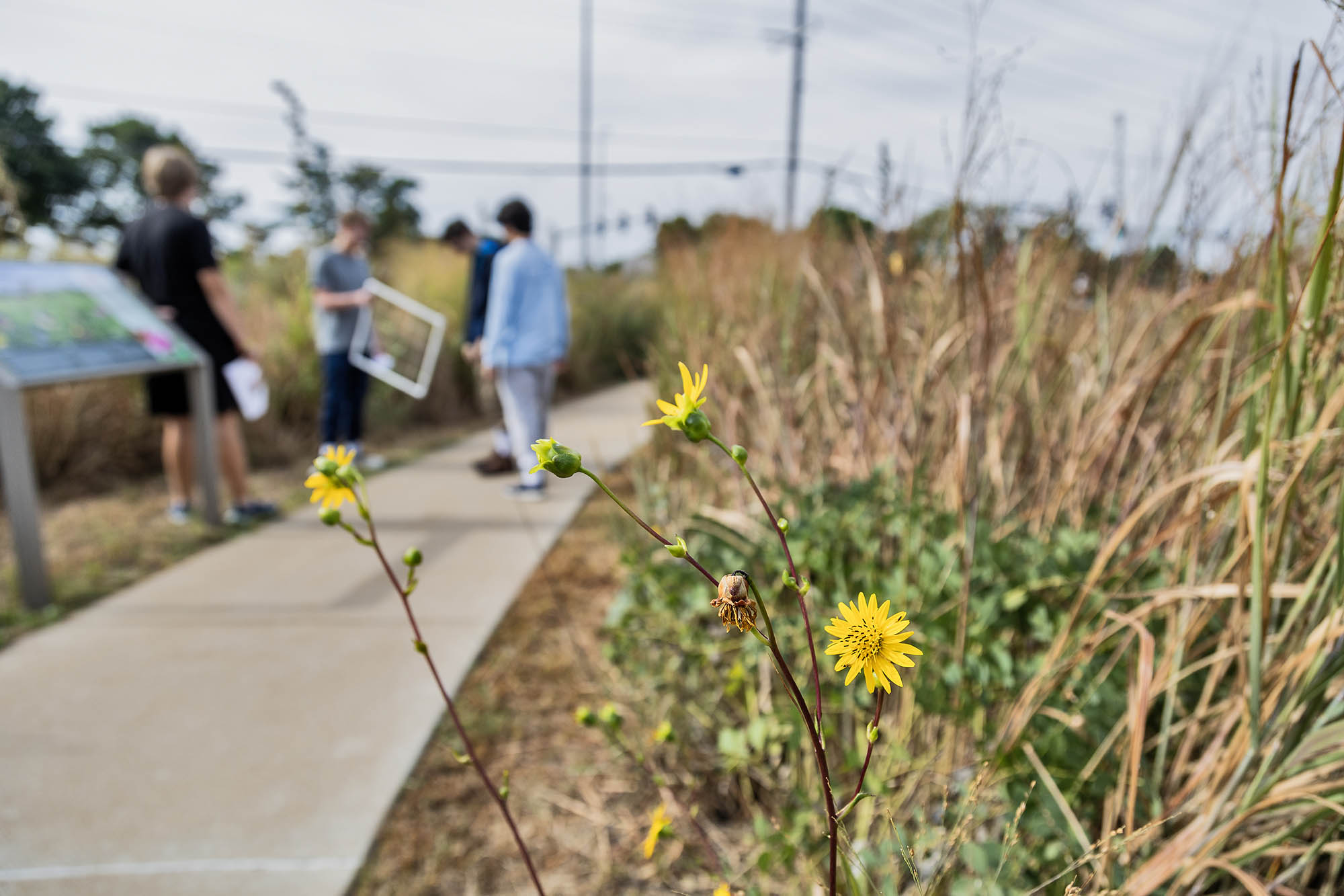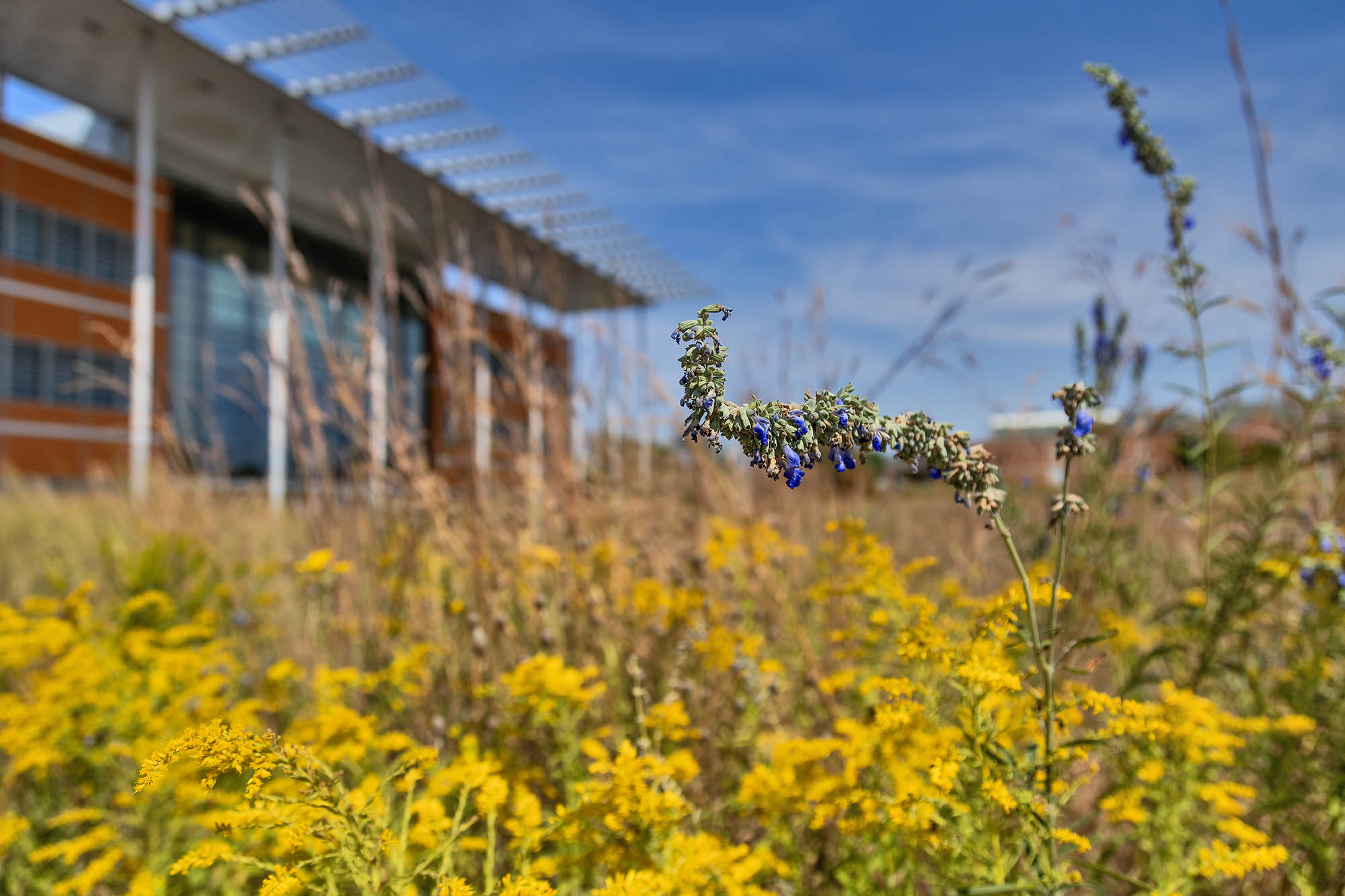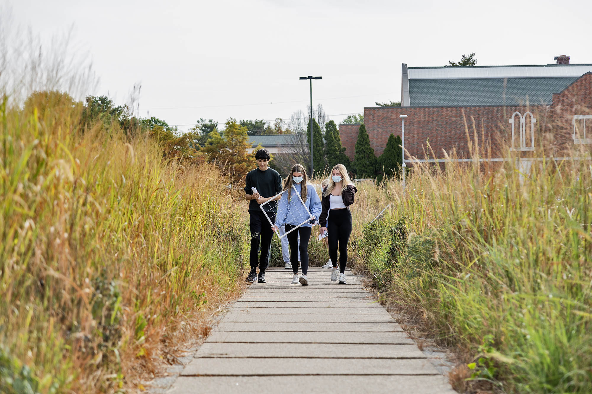 To start, biology students headed to the north end of A Lot on campus, where a sign peeks through the tall plants: Prairie Restoration Area. Using quadrats, they collected a wide variety of data to calculate percent cover, identify species, and calculate biodiversity.