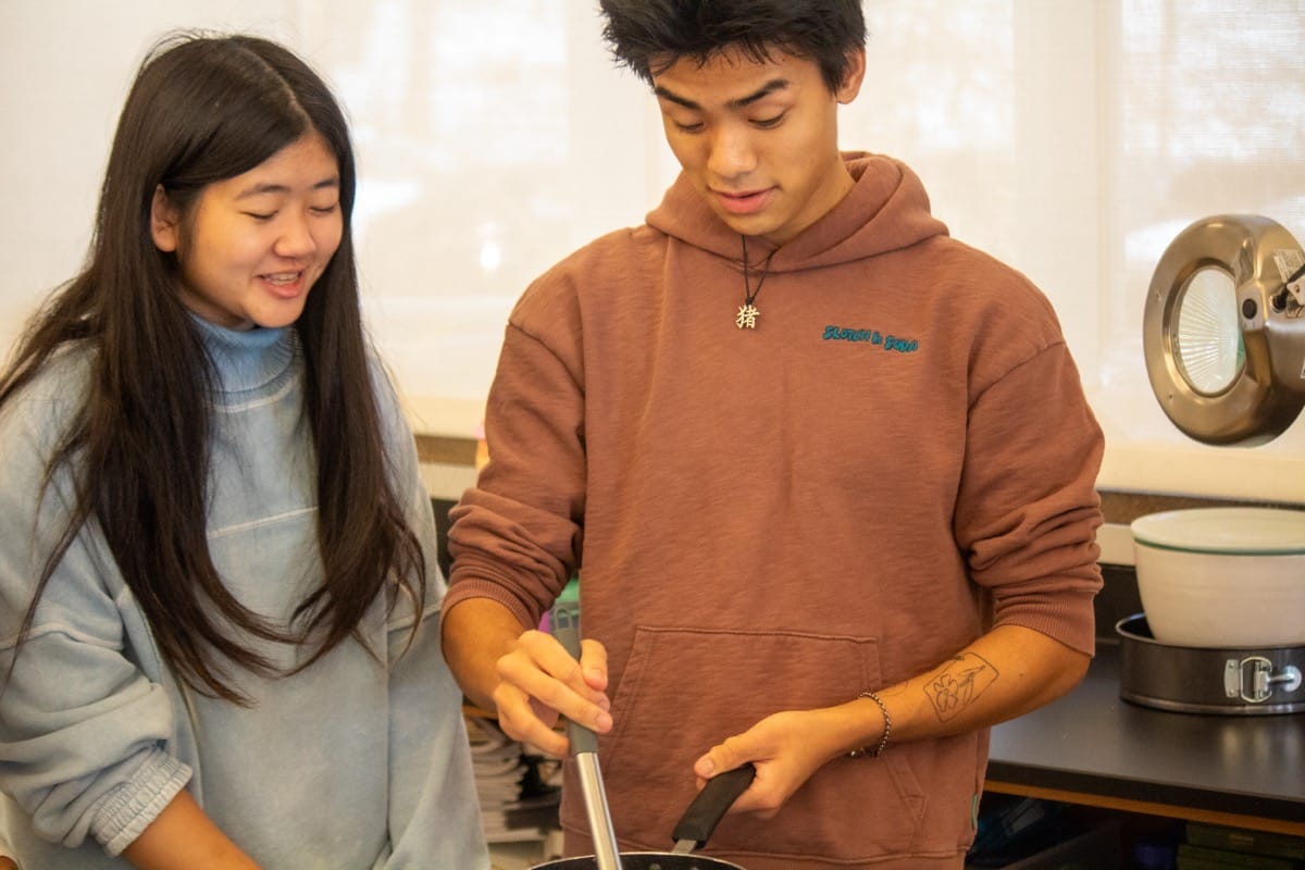 Have you ever asked why whole milk makes yogurt more acidic? Or what causes bread to rise? Have you ever wondered how boba can mimic artificial strawberry flavoring? If you have ever posed any of these questions, then Kitchen Chemistry is the class for you. Led by Dr. Megumi Yoshioka-Tarver, Upper School Chemistry Teacher, and Chaley Poth, Upper School Mathematics Teacher, MICDS students dive deep into the reactions that drive everyday cooking with delicious results. Kitchen Chemistry exists at the intersection of practical, fun, and informative, teaching students basic cooking skills in addition to the chemistry behind their work.