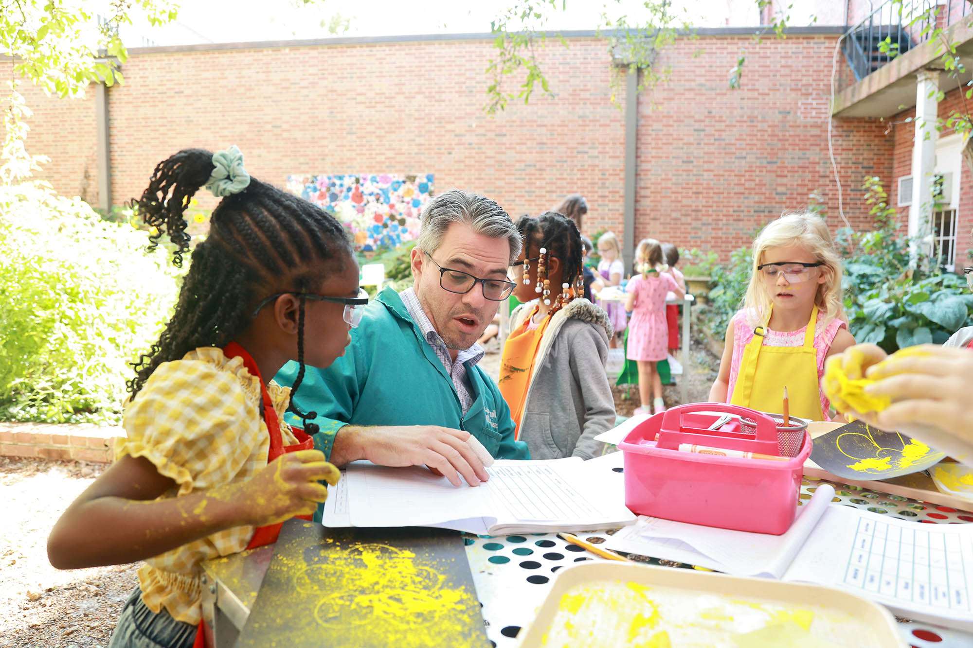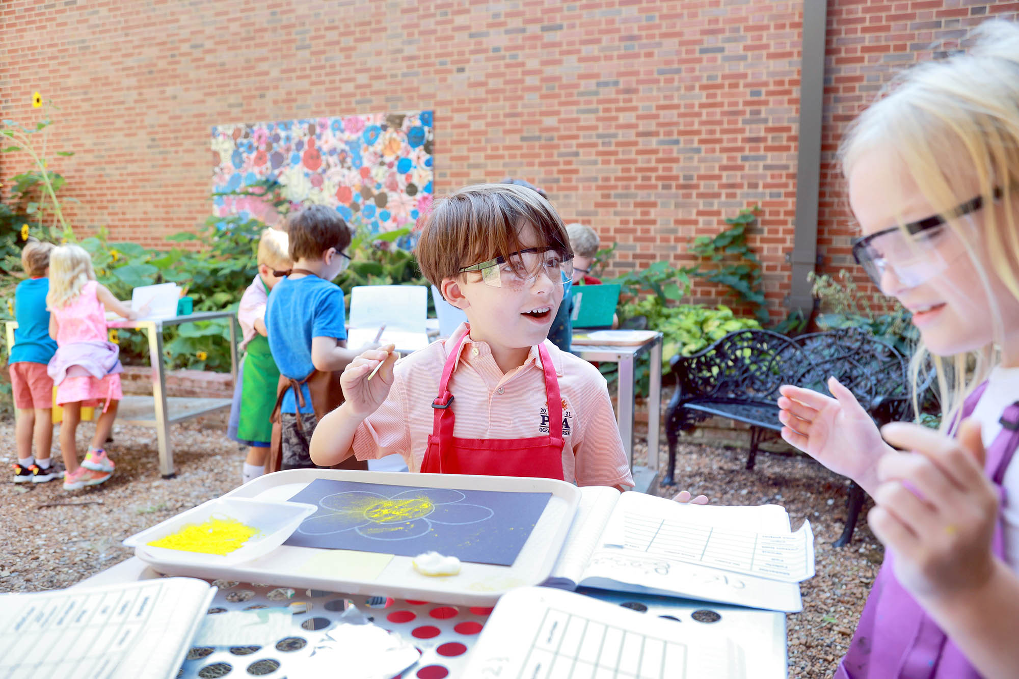 First grade explored the connection between pollinators and flowers. “What does a pollinator feel like?” drove their lab. Students tested various textured materials in mock pollen powder to see what materials were best at collecting pollen. “We all agreed that our soft materials were best,” said Pupillo. Later in the week, first grade returned to the courtyard to count pollinators and explore their favorite plants in greater detail. Students loved exploring pumpkins, sunflowers, and tomatoes in the garden.