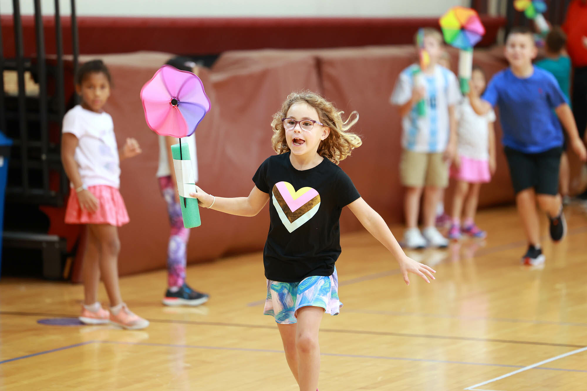 “In PE, we played a game on Monday called Steal the Seeds, which is similar to Capture the Flag, only using bean bags as seeds,” shared Jim Lohr, Lower School PE Teacher. “We then had a class where kids ran with flower pinwheels around a track. One day, we built flowers, which were designed by students in a group and built out of the equipment we use in Physical Education. We played flower-themed music in class, and the mood around flower week was awesome.”