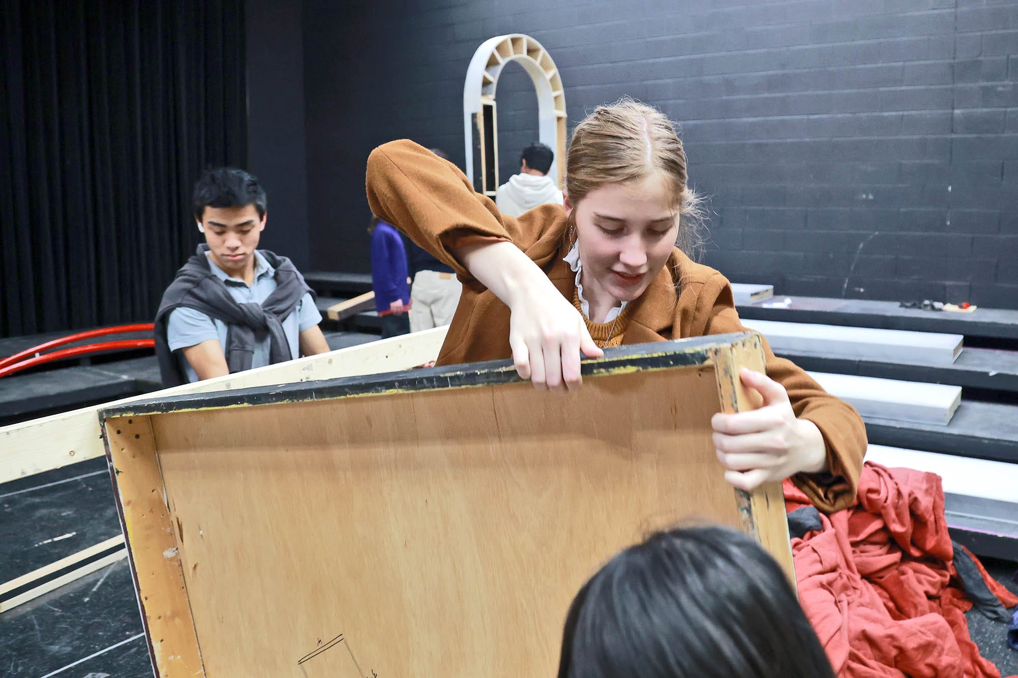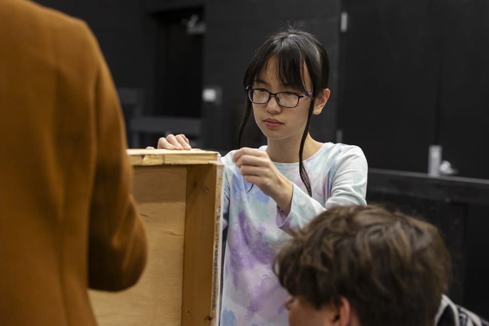Once oriented and with groups and sketches formed, Huber worked with the students on the build and install using the Seldom Scene workshop, which spills into the Price Theatre.