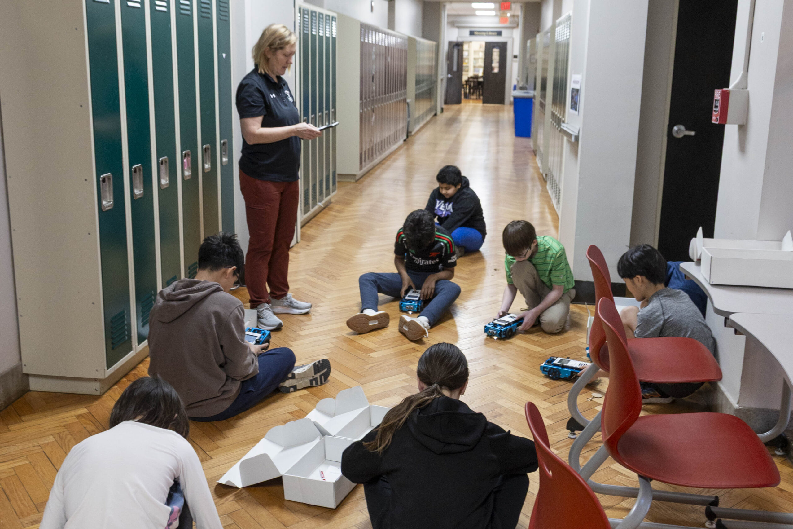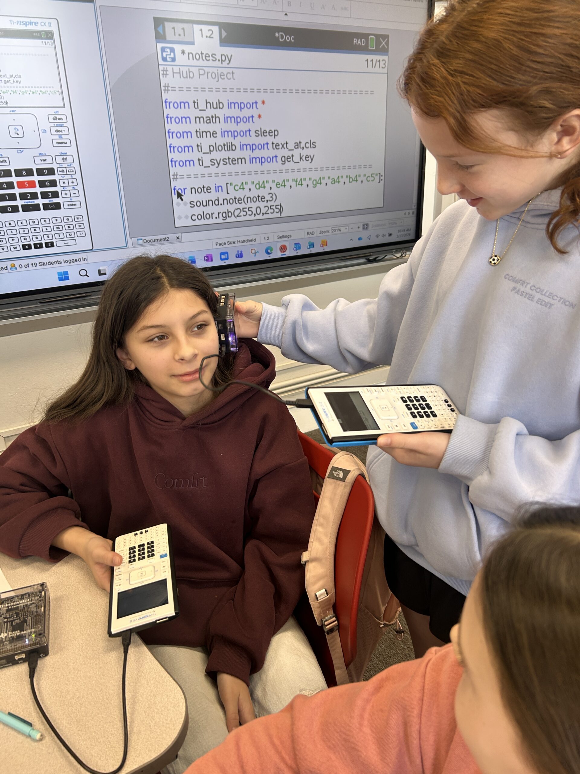 Other experiences in Week 2 have focused on coding and problem solving. Students wrote basic Python code on their TI-Nspire calculators using TI-hubs and TI-rovers. Through the code, they could control a light, programming it to blink and change colors. Ultimately, they composed songs with flashing lights.