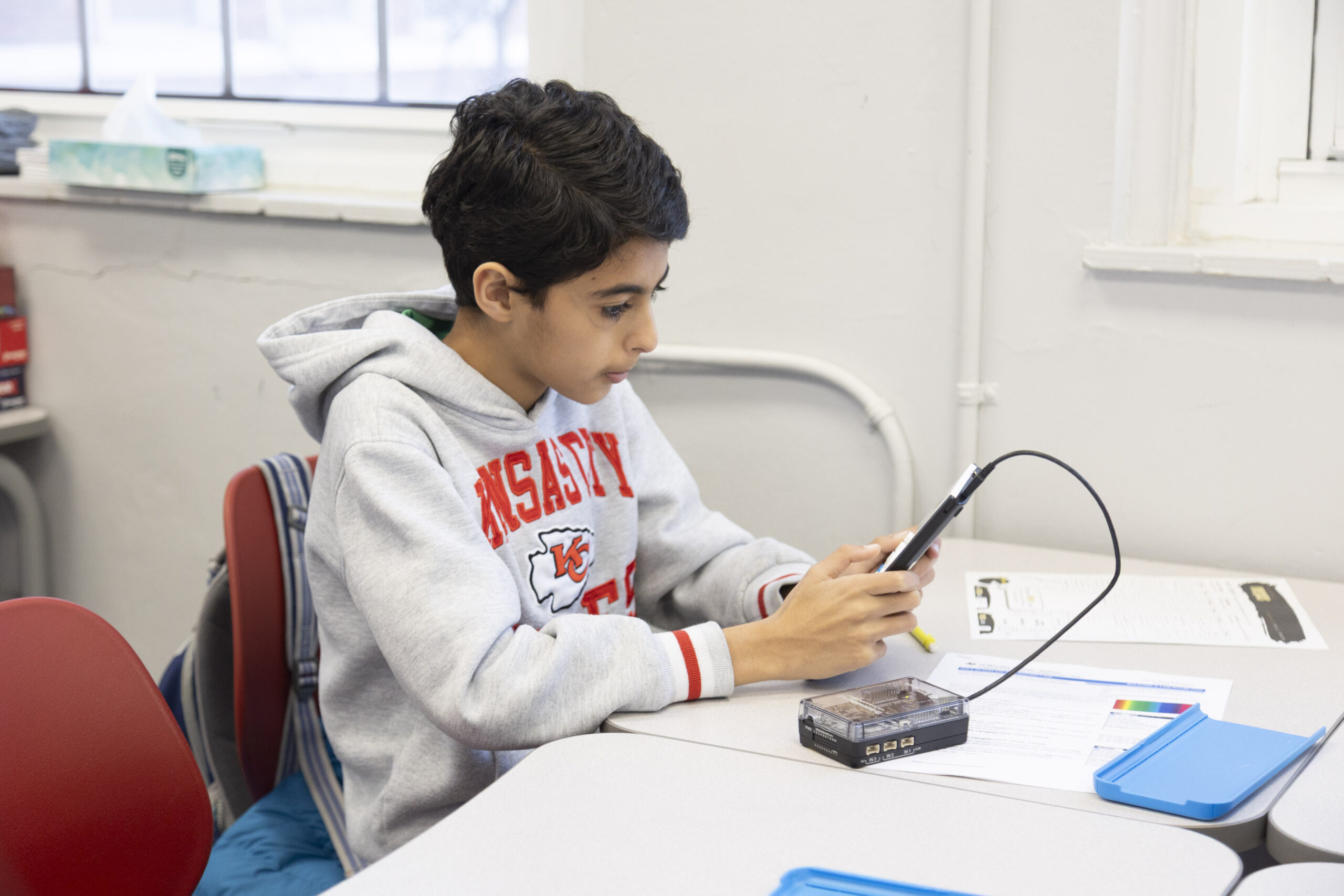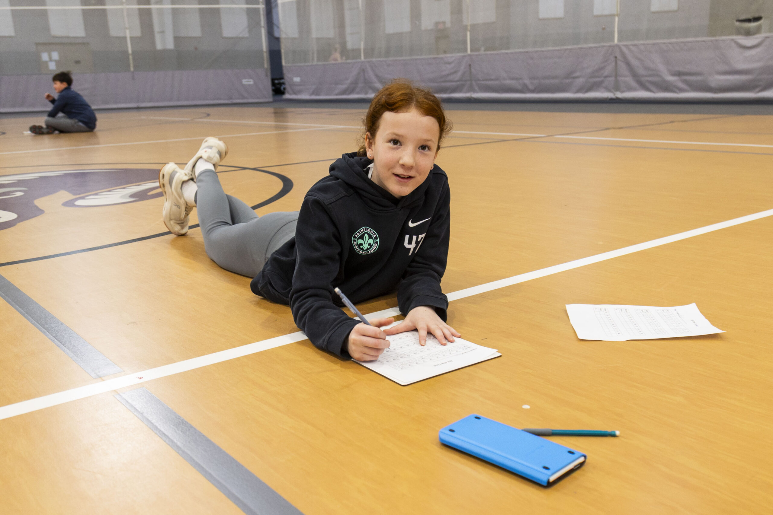 Our mathematicians focused on calculations for Day 3, and for the first time, they got to use the Ti-Nspires. TI-Nspires are advanced graphing calculators from Texas Instruments known for their color screens, interactive features, and the ability to handle math and science tasks at the middle school level all the way up through the college level. With their calculators in hand, they traded the classroom for the McDonnell Athletic Center where they set about determining who had the best free-throw percentage. Then, to wrap up the day, they played Skyjo, a card game where the goal is to have the lowest score by revealing and swapping cards to create rows with minimal point values.
