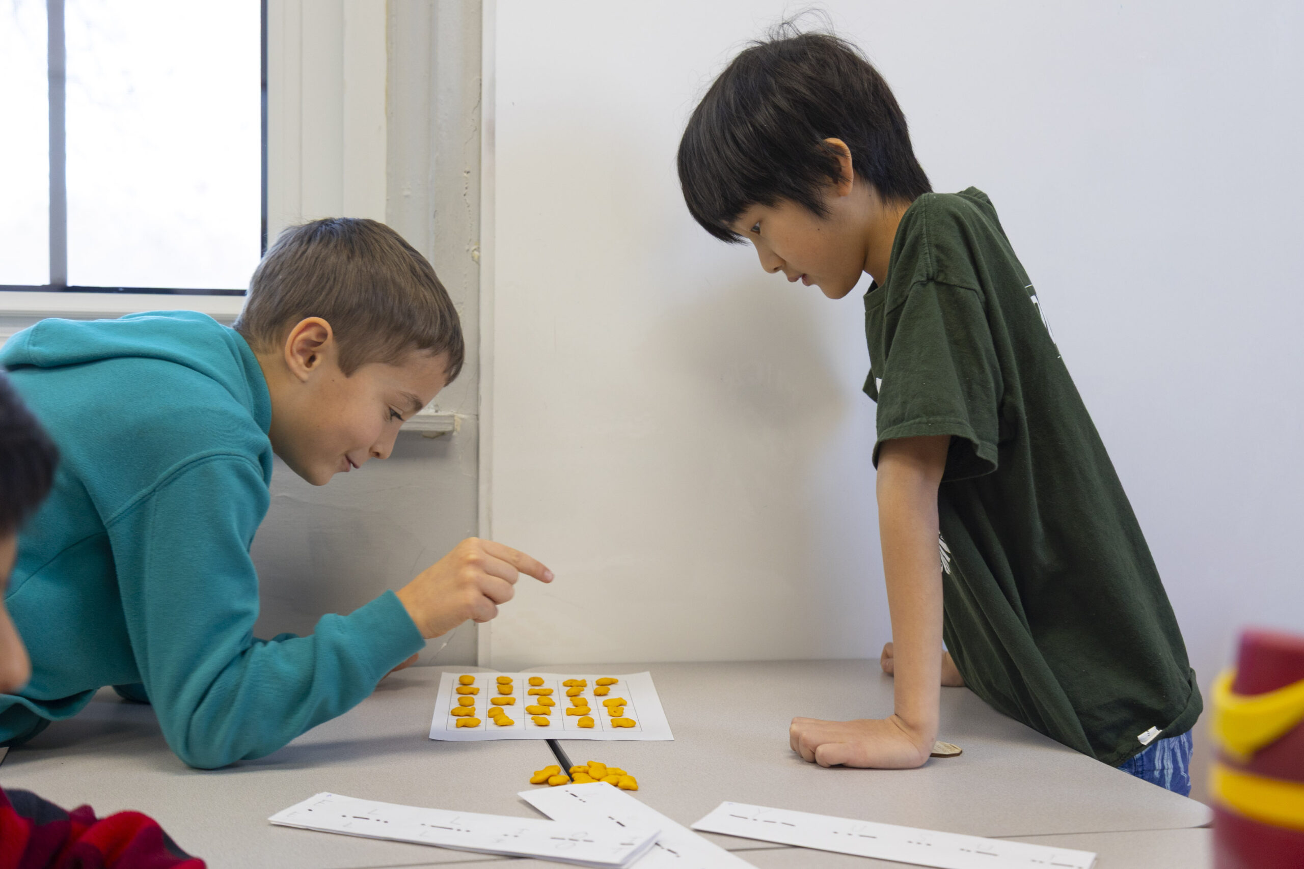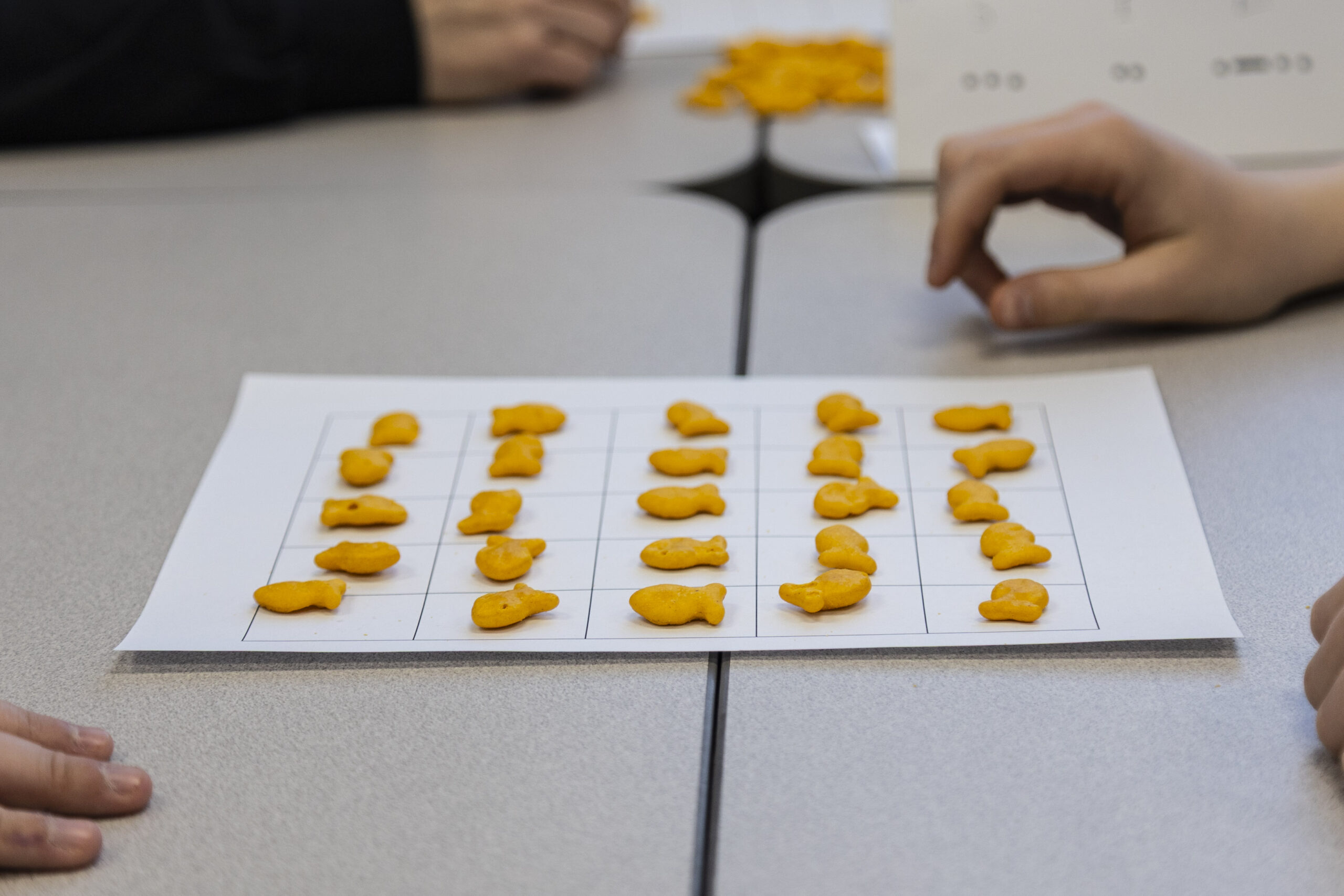 Day 2 was all about spatial reasoning, which incorporated the Gold Fish Game from the book Math Games with Bad Drawings by Ben Orlin. Students place goldfish on a 5×5 grid facing any of the four directions. When a goldfish faced an adjacent goldfish, that fish had to rotate 90 degrees clockwise, which sometimes causes a domino effect. In the end, the player with the most goldfish facing them wins. On Day 2, students also did the Skyscrapers Activity. With a 4×4 grid, each side of the grid had a number that corresponded to the quantity of skyscrapers one can see from that perspective.