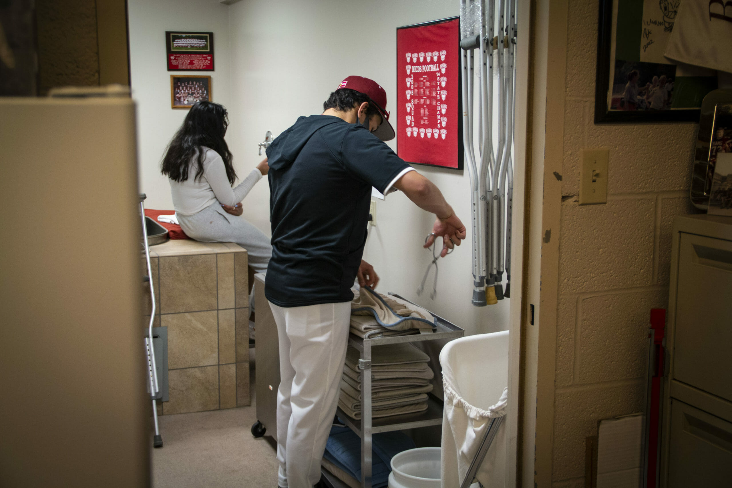 Typically, the Athletic Training Room at MICDS is packed after school with 25 to 40 kids. When social distancing guidelines went into effect, our athletic trainers transformed a second space into an additional room where they served athletes with proper distancing measures. Additionally, our athletic trainers also developed many sport-specific procedural plans for teams in order to ensure they complied with St. Louis County Department of Public Health guidelines.