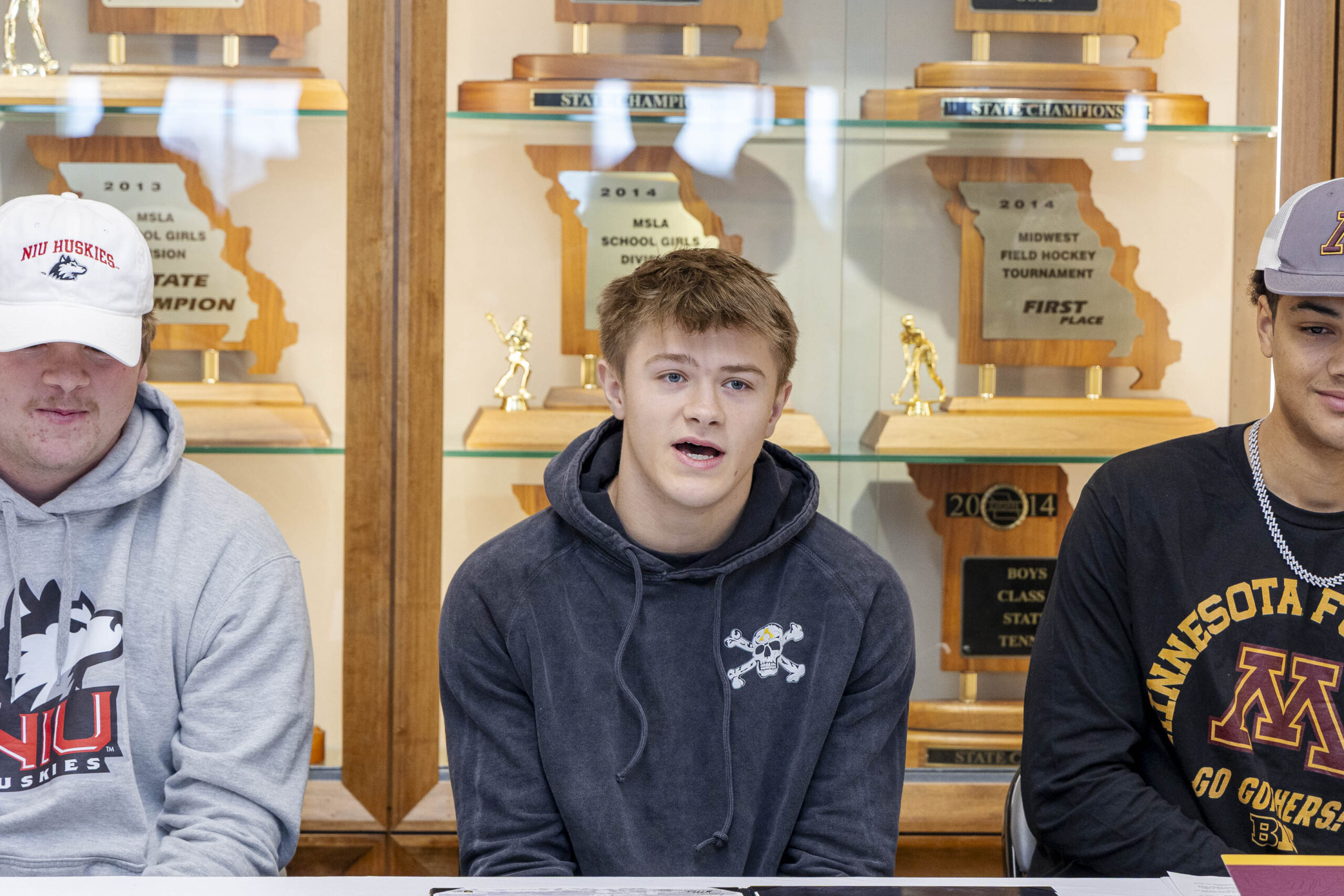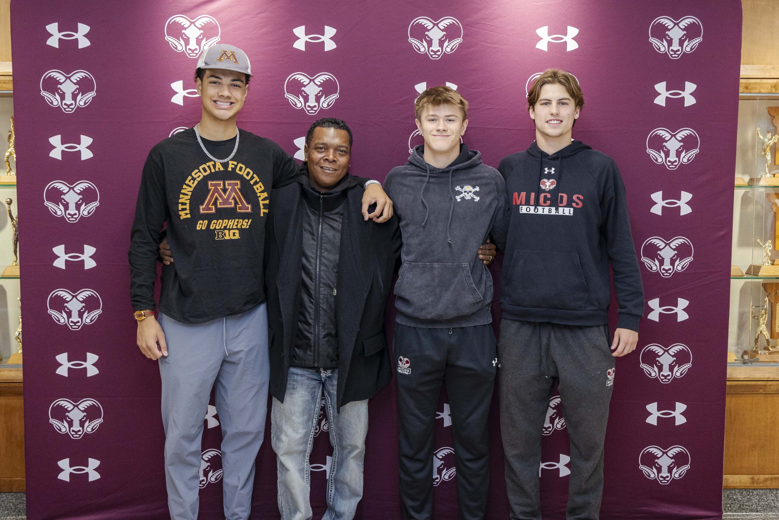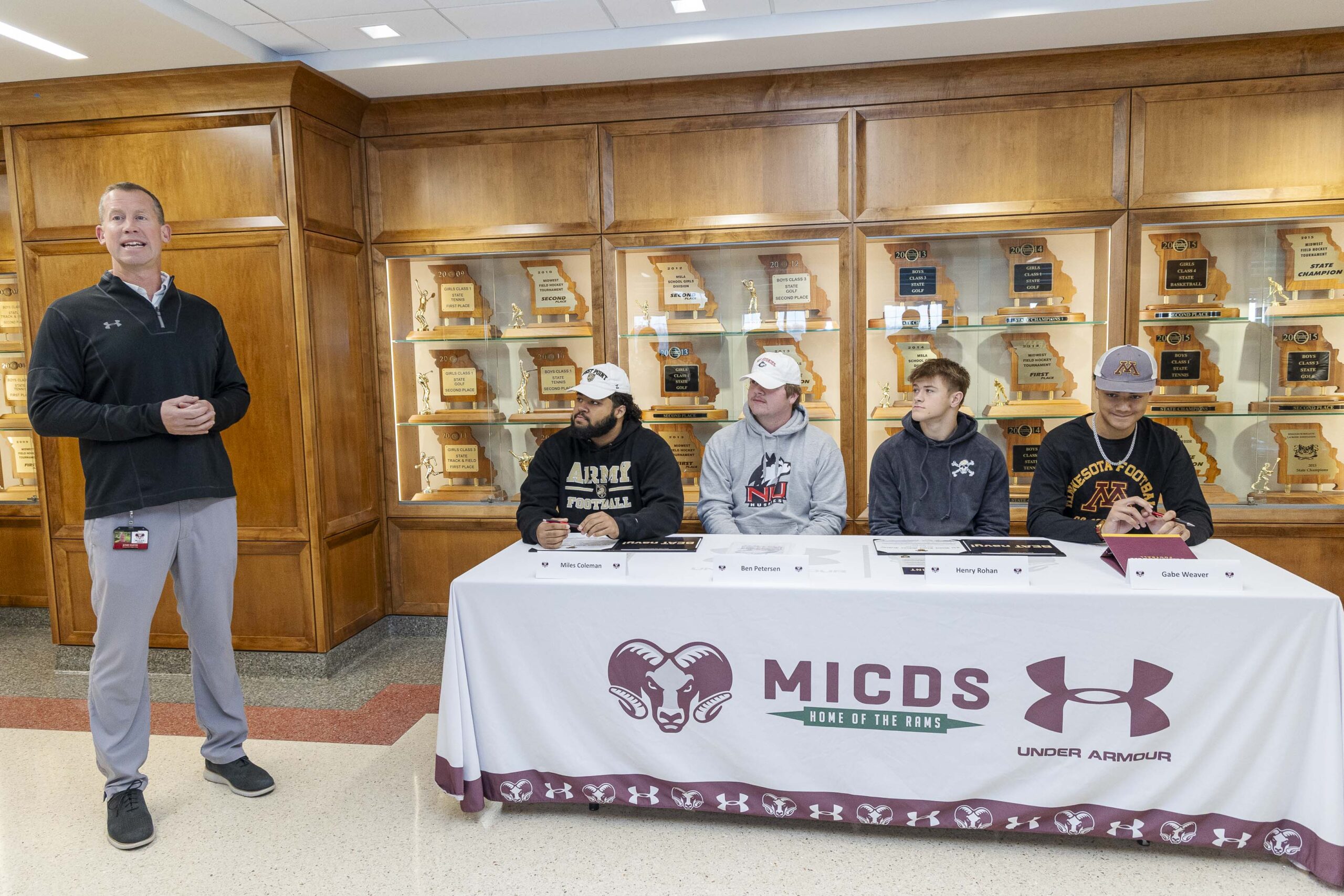 This week, four MICDS seniors signed early letters of intent to join collegiate-level football and track programs. The early signing ceremony follows one held on November 12 and precedes a larger event in February that will include additional student-athletes committing to college athletics.