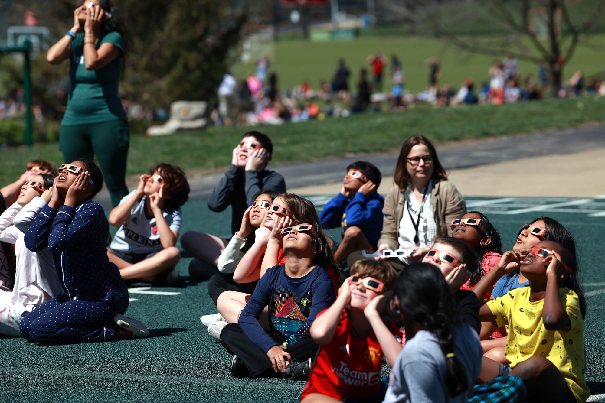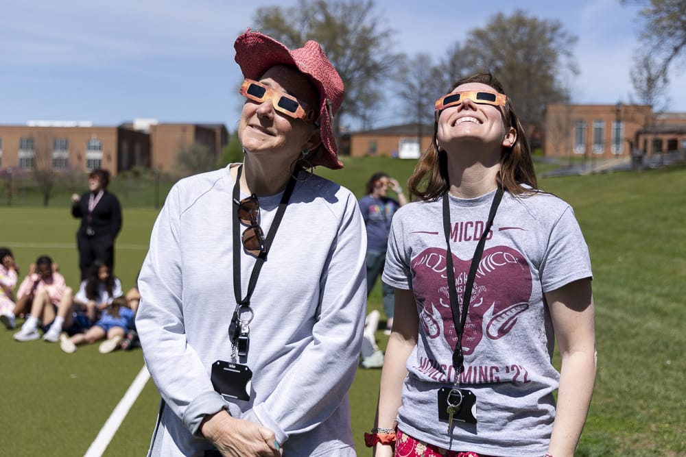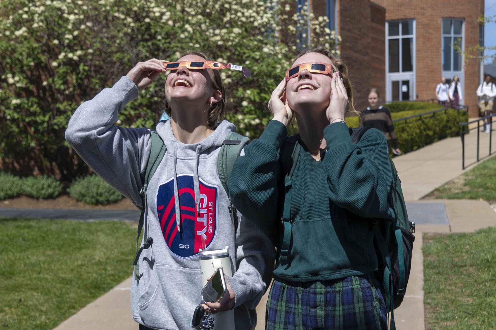 On Monday, April 8, 2024, MICDS students, faculty, and staff enjoyed one of nature’s grandest and rarest spectacles—a partial solar eclipse with 99% totality. Leading up to the main event, teachers in all divisions touched on various aspects of the celestial event, with Lower Schoolers going all in on “Moon Week.” It was a sight to behold, and our community seized the moon-ment as the light and shadows started to change, leading up to near darkness, with streetlights popping on, birds fluttering, and a chilly breeze in the air.