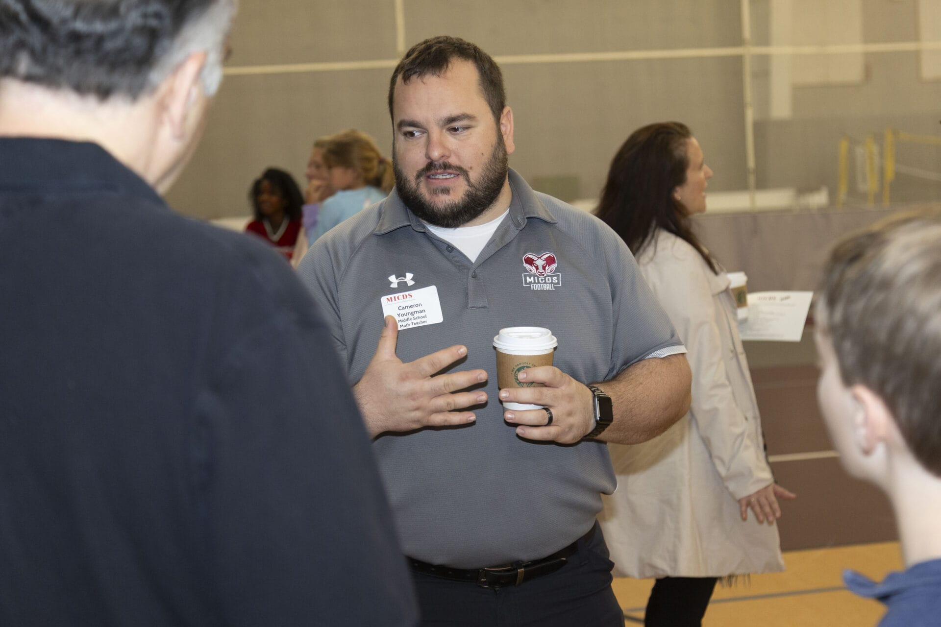 The McDonnell Athletic Center (the MAC) buzzed with anticipation as newly-accepted and enrolled Middle School families gathered for their celebratory event. The delightful sounds of the Middle School choir, band, and orchestra welcomed families as they arrived. Inside, a vibrant gathering included student speakers, a delicious breakfast, and opportunities to connect with current and future MICDS families and faculty and staff.