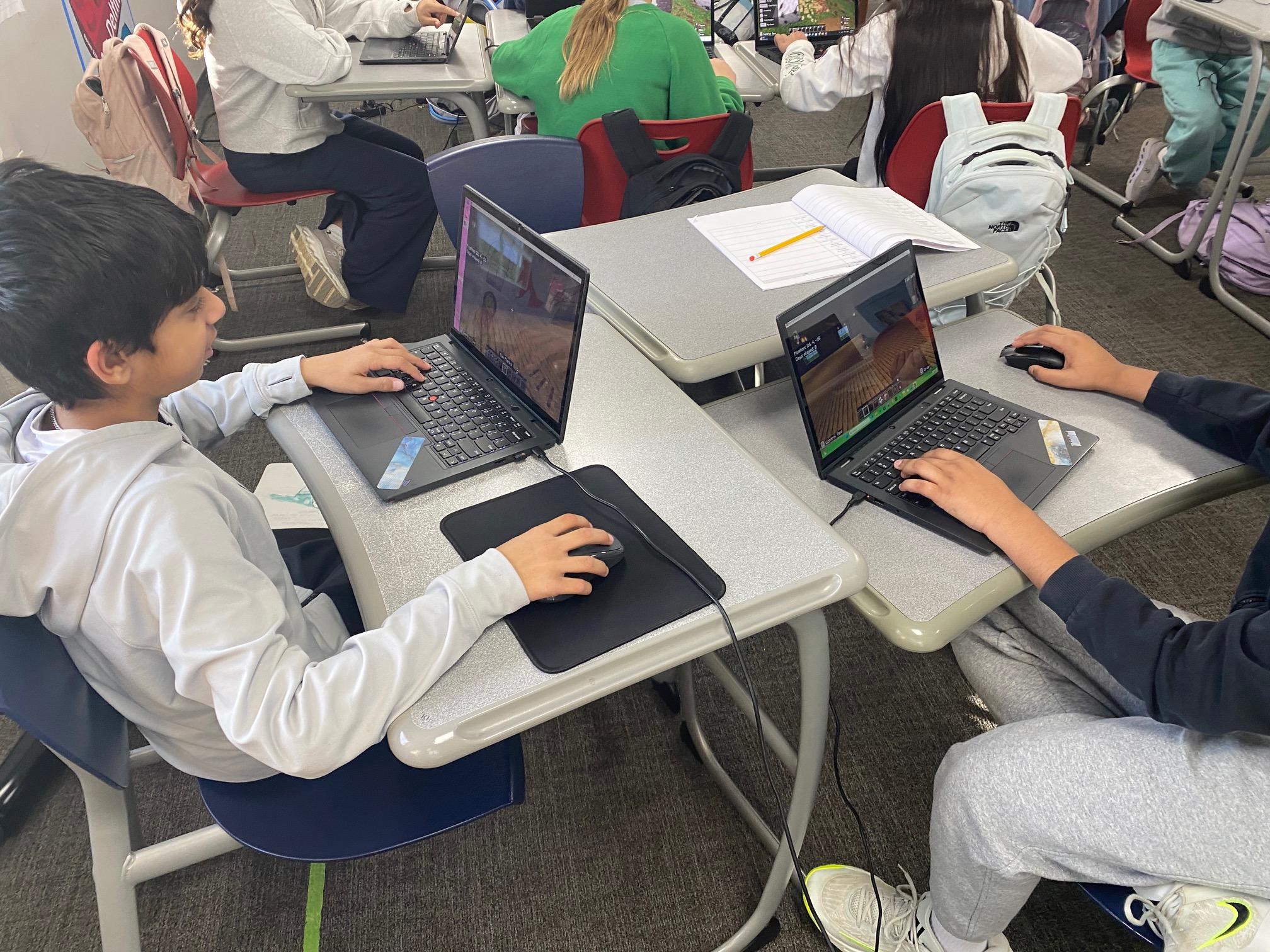 The final project for this course required students to document at least 12 sustainable features they had learned about and incorporate them into their own house design. Working in pairs, they crafted sustainable “dream homes” in Minecraft. “Listening to their conversations about which features to include, why they were important, and how they functioned provided an informal way to assess student understanding,” said Delfin. “Students engaged in meaningful discussions while problem-solving and using critical-thinking skills to successfully meet the project expectations.”