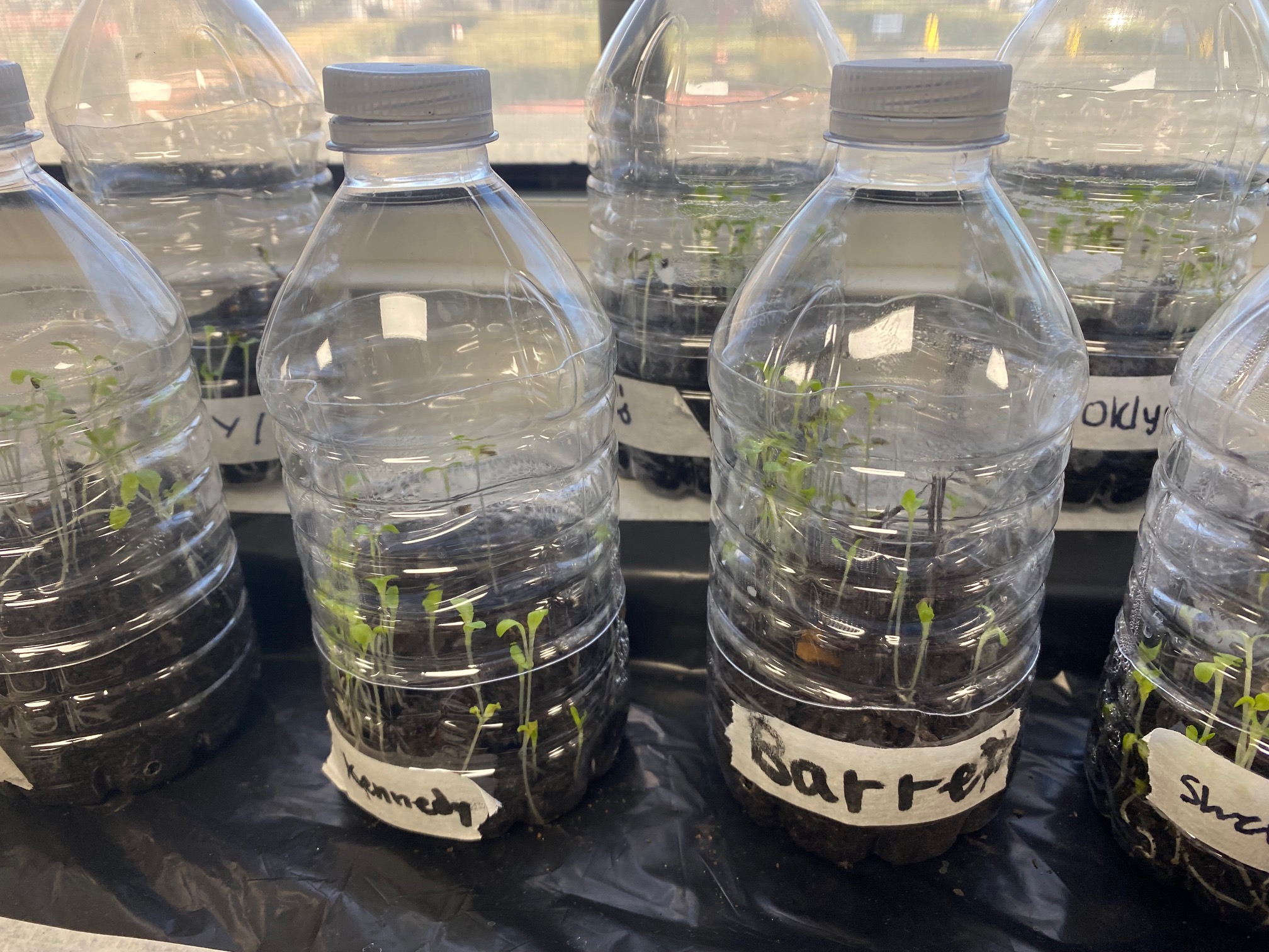 As part of the Food Production lesson, students set out to build their own greenhouses using recycled water bottles. Using water bottles cut in half, students placed potting soil, lettuce seeds, and water in the lower half, then slipped the upper portion back on to create a closed, controlled environment. Each day, students checked on their plants to observe growth. “Growing their own food, along with replanting resources, helped students make connections to replenishing renewable resources,” said Delfin.