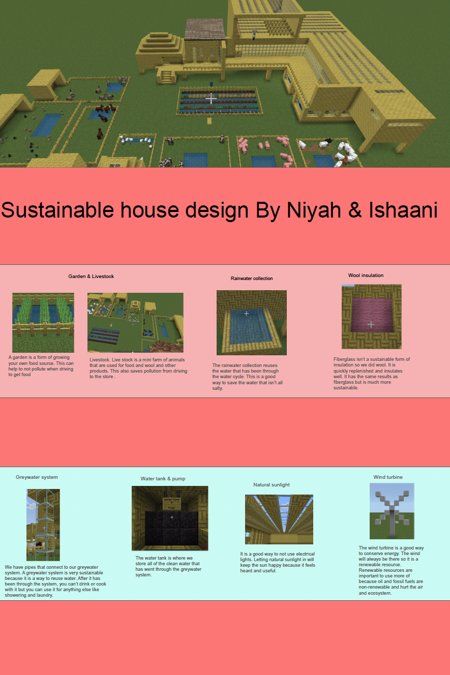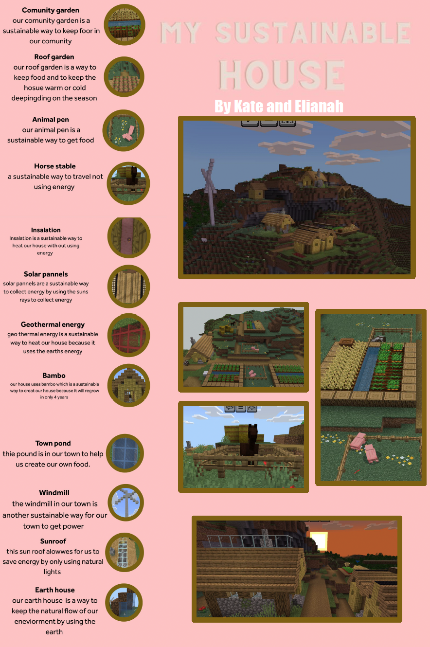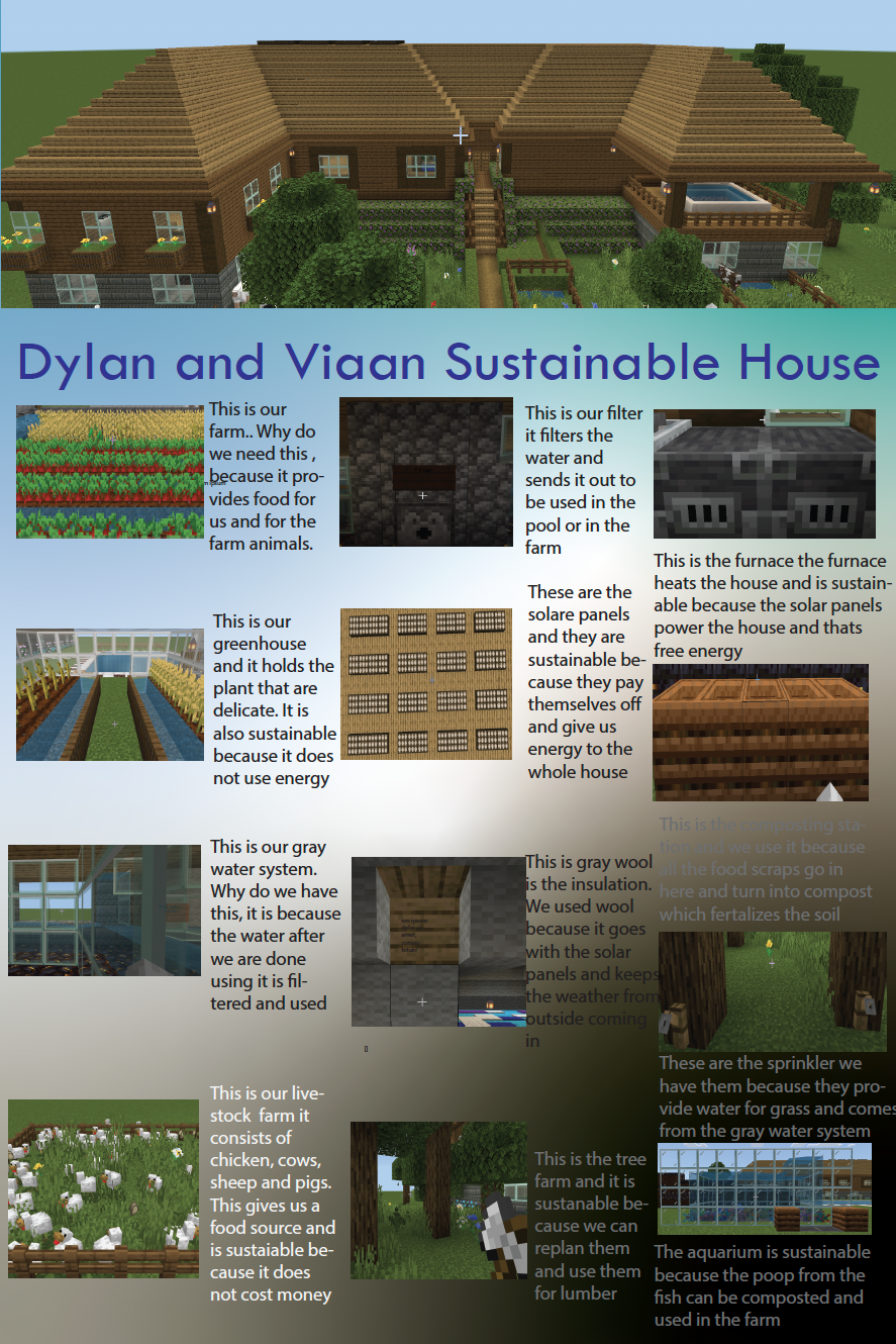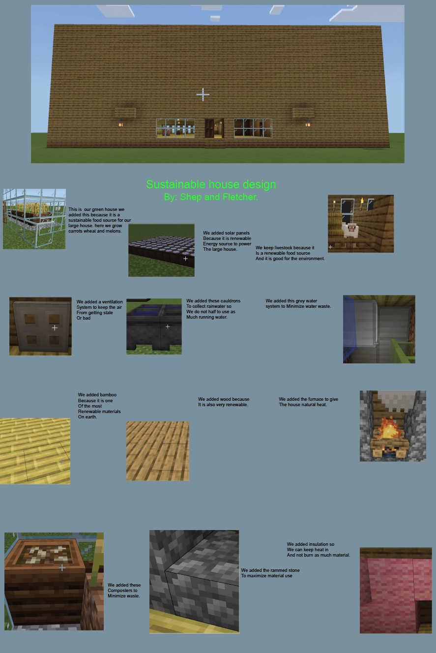 Students were asked to explore the Minecraft worlds and document their research for each lesson, which helped them learn about sustainable strategies that are friendly to our Earth. They learned about using renewable resources such as wind, solar, and geothermal energy, and about using renewable building materials such as bamboo and recycled materials like glass and wool.