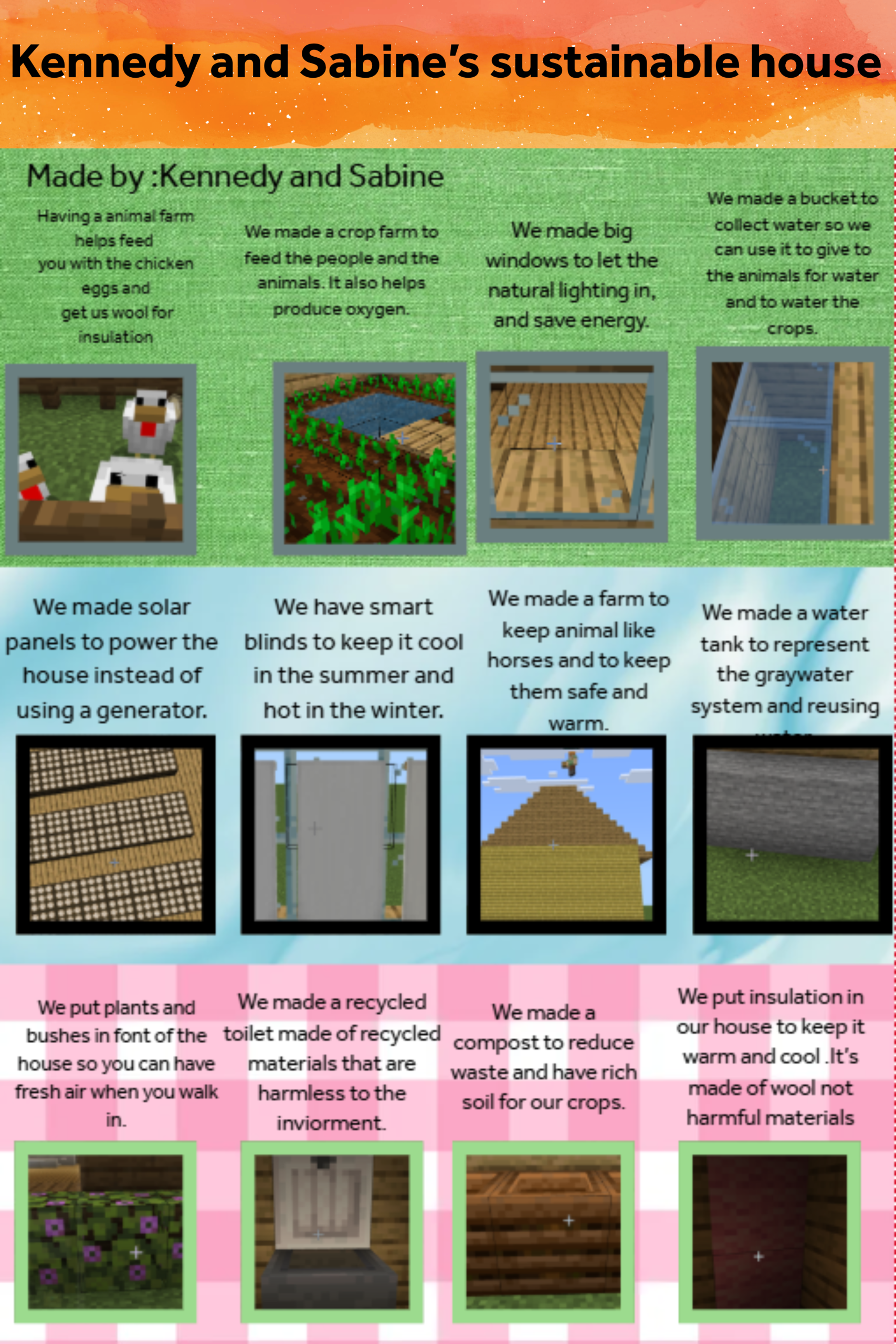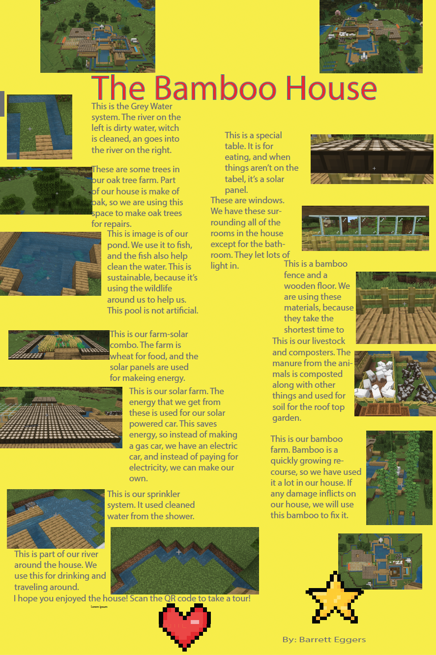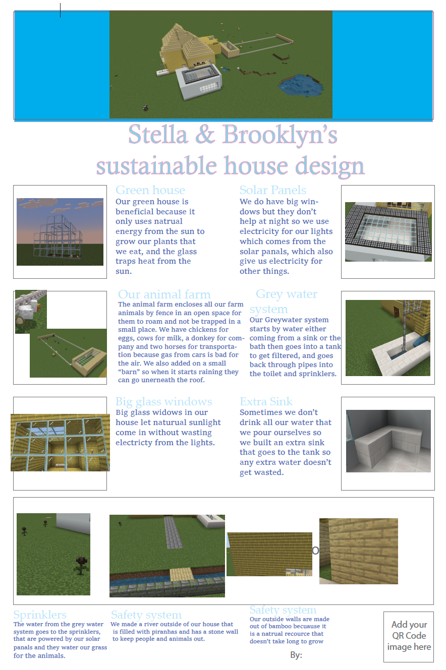 Students were asked to explore the Minecraft worlds and document their research for each lesson, which helped them learn about sustainable strategies that are friendly to our Earth. They learned about using renewable resources such as wind, solar, and geothermal energy, and about using renewable building materials such as bamboo and recycled materials like glass and wool.