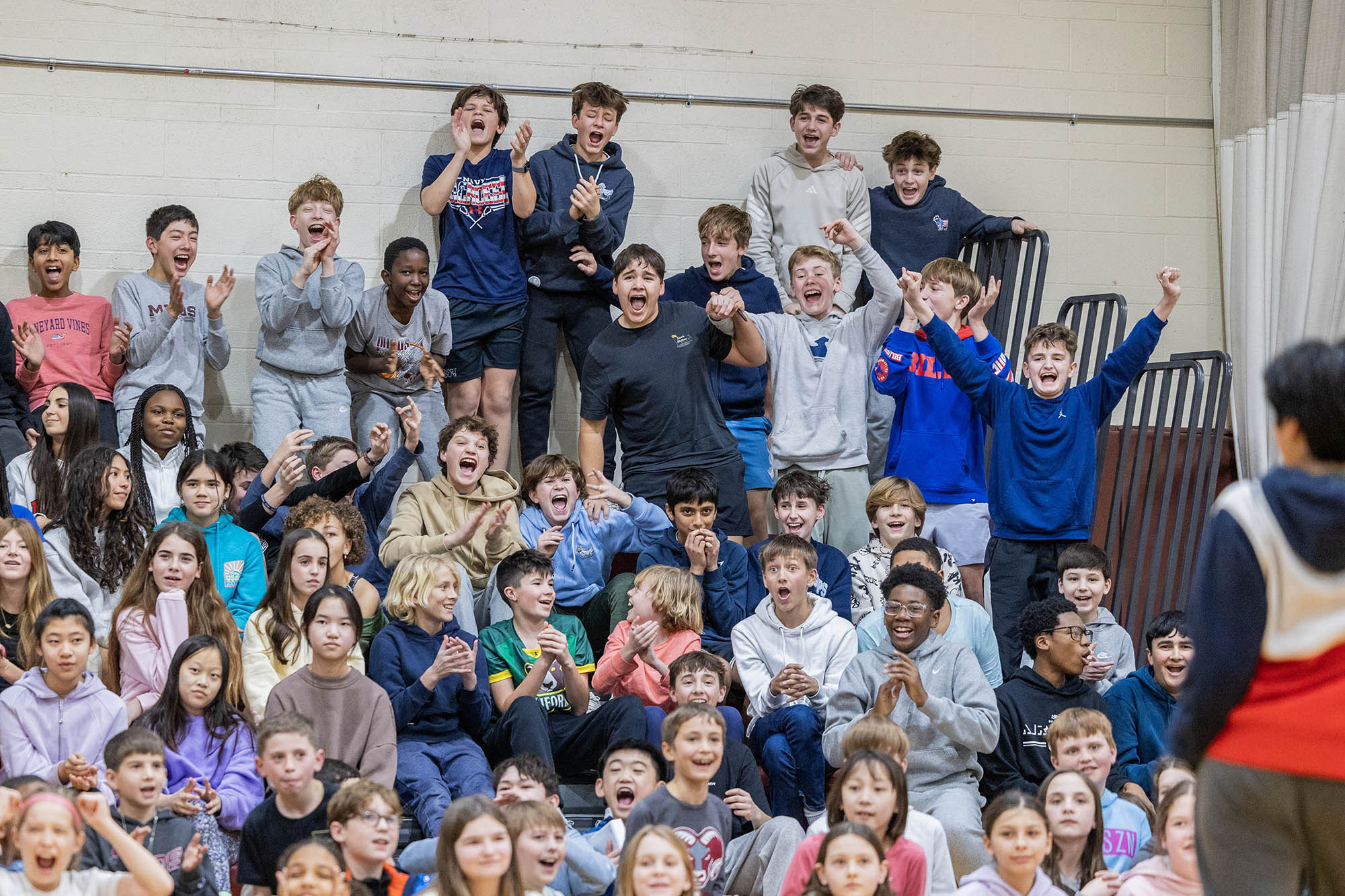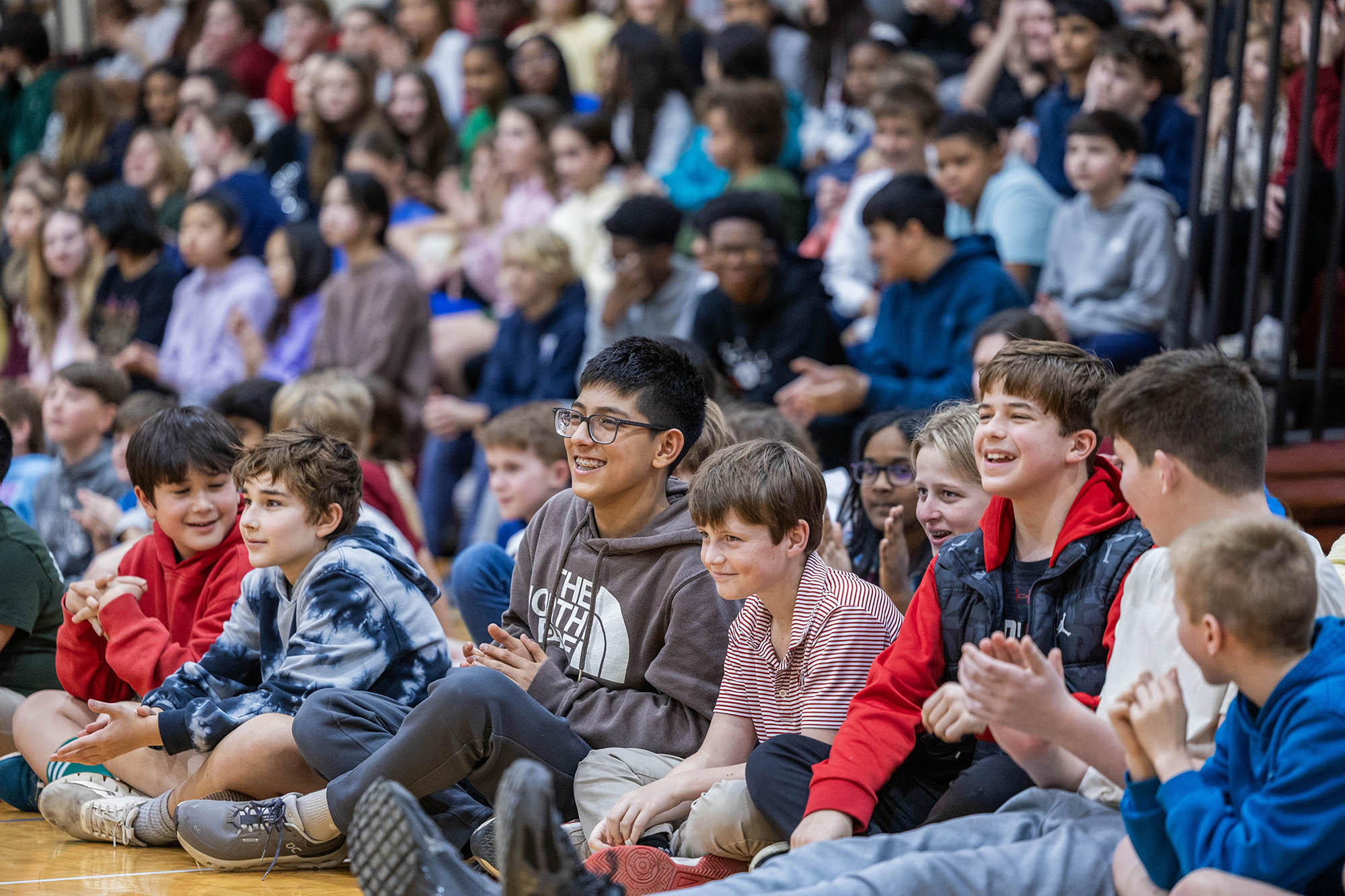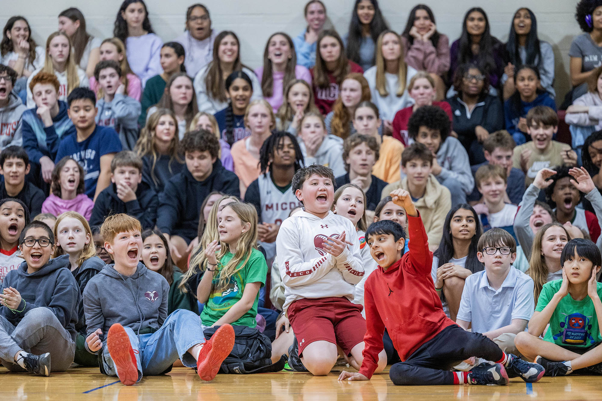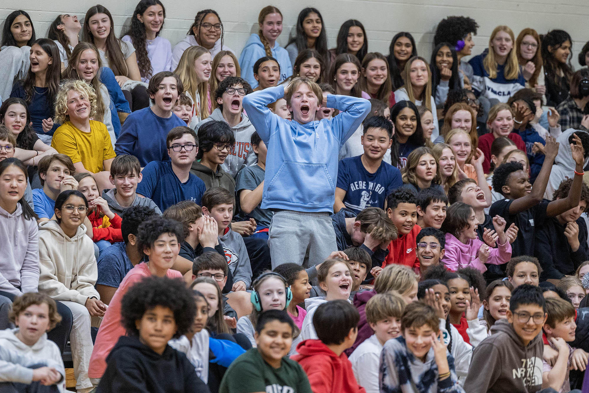 Middle School students got their spirit on this week with the annual Winter Classic pep rally, a fun-filled afternoon that unites the student body, generates a ton of laughter, and supports our winter season athletes. “It’s a way to kick off Semester 2 with a gathering of our community to celebrate with games, music, and sports,” explains Callie Bambenek, Middle School Science Teacher. The day started with students, faculty, and staff decked out in their red and green, and athletes and musicians were encouraged to wear their uniforms. Anticipation built every hour of the school day.