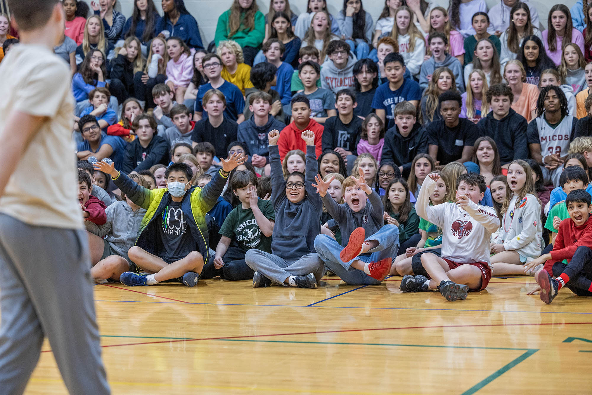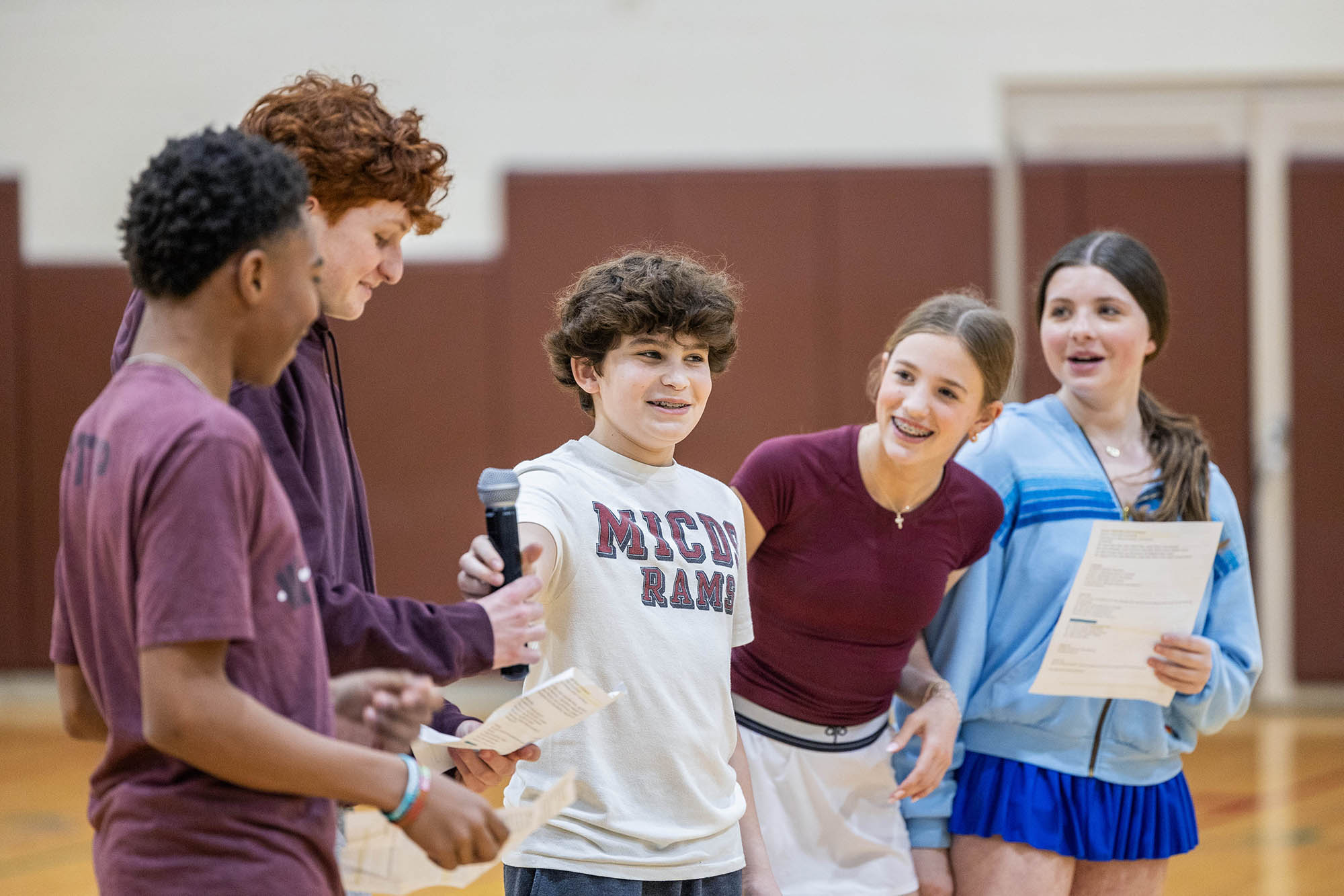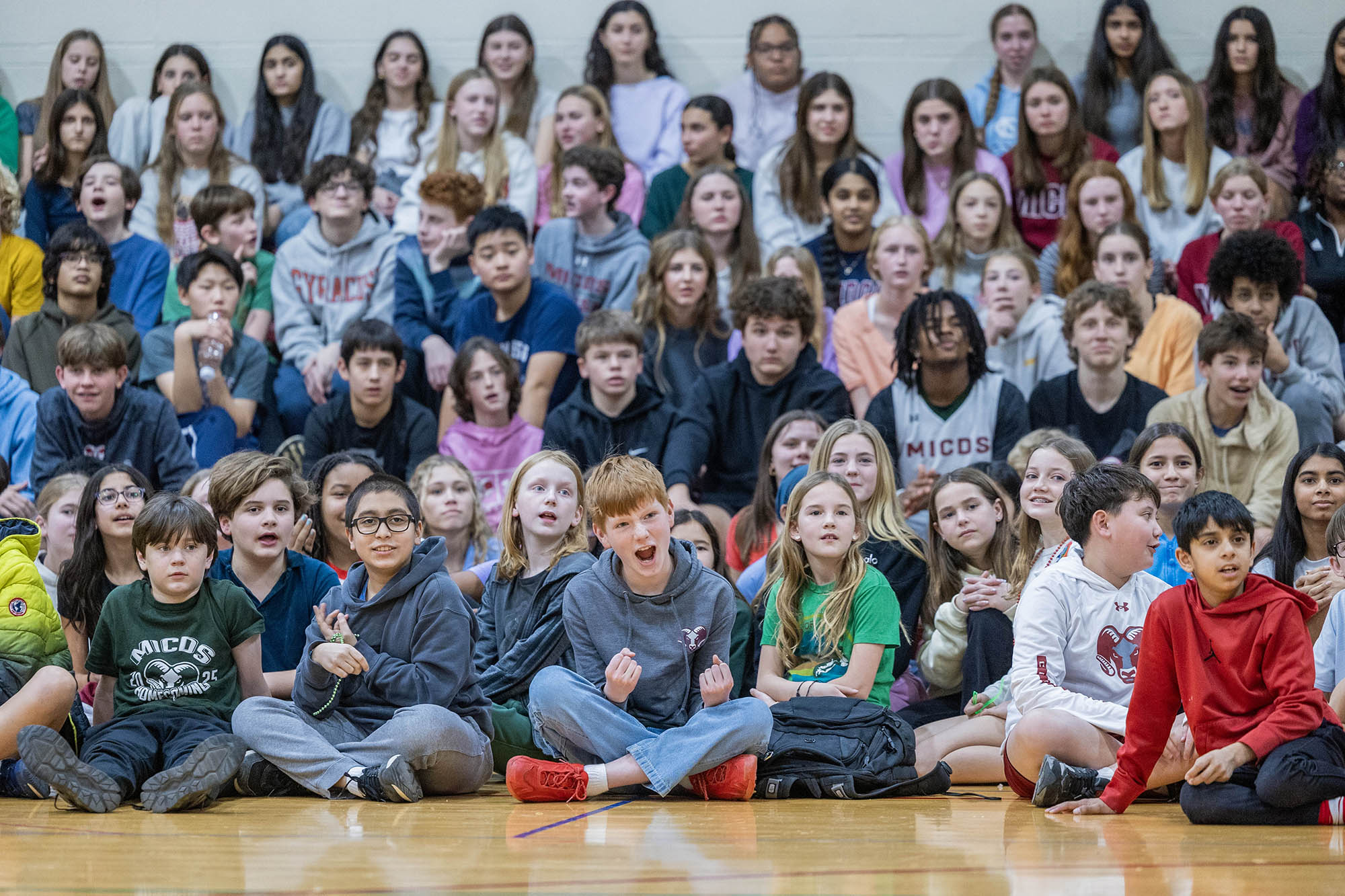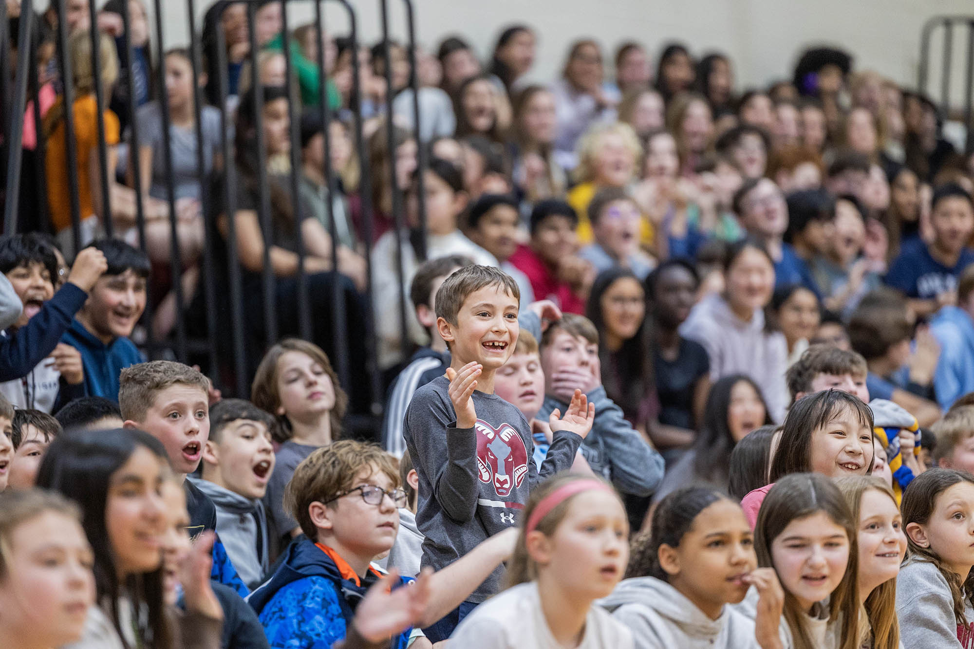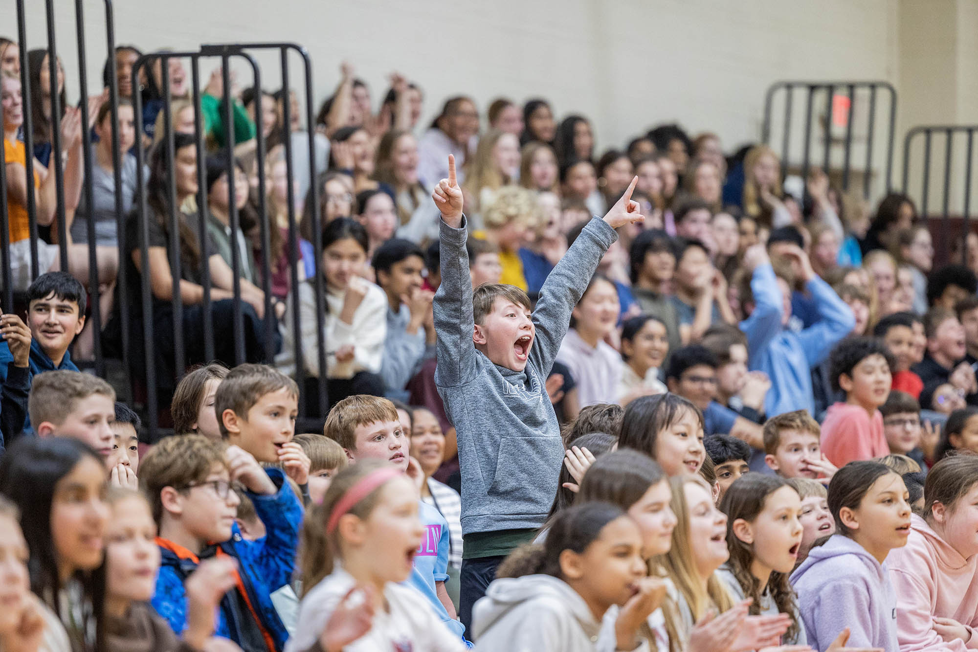 Middle School students got their spirit on this week with the annual Winter Classic pep rally, a fun-filled afternoon that unites the student body, generates a ton of laughter, and supports our winter season athletes. “It’s a way to kick off Semester 2 with a gathering of our community to celebrate with games, music, and sports,” explains Callie Bambenek, Middle School Science Teacher. The day started with students, faculty, and staff decked out in their red and green, and athletes and musicians were encouraged to wear their uniforms. Anticipation built every hour of the school day.