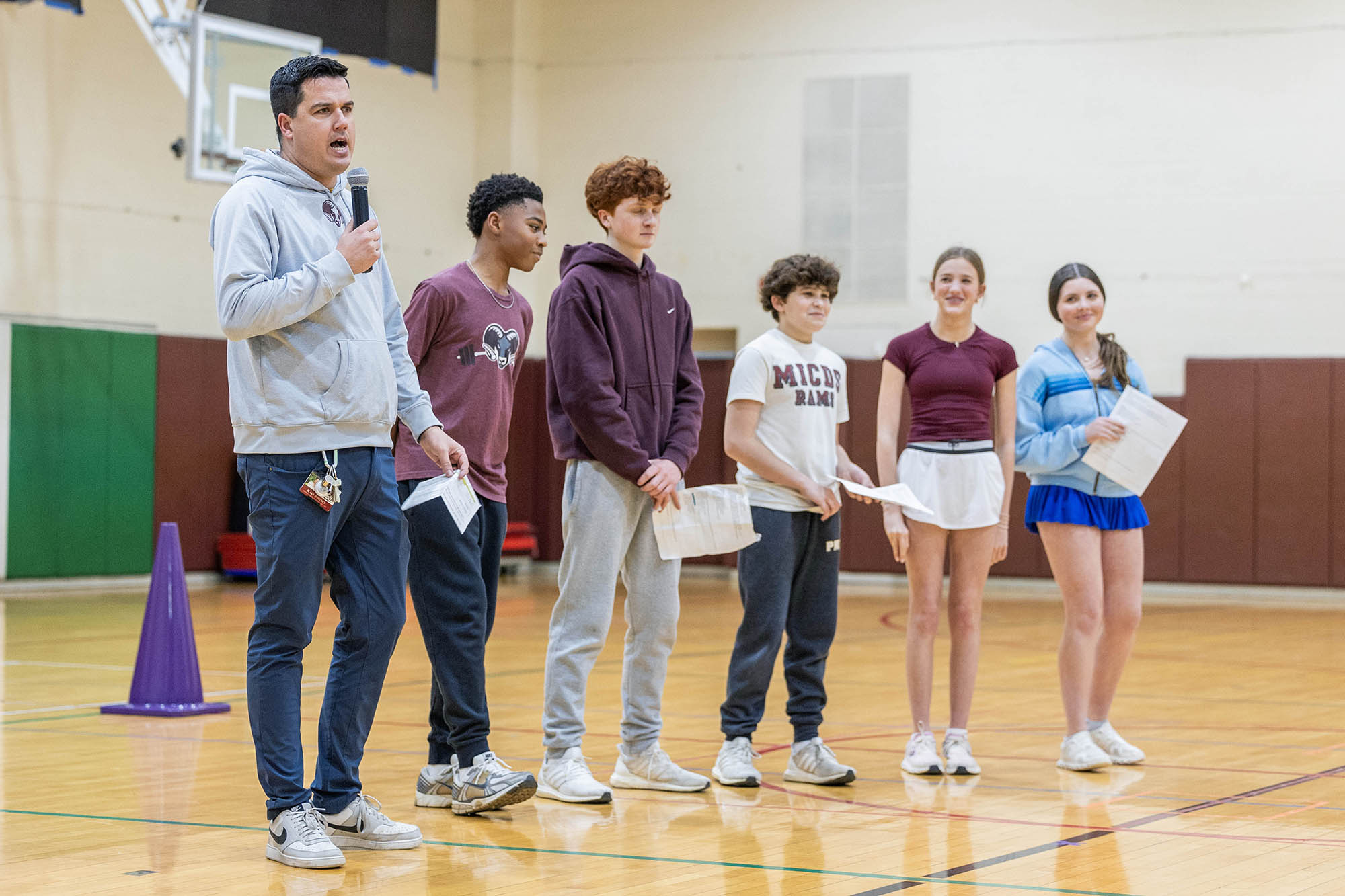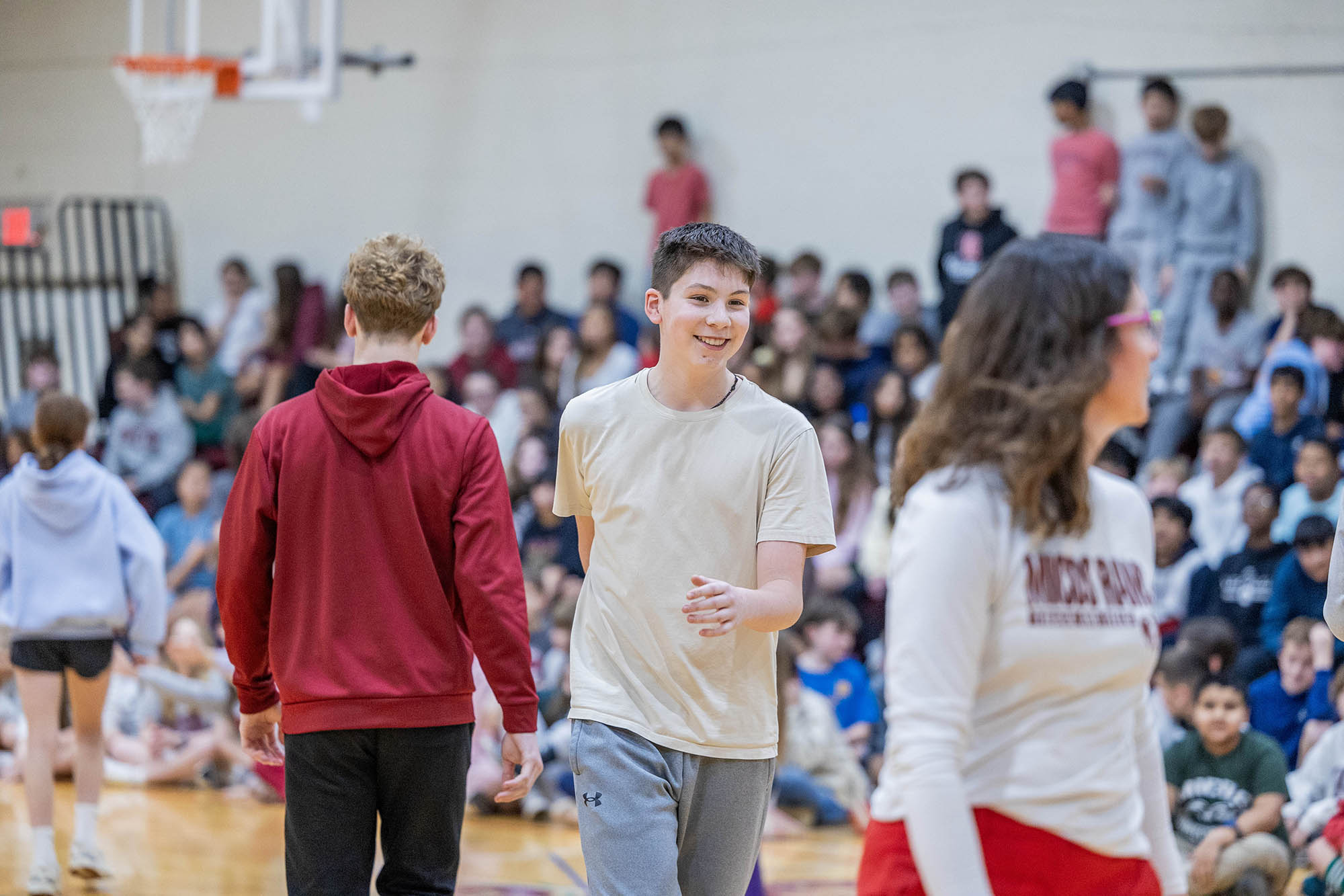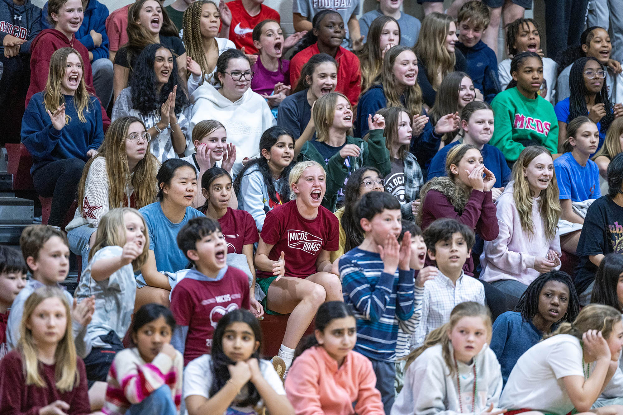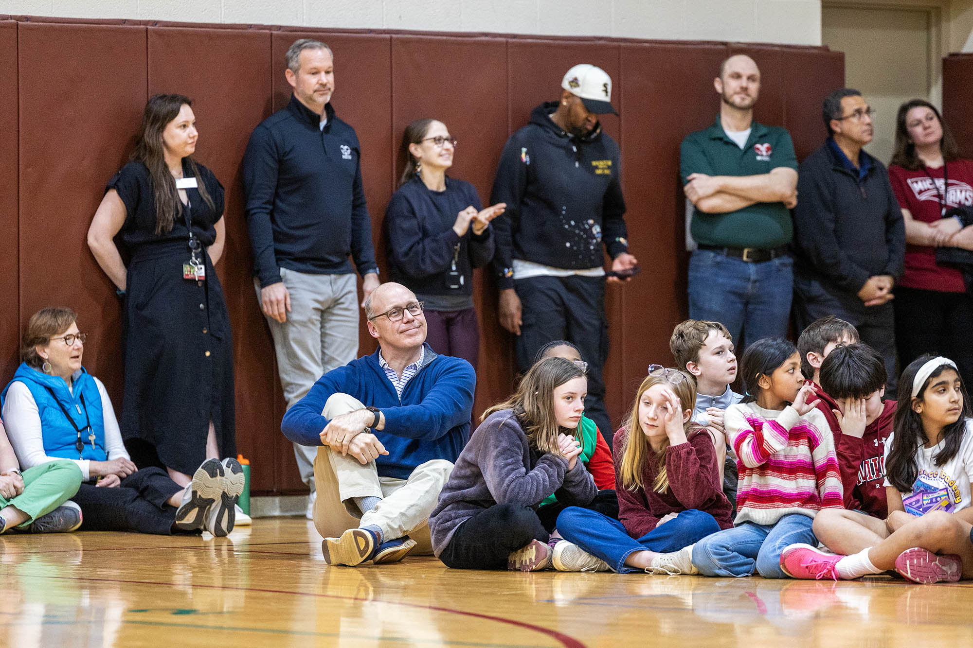 After gathering in the South Gym in the afternoon, festivities began with members of the Maroon Boom, the Middle School pep club, introducing the event’s emcee, Middle School History Teacher Blake Whitney. He and the Maroon Boom co-heads welcomed everyone to the third annual Winter Classic. Then, Middle School Arts Teachers Jason Roberts and Eric Taylor and the MS Band, Orchestra, and Choir (sixth, seventh, and eighth grades) performed the Fight Song