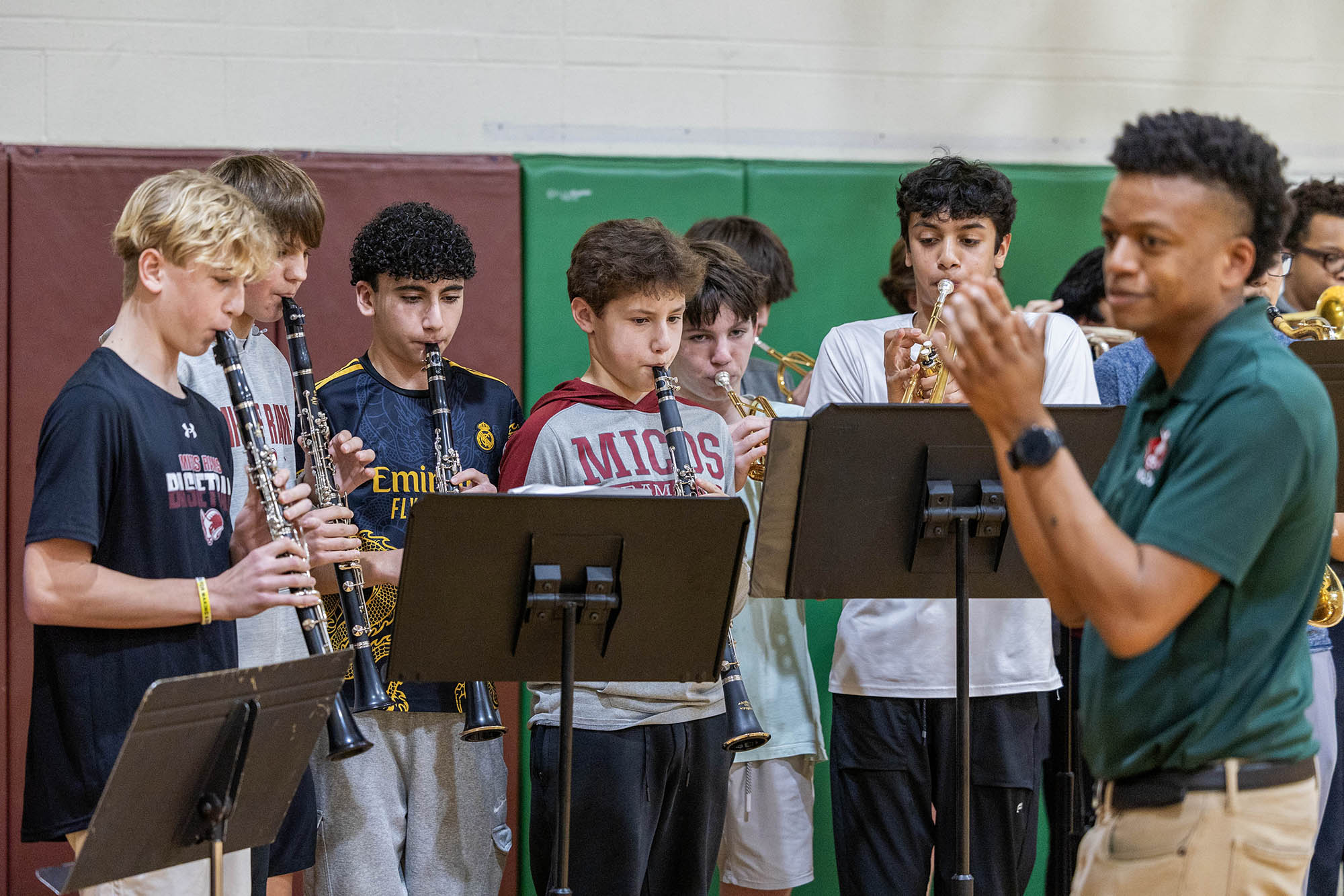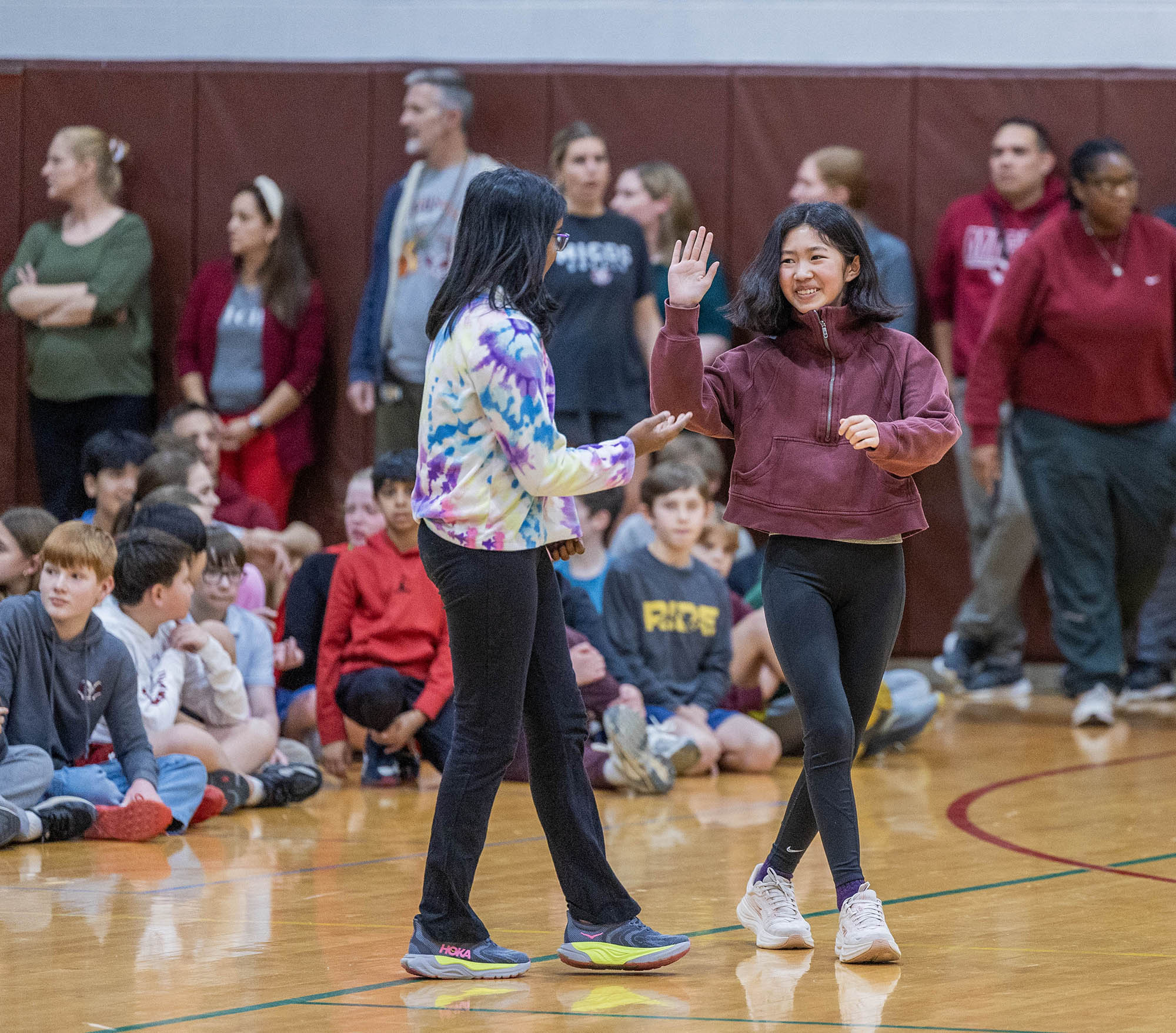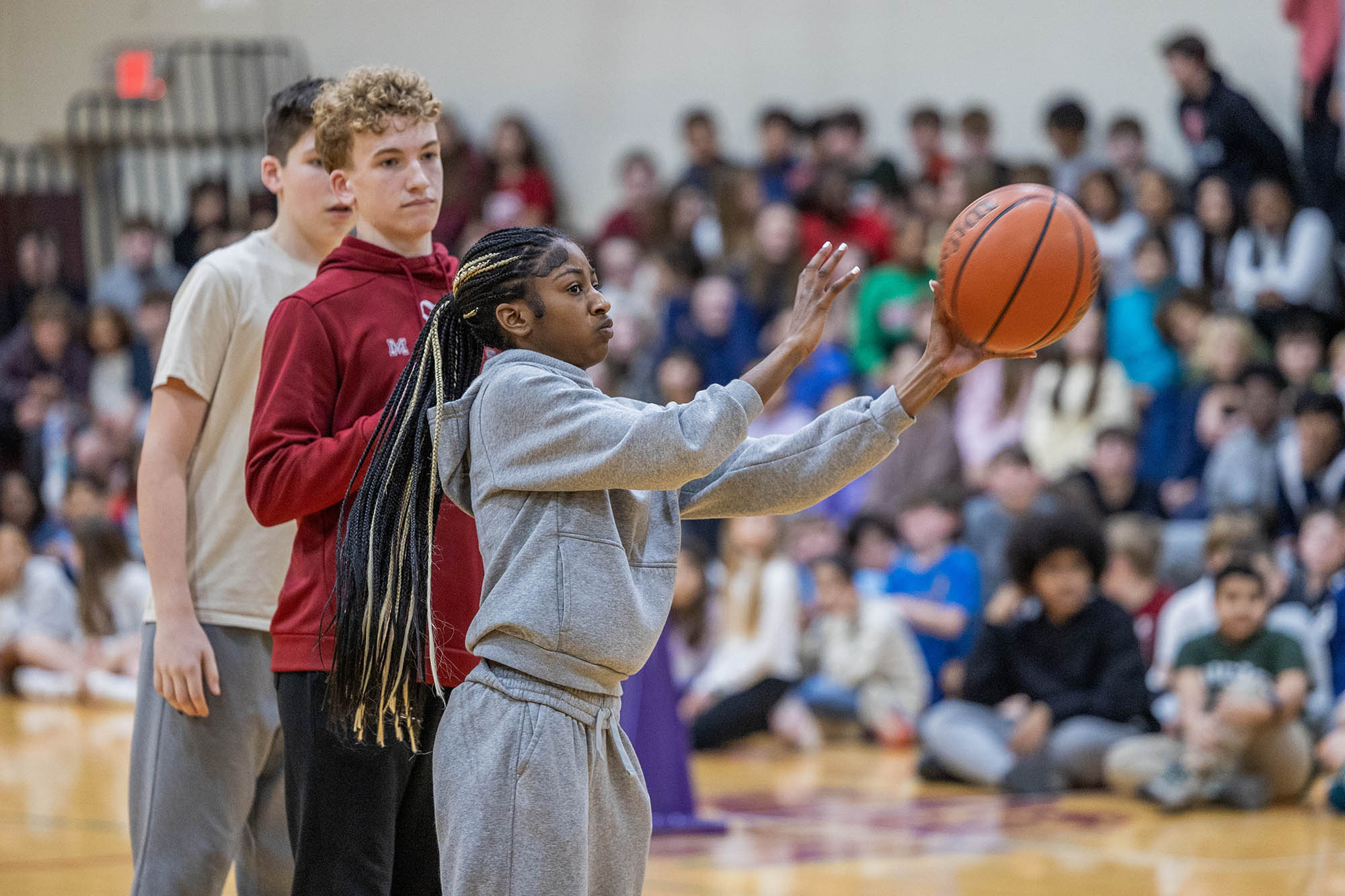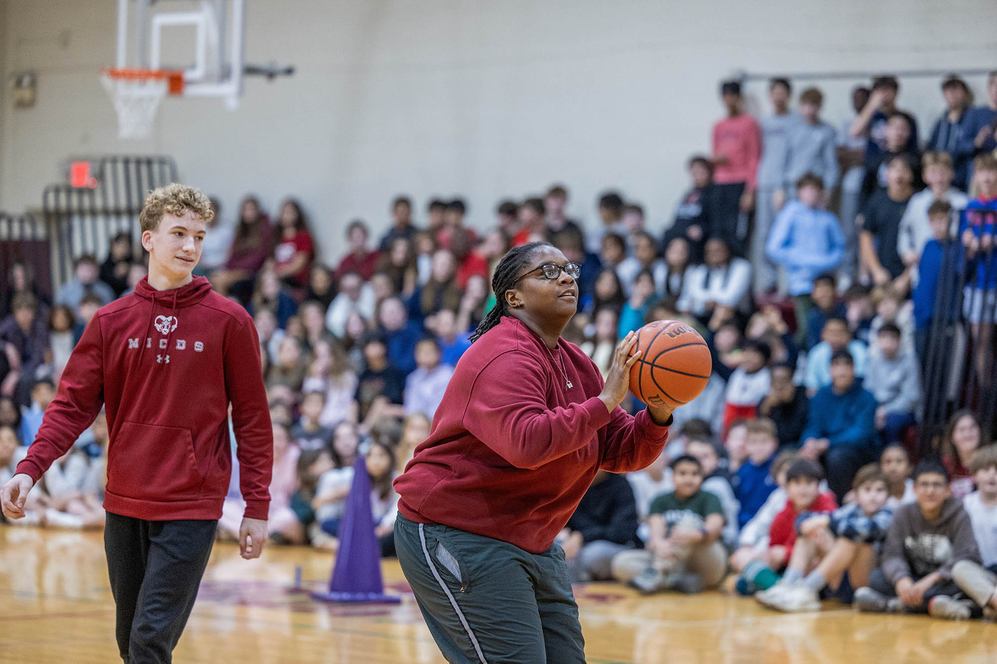 After gathering in the South Gym in the afternoon, festivities began with members of the Maroon Boom, the Middle School pep club, introducing the event’s emcee, Middle School History Teacher Blake Whitney. He and the Maroon Boom co-heads welcomed everyone to the third annual Winter Classic. Then, Middle School Arts Teachers Jason Roberts and Eric Taylor and the MS Band, Orchestra, and Choir (sixth, seventh, and eighth grades) performed the Fight Song