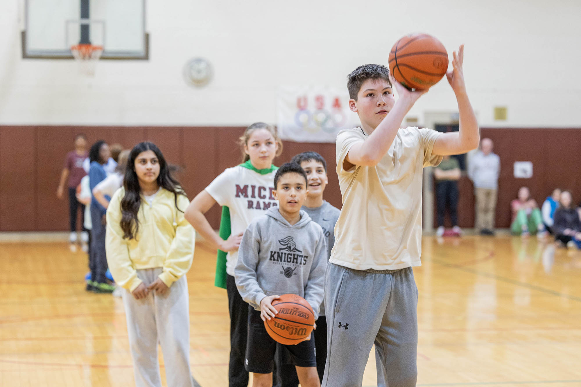 Basketballs then came out for several rounds of Knock-Out. Intense concentration by our competitors was matched by enthusiastic cheering from the students in the stands.