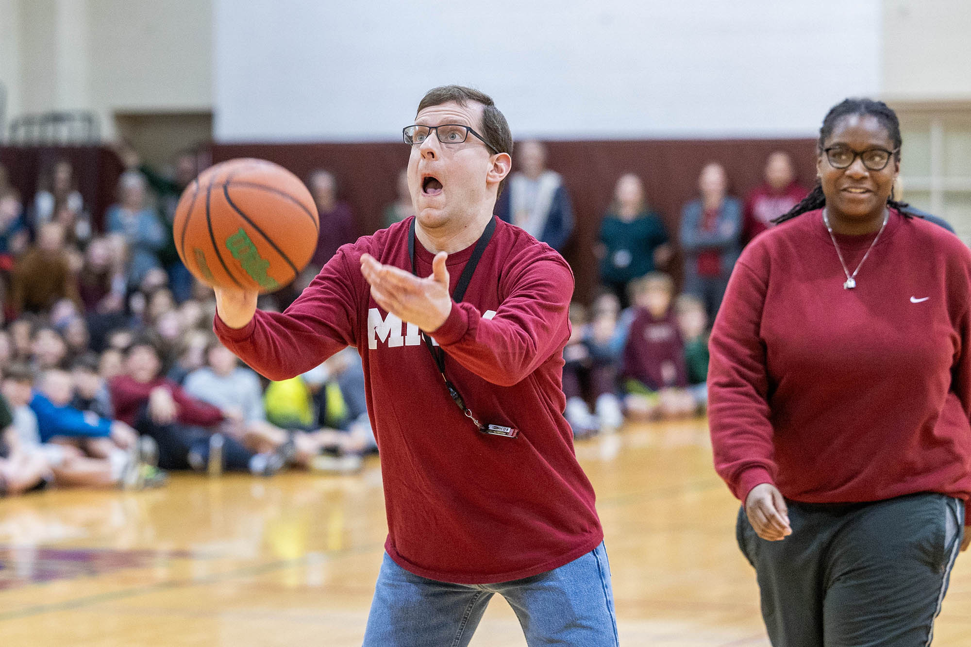 It’s hard to tell who had more fun at the Winter Classic: students or teachers! Thanks to the many people who worked hard to make this event a success, including the Maroon Boom Pep Club (who, in addition to helping plan and run the event, also used posters to help grade levels get seated for the rally), our emcee Mr. Whitney, the Middle School Concert Band, Orchestra, and Concert Choir, all the students and teachers who gamely competed, and Callie Bambenek and Middle School English Teacher Dr. Nick Miller, who are the driving forces behind the Winter Classic.
