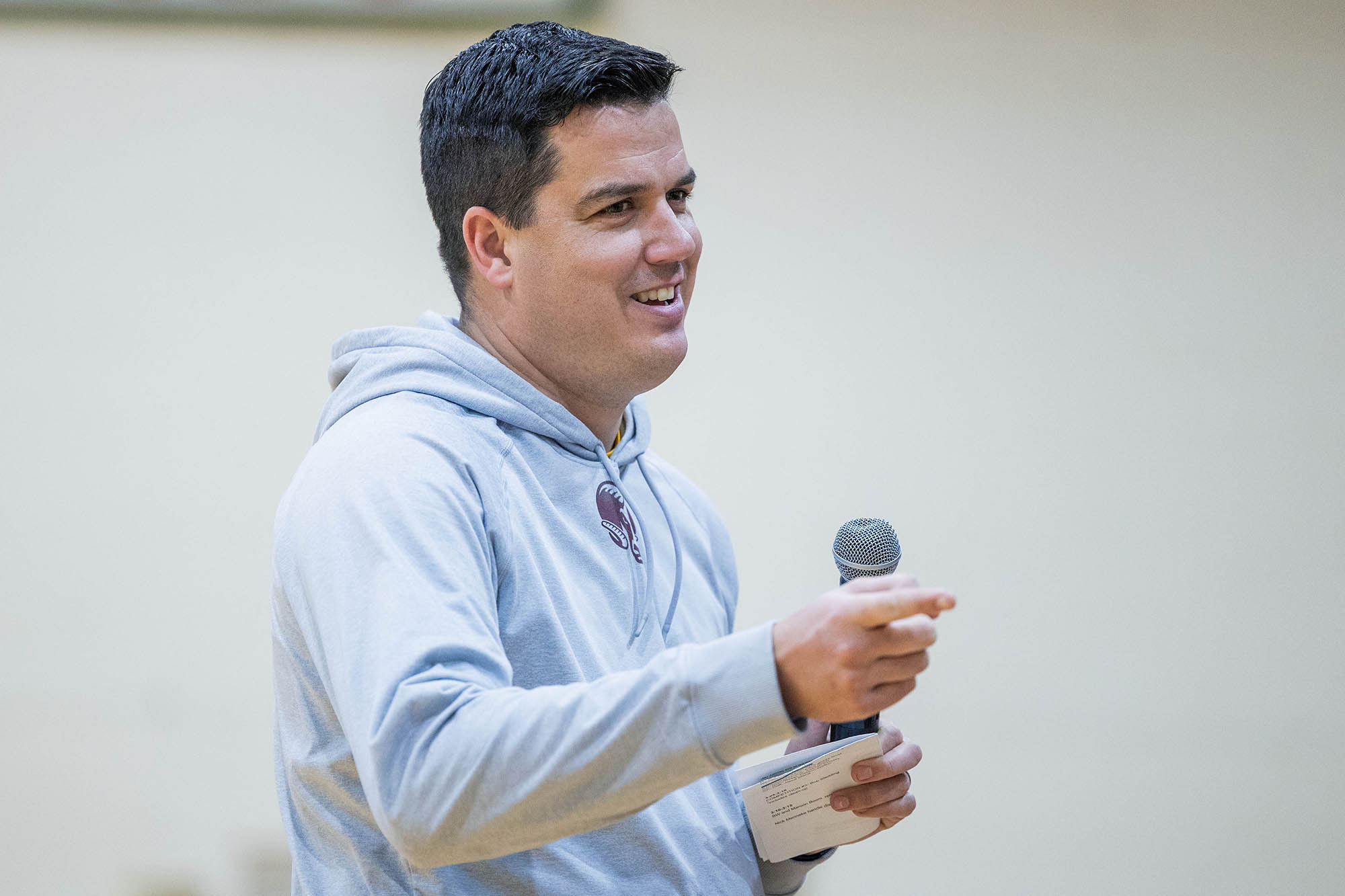 Whitney and Middle School Physical Education Teacher Nick Menneke introduced all of our talented winter sports teams, including our cheerleaders, of course. The audience showed a ton of support for these dedicated athletes, getting them fired up for their various competitions that evening.