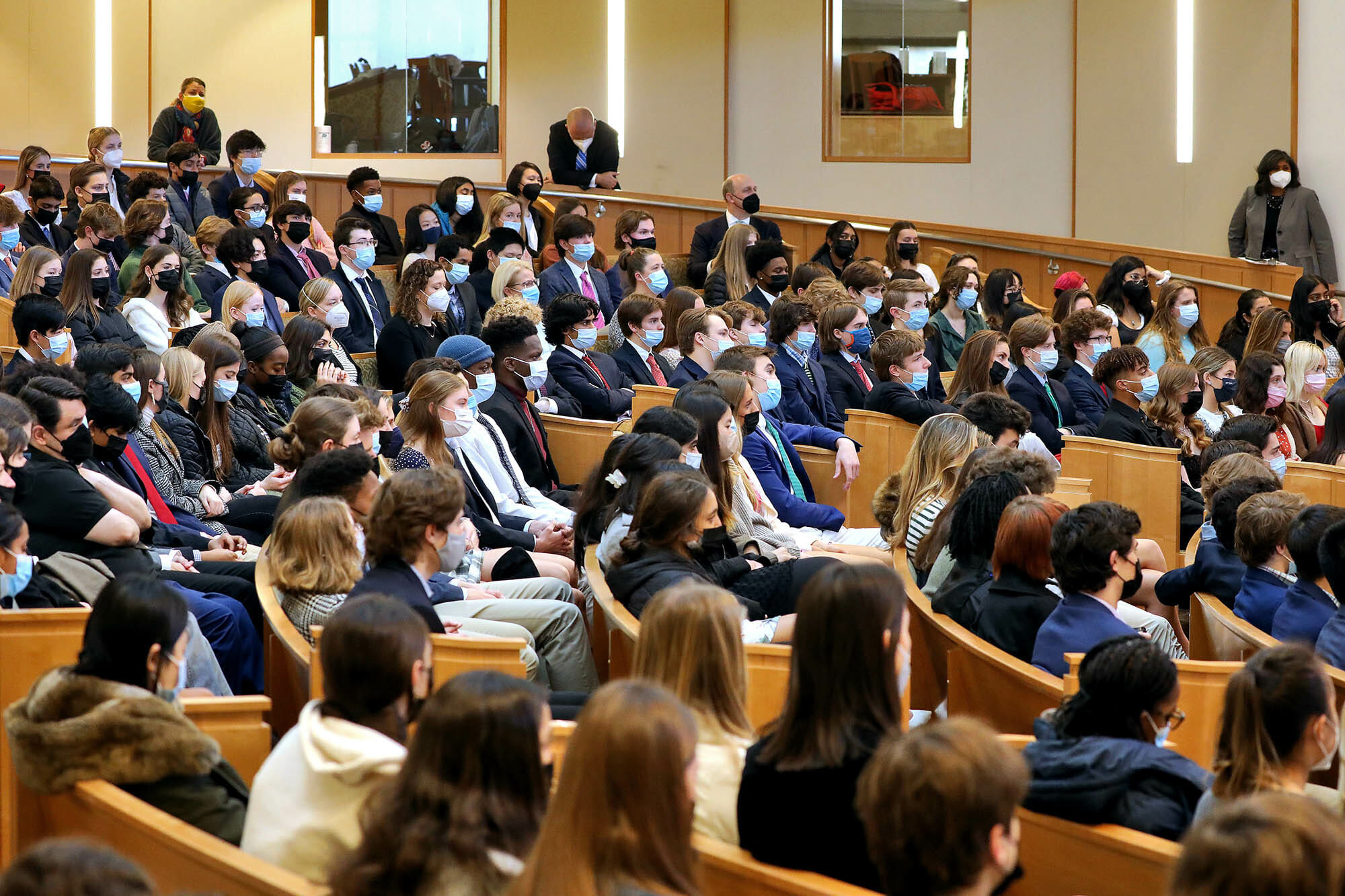 At this year’s Bond Lecture, Upper School school students gathered in Brauer Auditorium to hear from Mary Institute alumna Monica Howard Douglas ’90. Douglas is senior vice president and general counsel of The Coca-Cola Company. In this role, she oversees the company’s global legal function, reporting to Chairman and CEO James Quincey. She was appointed to her role in April 2021. She previously served as chief compliance officer and associate general counsel for the North America operating unit. Douglas joined Coca-Cola in 2004 as senior managing counsel. She went on to hold roles of increasing responsibility, including as legal director for Coca-Cola Southern and East Africa, before being named general counsel for Coca-Cola North America in 2018.