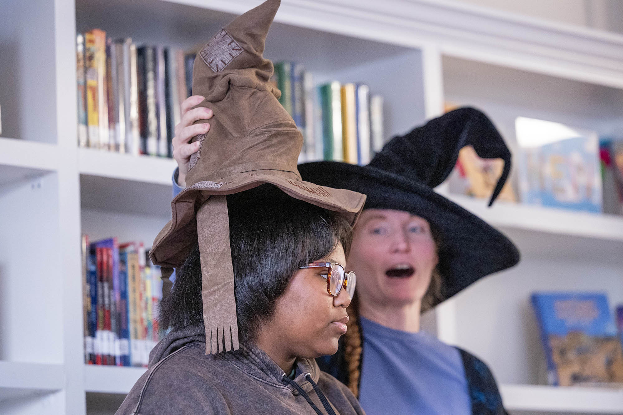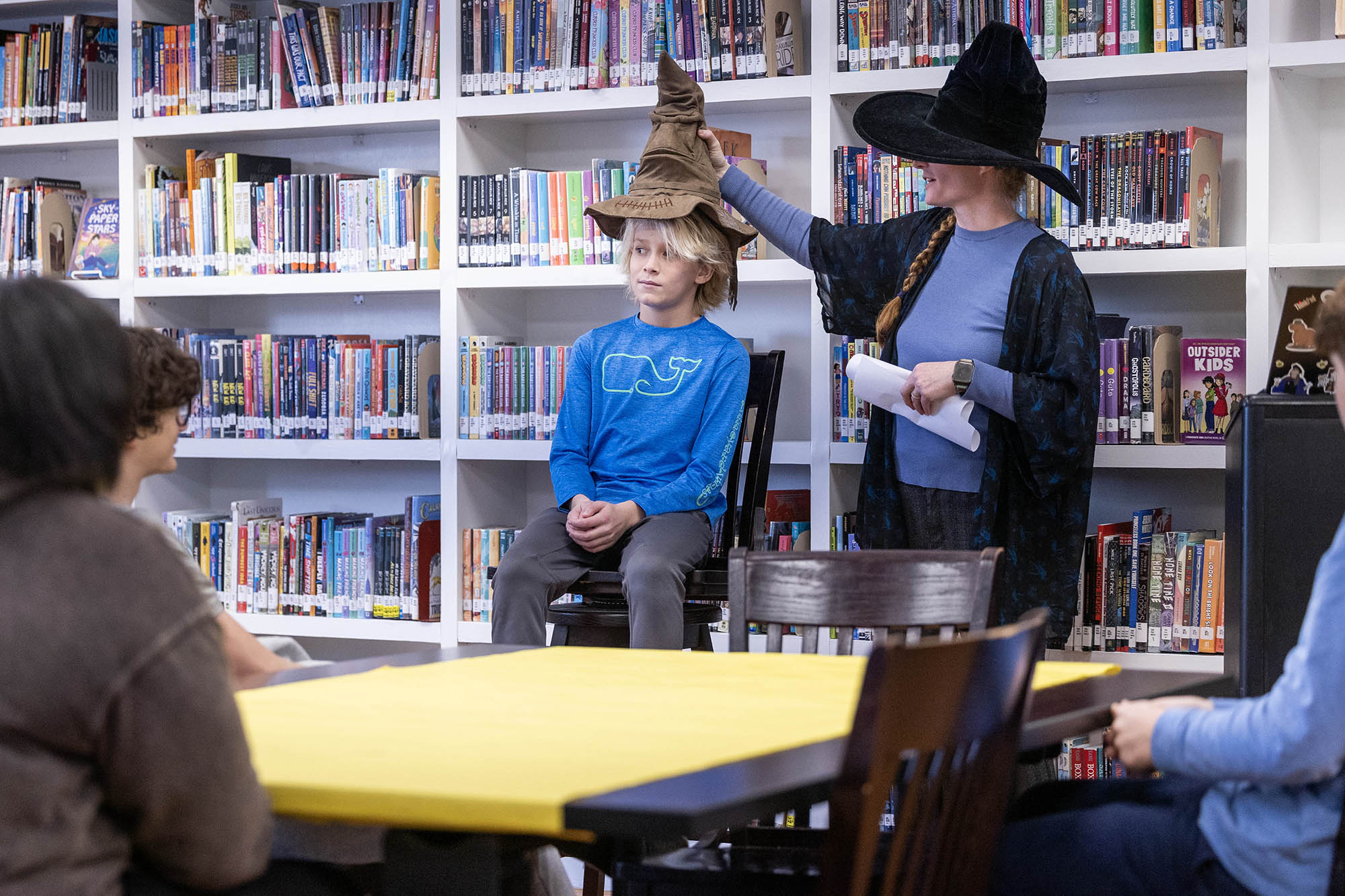 Dive into a magical world with the Winter Term class, Muggles of Messing. Muggles of Messing is a much-loved class inspired by the Harry Potter series, taught by Middle School Librarian Bethany Kavanaugh. Students take part in Herbology, Potions, Dueling Class, Quidditch, Care of Magical Creatures, Astronomy, Quill Making, Thank-you Writing, and House Sortings. In each class, students use their creativity to make something special.