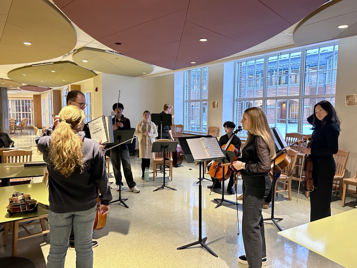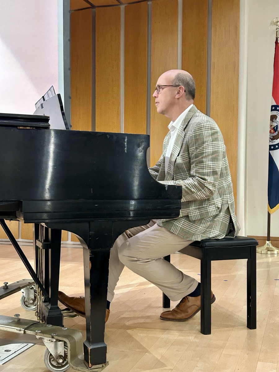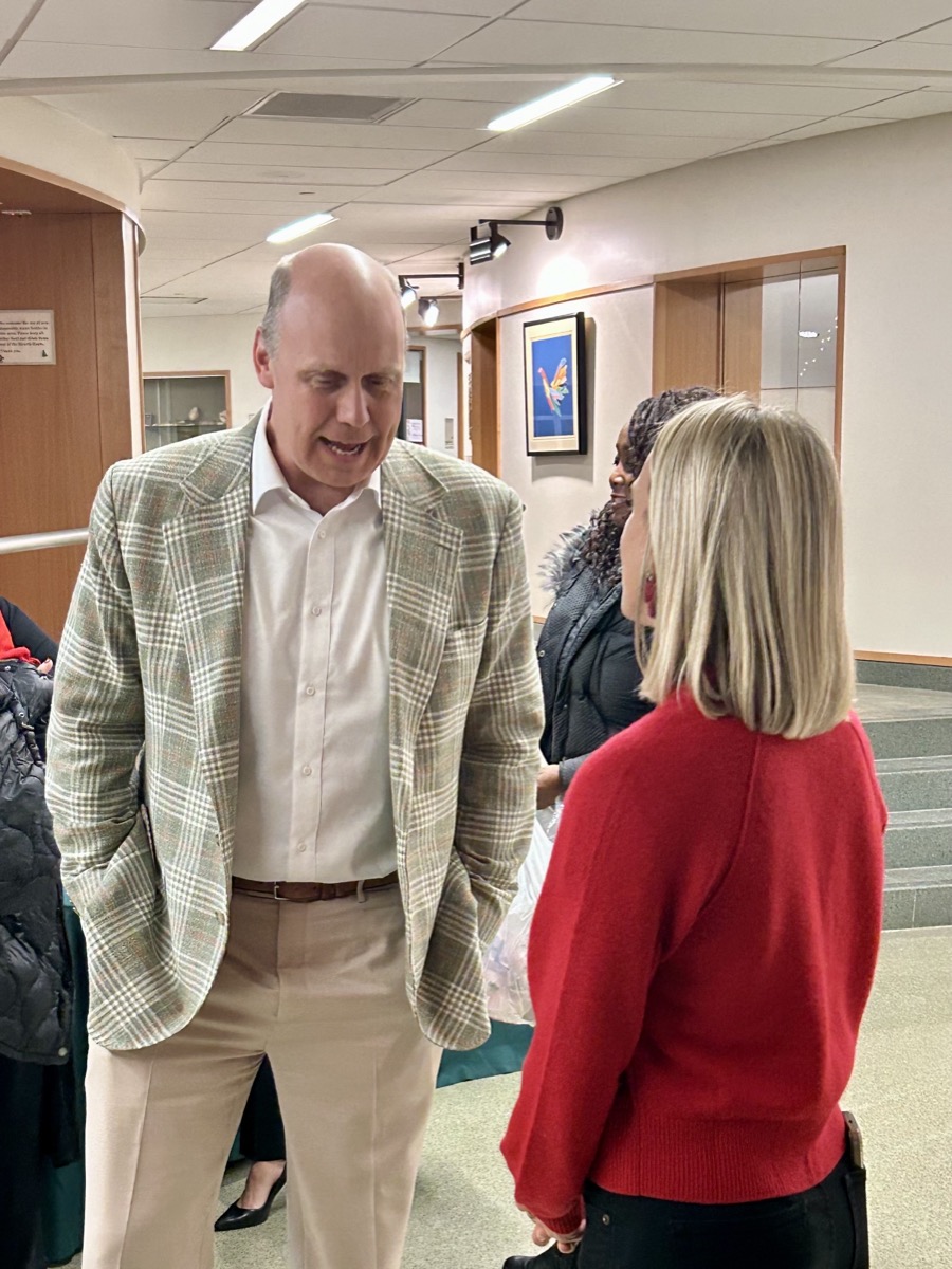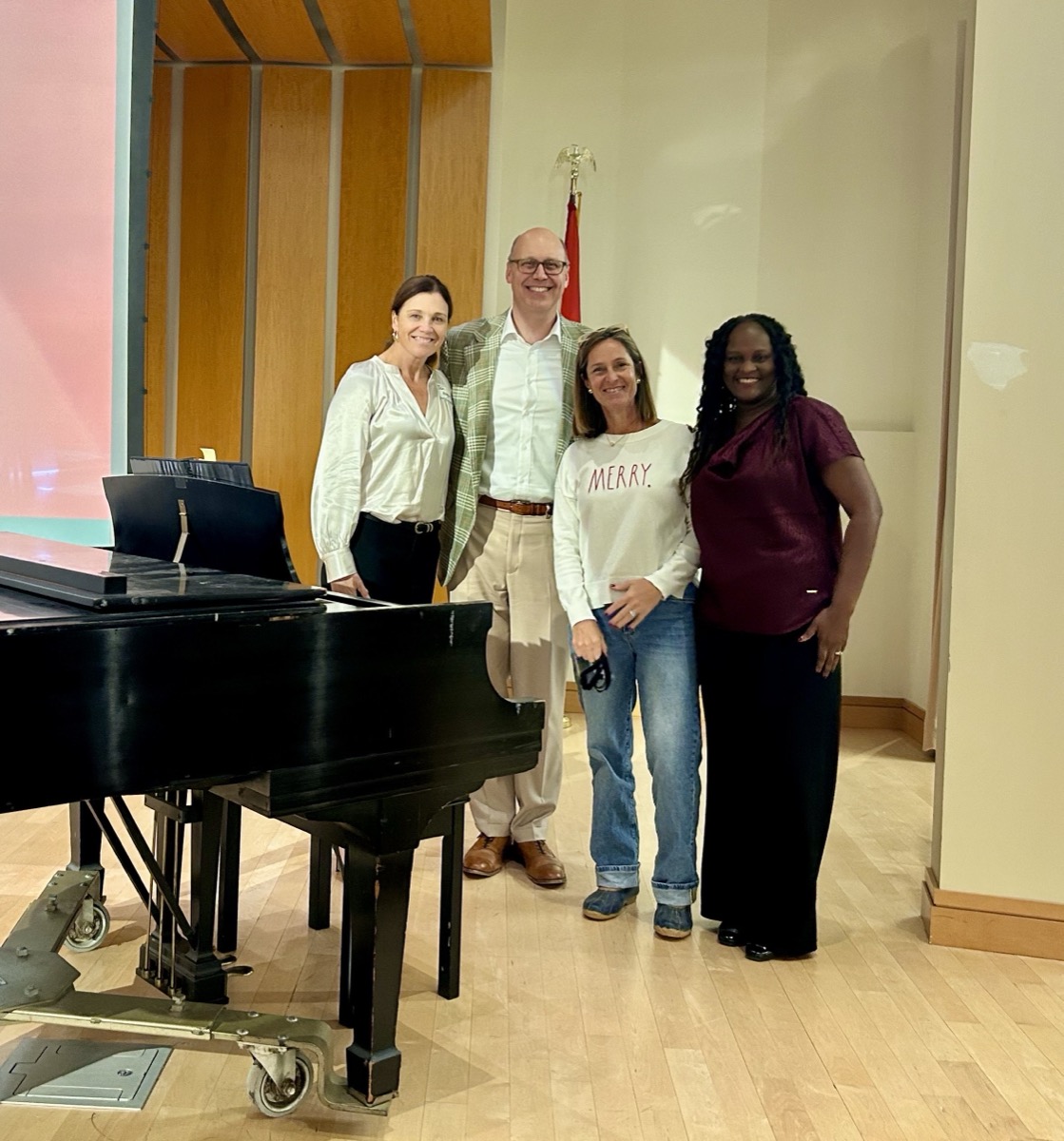 Attendees enjoyed festive music performed by student musicians, delicious holiday hors d’oeuvres, and fun photos. They also heard warm greetings from PA Past President Jen Hogan P’26, ’28, Current President Anne Schultz P’25, ’29, and Head of School Jay Rainey. In true holiday fashion, Mr. Rainey surprised everyone with an impromptu piano performance of The Christmas Song as well as his “Wish List for Chelle,” which contained thoughtful suggestions for welcoming the next Head of School.