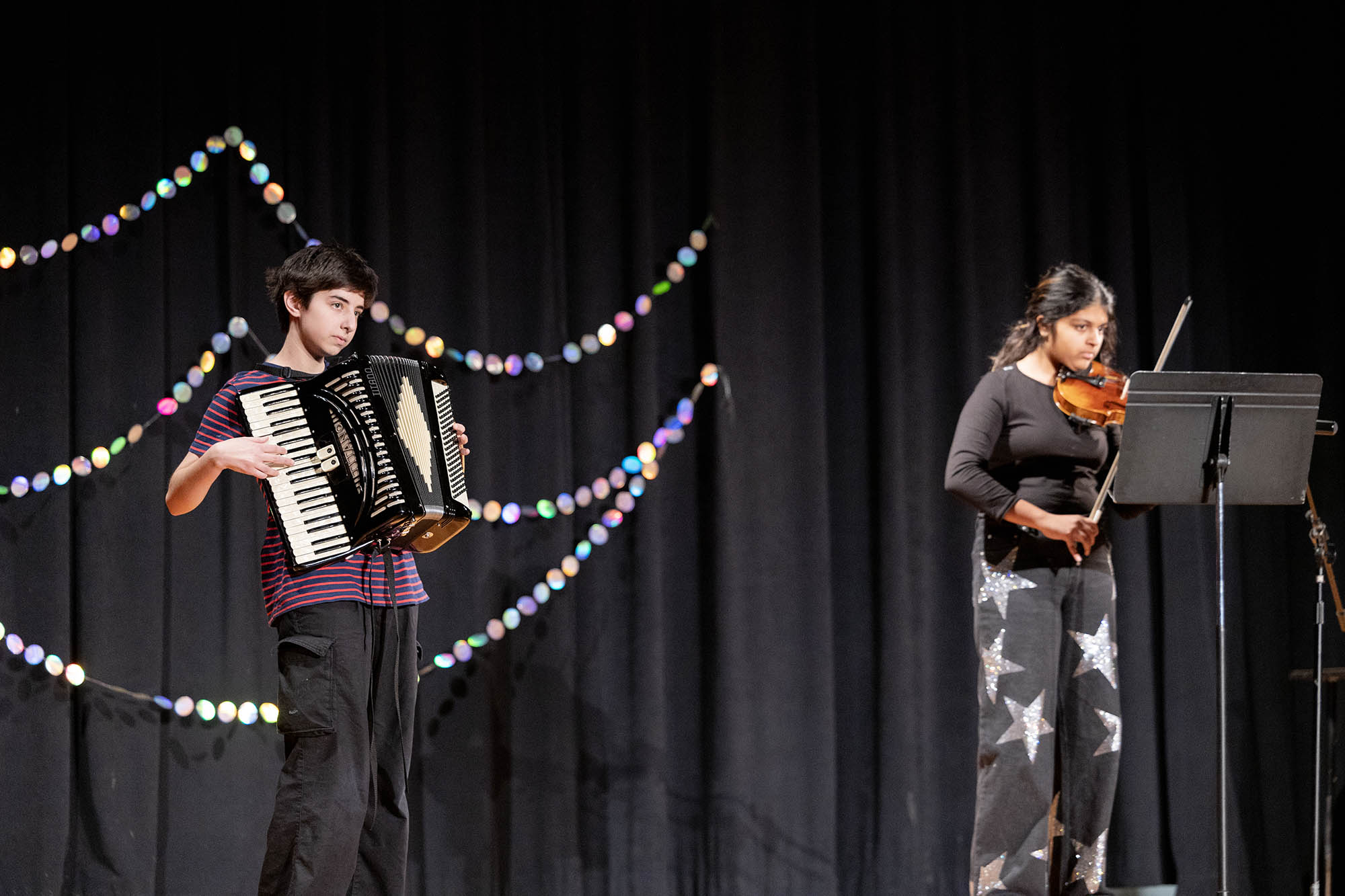 | A. Bierman ’30 & Ashna Jain ’30 | Keyboard Accordion &Violin – Kiss Me, Son of God by They Might Be Giants |