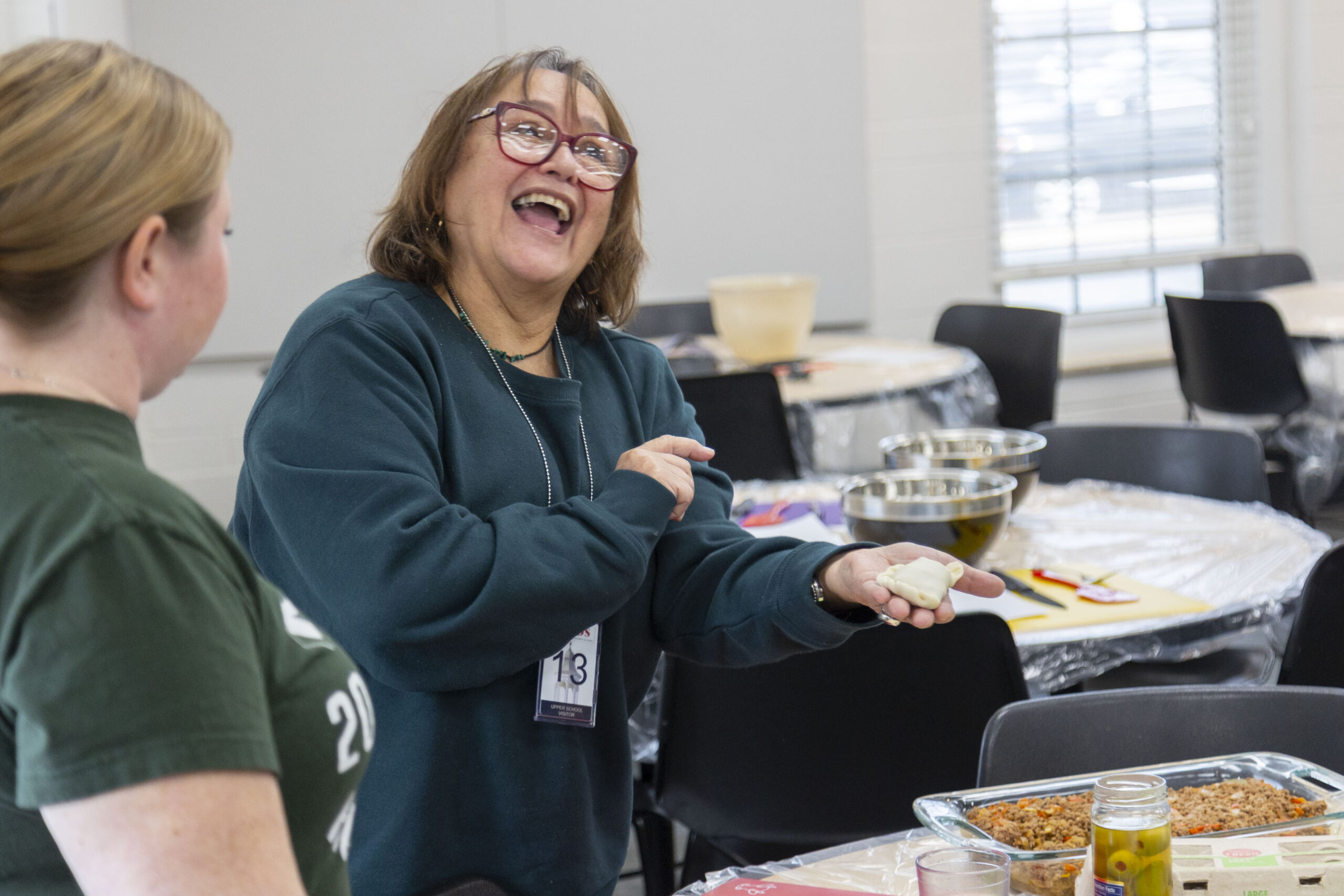 In addition to empanadas, students made other dishes during the course that are favorites of Hispanic culture, including guacamole, corn tortillas/chips, pico de gallo, jicama/pineapple salsa, restaurant-style salsa, and salsa verde. All in all, with the empanadas included, students prepared seven recipes through this class. ¡Que delicioso!