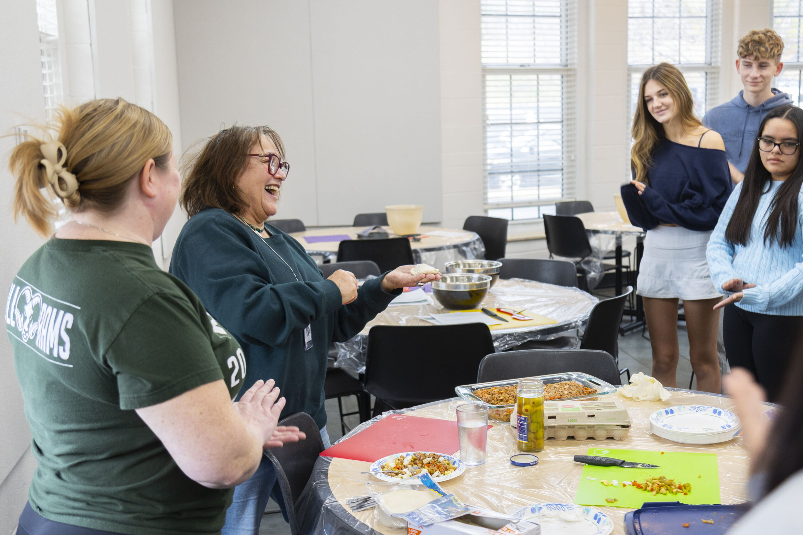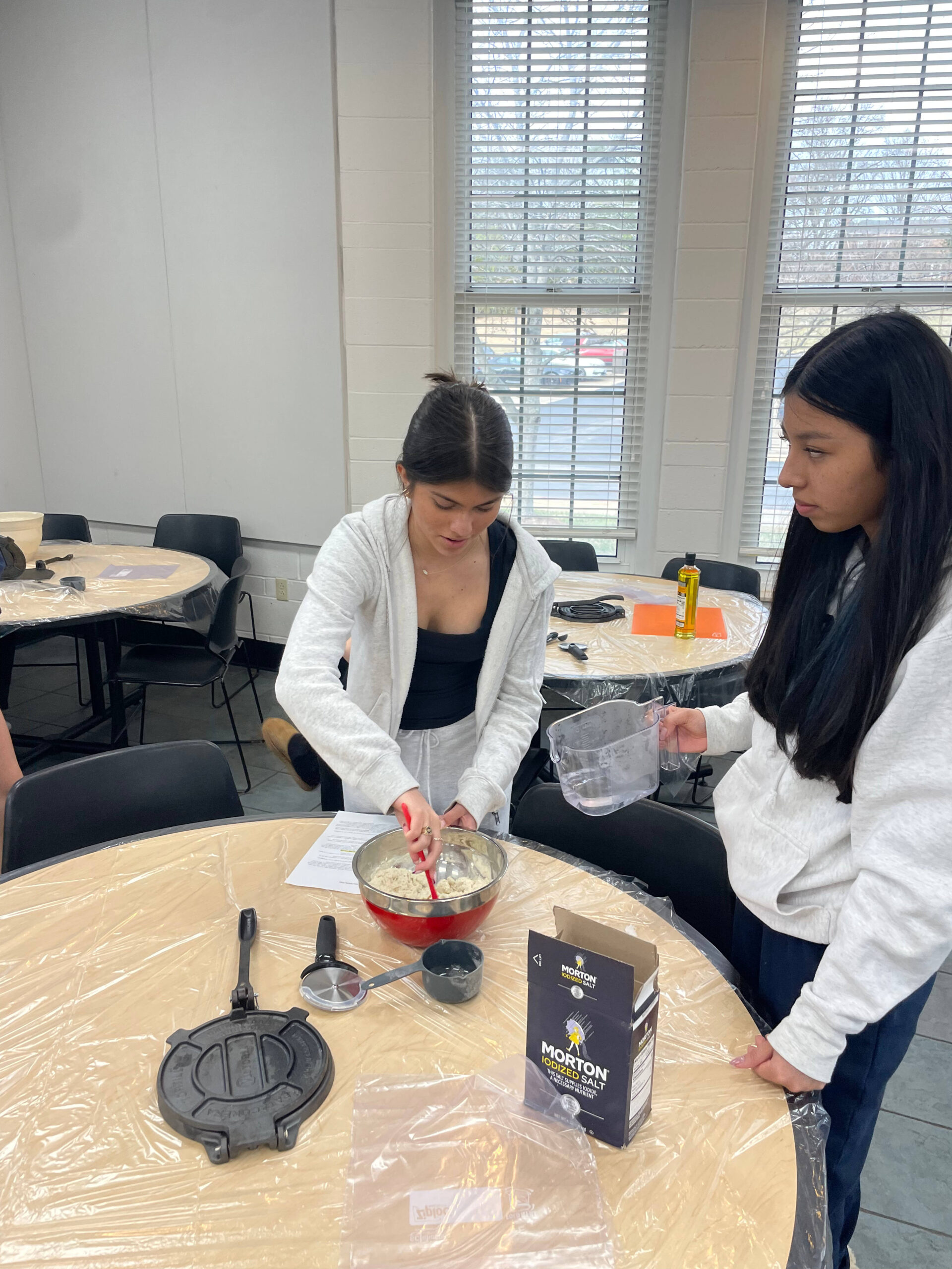 On Tuesday, January 13, guest speaker Norma West visited the class in the Upper School Dining Hall. West is a friend of FLIK Independent School Dining’s Executive Chef Julie Wilson, who joined the post-presentation cooking lesson. West shared her experience as an immigrant coming to the United States. She talked about family traditions around food and celebrations. Also, she talked at great length about the Spanish language, asking students about their level of Spanish and if they had used it in another Spanish-speaking country. She also taught them key words and ideas. West explained the culture around the empanada in Argentina. She examined the varieties and flavors and demonstrated the technique for making them. Students then made their own empanadas, which Wilson fried in the dining hall. What a fun, informative, and delicious class session it was!