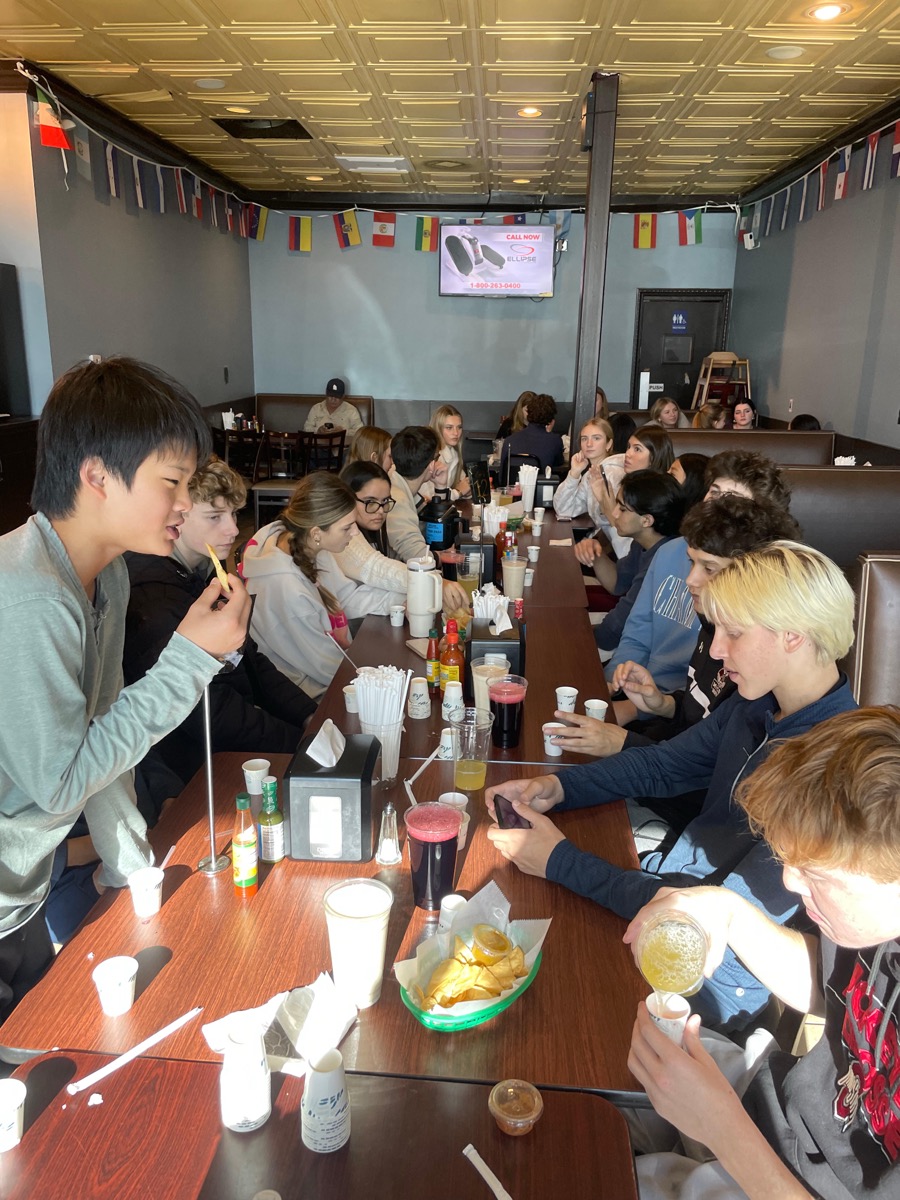 As part of the course, Upper Schoolers worked in groups to research the various Hispanic cultures and cuisines represented in the city and its surrounding areas, including which restaurants to visit to experience each cuisine and what each offers as its specialties. They also got to dine at two such restaurants: Taqueria Durango (Mexican) and El Guanaco (Salvadoran). Check out this Hispanic Food Guide to STL pamphlet, created by Isadora Yokoo ’28, Ava Cervera ’27, and Daniel Haas ’27. It features the restaurants the entire class found and studied. They hope others can use this to explore new cuisines and support the Hispanic community in St. Louis.