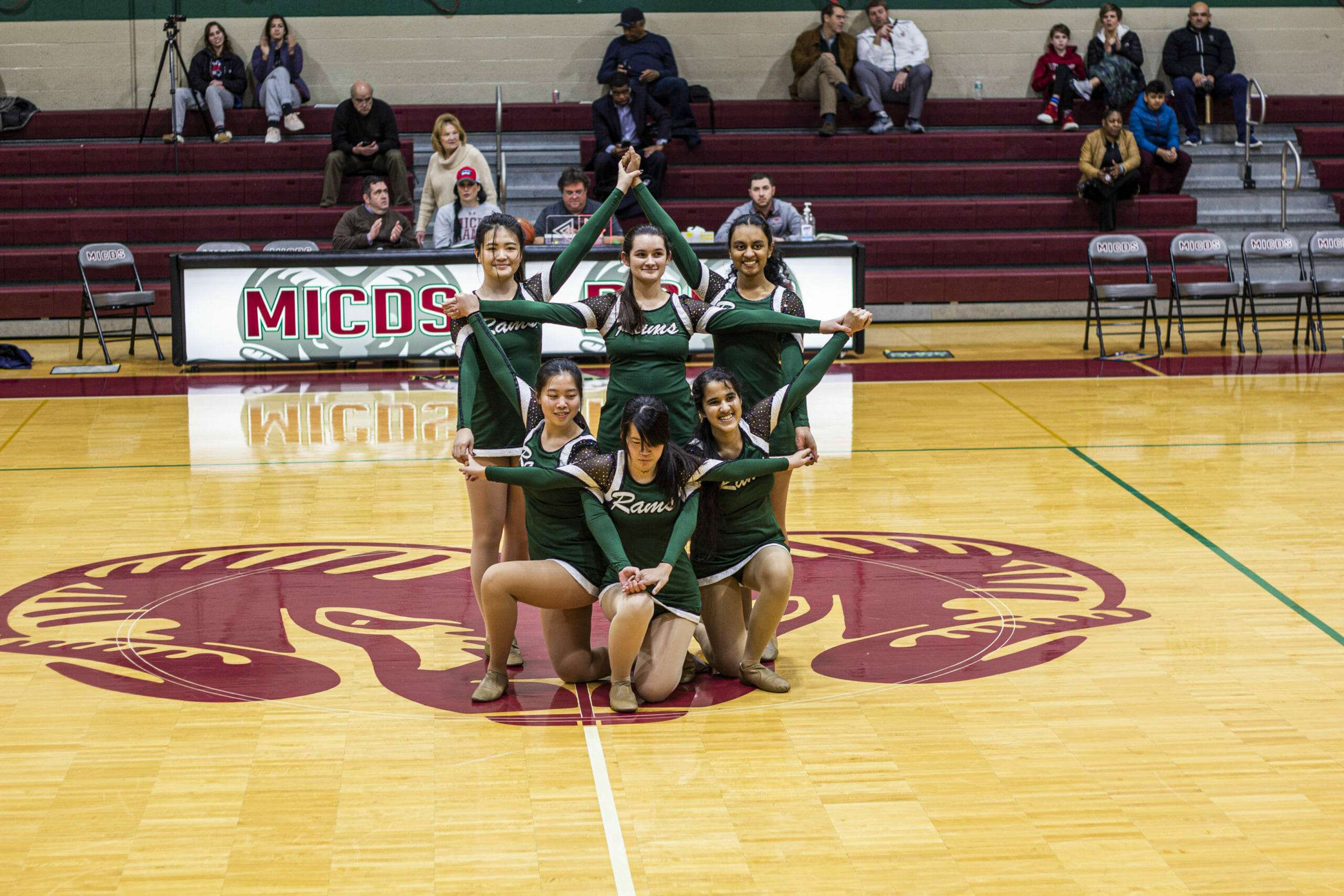 The dance team attended camp at Southeast Missouri State University to kick off the year. They learned five routines in three days and also improved upon their technique. In the fall, they performed sideline and halftime routines during home football games. The dancers demonstrated leadership and commitment to the MICDS community by guiding and mentoring Middle School dancers. The team finished strong this winter with halftime performances at Boys Varsity Basketball games.