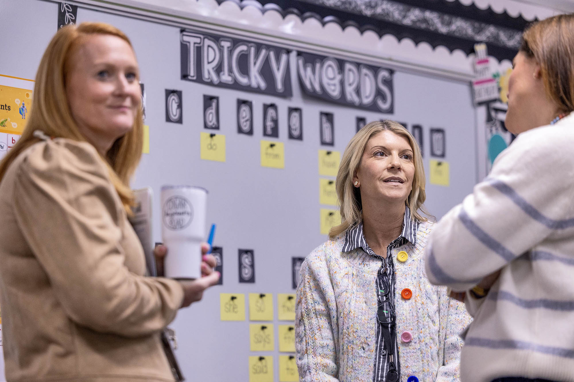 The visiting teachers next moved to the class of First Grade Homeroom Teacher Robin Campbell and Lower School Teaching Associate Kara Pracht. In their classroom, Ms. Pracht delivered an engaging phonics lesson that clearly demonstrated foundational reading skills instruction. This session provided a practical model for the visiting teachers. Following the lesson,  Mrs. Campbell shared her valuable feedback and expertise, specifically related to teaching CKLA lessons, fostering a rich environment for professional development and collaborative learning among the educators.