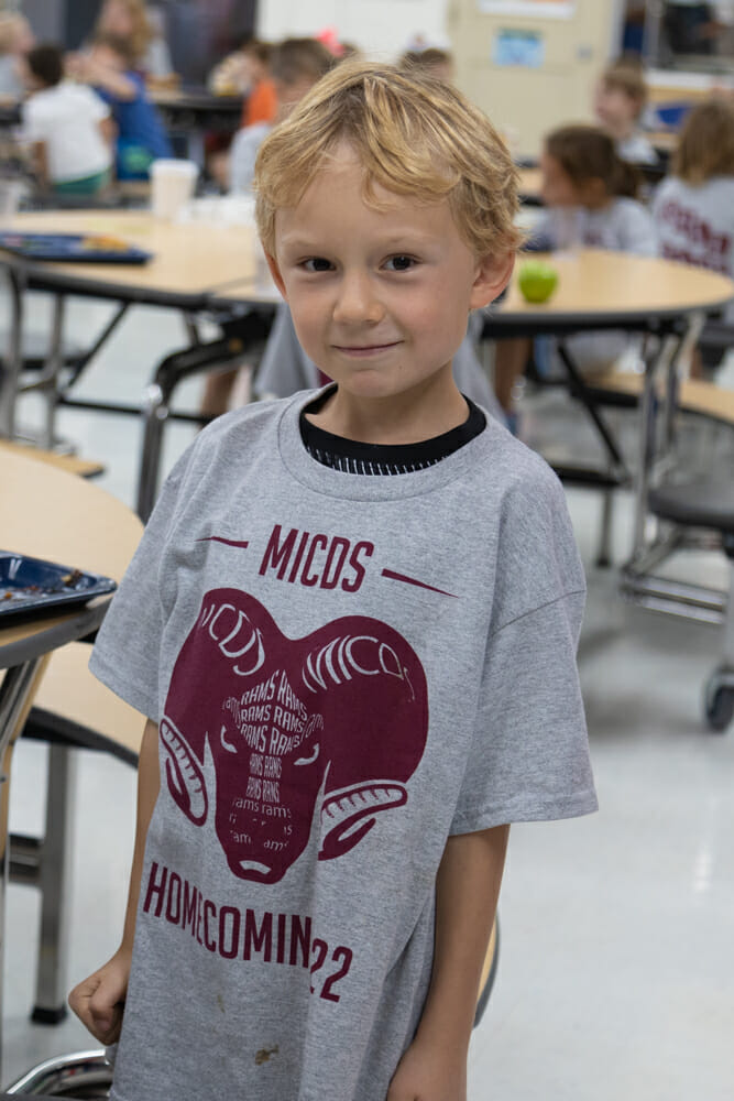 This year’s fantastic homecoming t-shirt design is by two juniors: Kelly Zhao ’24 designed the front and Armaan Chandak ’24 designed the back. Every student, faculty, and staff member receives a homecoming t-shirt, a cherished tradition at MICDS.