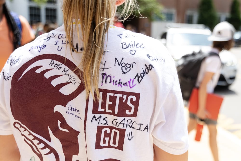 In the Upper School, the day was filled with yearbook signings, chalk-created alfombras (rugs), and even a guacamole contest! Upper School Spanish Teacher señora Robin Begley had Spanish 450 students create guacamole from scratch in pairs/partners. They had to bring all of the necessary ingredients and cooking utensils that would be needed to prepare this favorite dip. Additionally, they decorated tables for the contest. Once their guacamole was ready, judges walked around tasting the dishes with chips while students explained their creative process for making it. Congratulations to our guacamole winners! Beyond the contest, the day was full of reflection, heartfelt yearbook messages, hugs, and cheer for the summer.