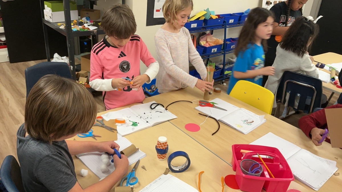 To better understand how plants like milkweed and wildflowers keep growing, students learned about the four main methods of seed dispersal: wind, water, explosion, and animals. In the Lower School makerspace, they tested their own dispersal models and even wrote creative comics showcasing the journey of a seed. Students also shared their knowledge with the Lower School community by creating a puppet show video on the importance of the monarch milkweed garden.