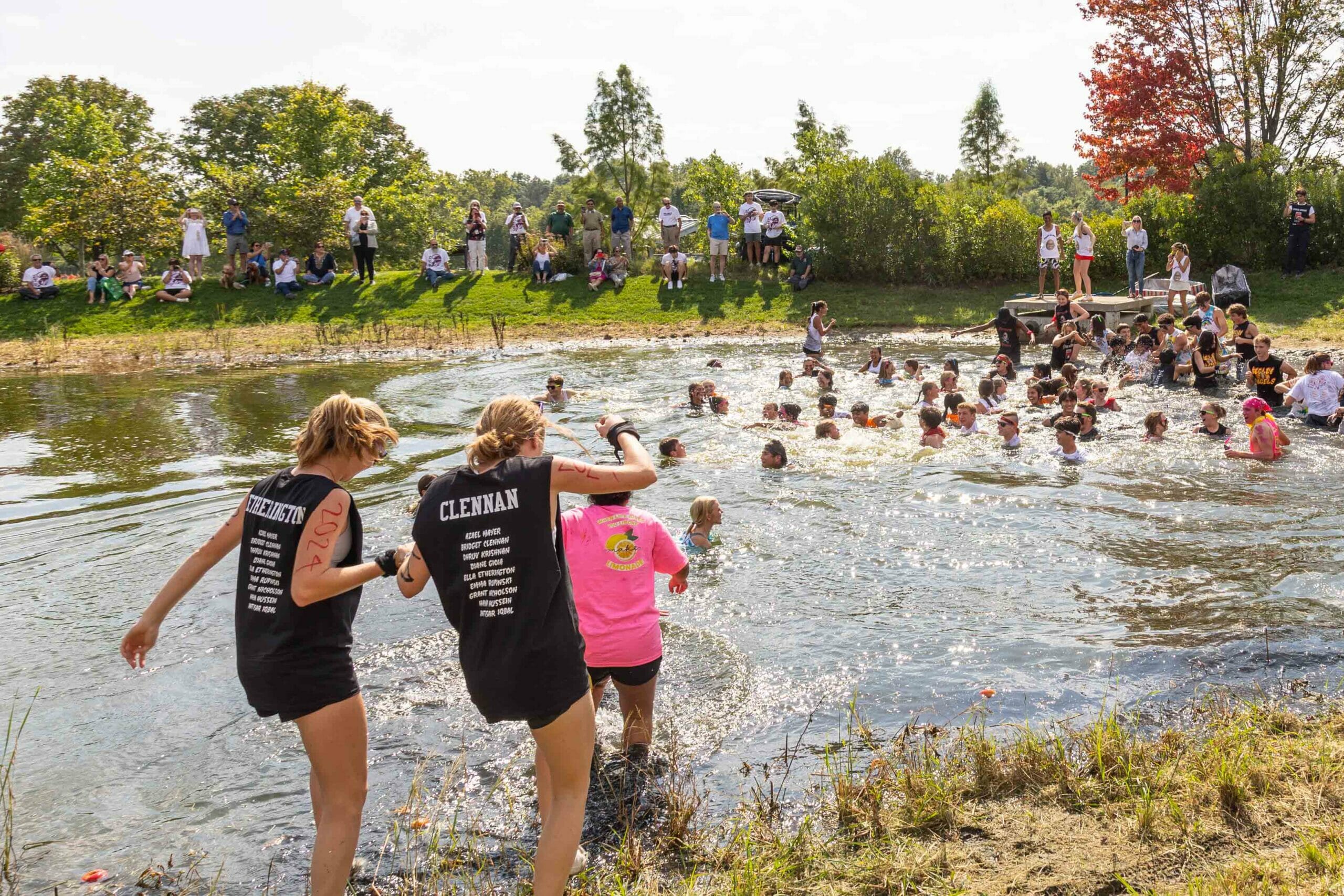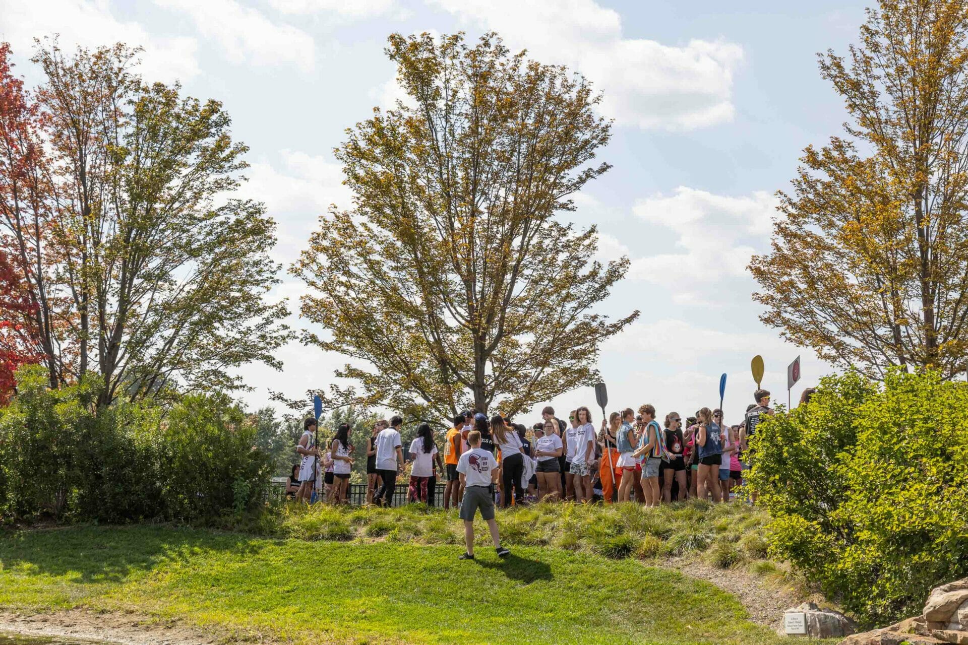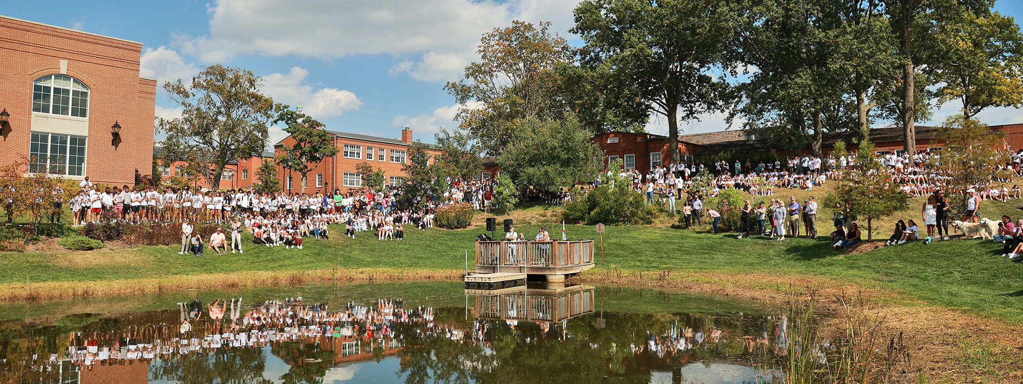The senior boat races set sail on day one of Spirit Week, launching waves of school spirit for all to enjoy. With vessels made only of cardboard, plastic, and duct tape, senior advisories picked their captain and raced each other for the annual maritime adventure on Polk Pond. Class President Willy Carpenter ’24 served as the event emcee, and per tradition, Upper School Arts Teacher Patrick Huber served as the DJ, spinning tunes from surf rock to yacht rock.