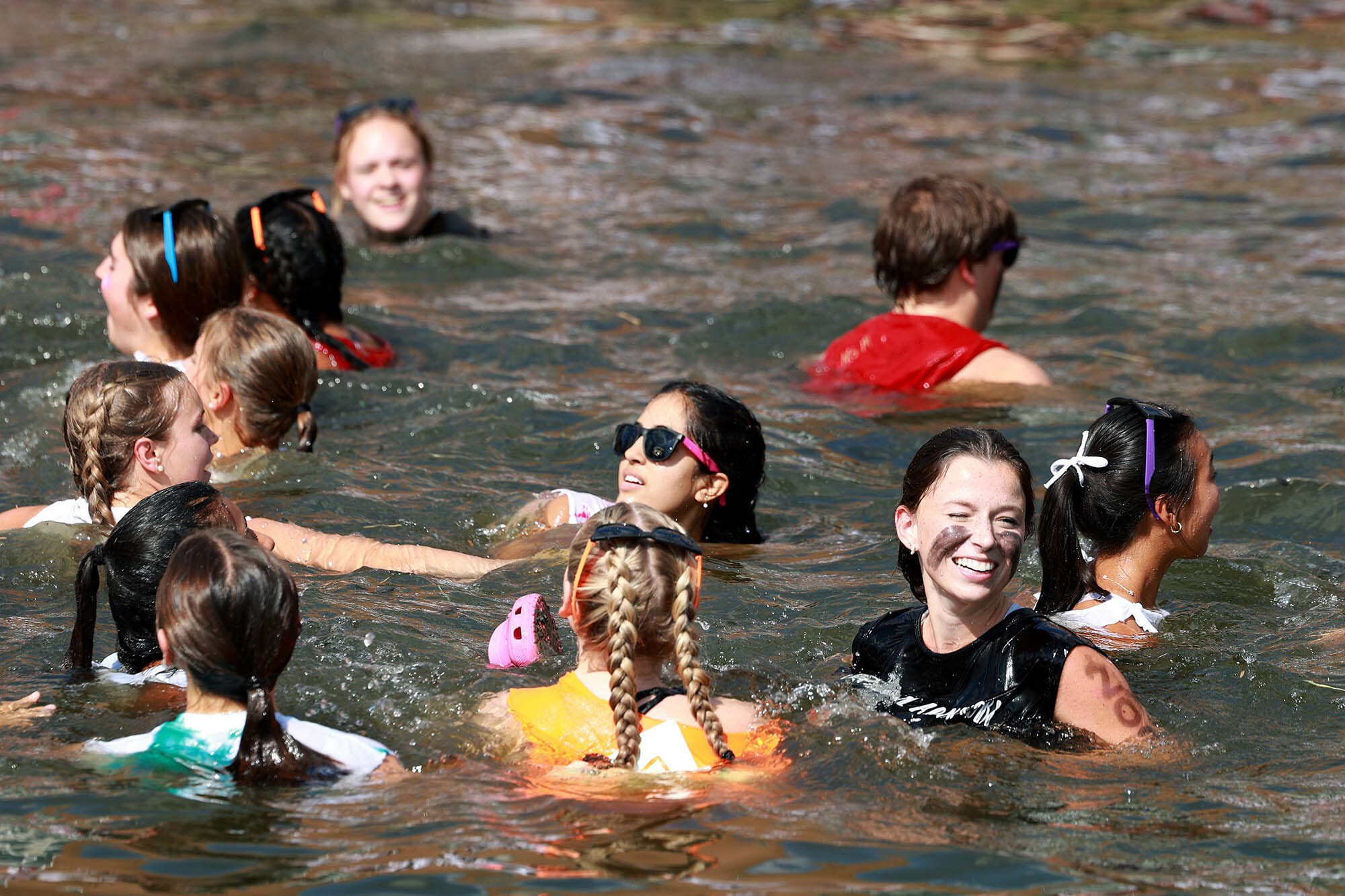 Upper School and eighth graders joined the viewing area for the tide of celebrations, while the seniors closed the event with a collective dip in the pond. Congratulations to the seafaring students and many thanks to our senior parent volunteers for providing snacks and cool shades!