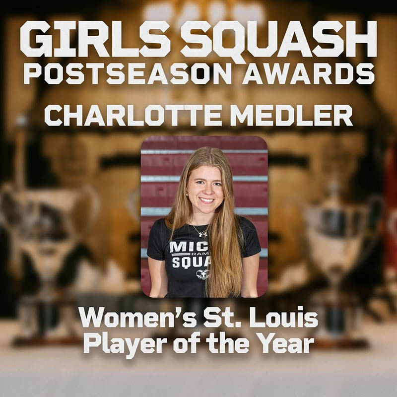 Charlotte Medler ’26 was named Women’s St. Louis Player of the Year by the Spirit of St. Louis Squash Foundation! Way to go, Charlotte!