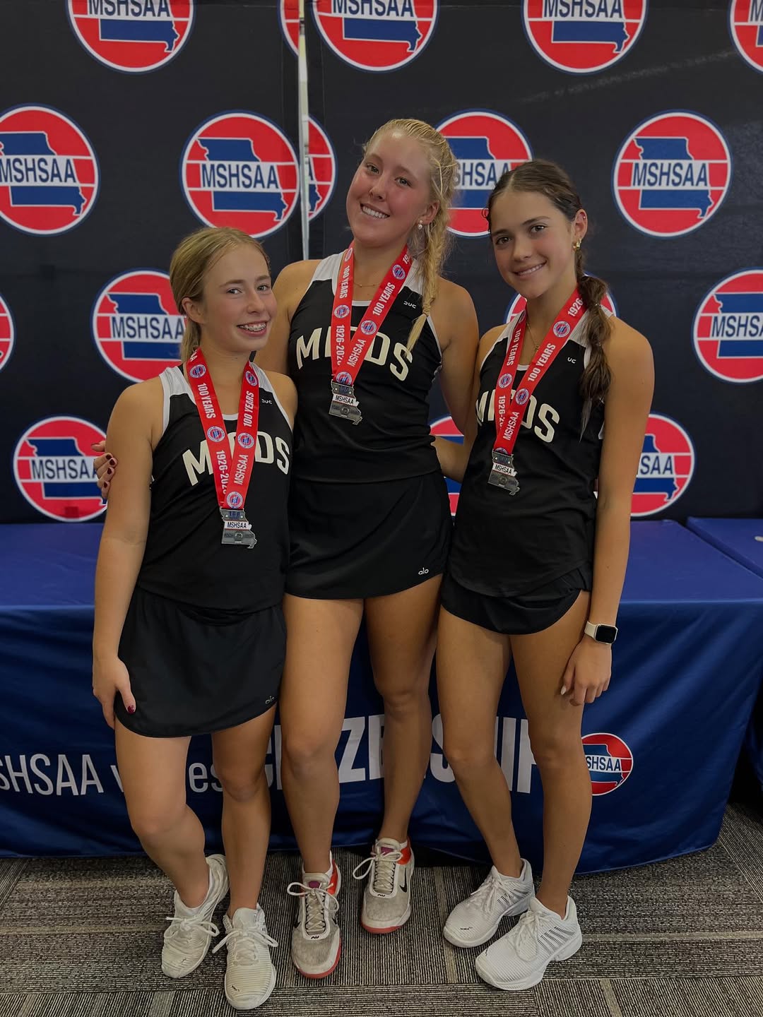 MICDS Girls Tennis did amazing job at Individual State! Congratulations to Ava Sock ’29 for getting second in singles and to Audrey Taves ’28 and Taylor Gast ’27 for getting second in doubles!