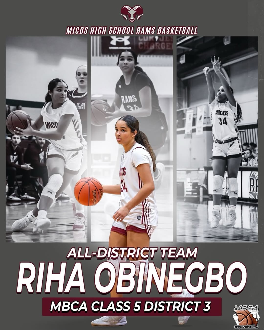 In additional Girls Basketball news, Jordyn Haywood ’28 was announced as the Class 5 Player of the Year, the Class 5 District 3 Player of the Year, and the Missouri Defensive Player of the Year. Congratulations also to Lily Harris ’28 and Riha Obinegbo ’28 who made the All-District Team for the Missouri Basketball Coaches Association Class 5 District 3.