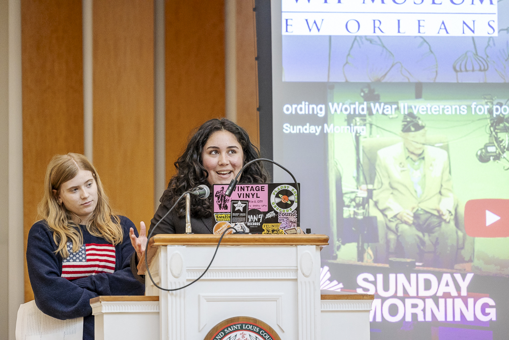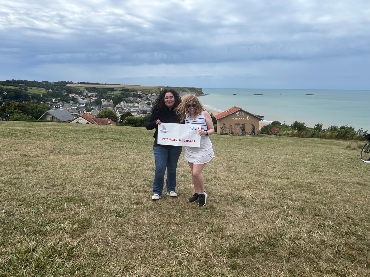 Last December, Ava Casillas ’26 and Taylor Nuzum ’26 were selected to be the two 2025 Pete Wilson ’51 Fellows for the National World War II Museum’s Normandy Academy. Normandy Academy is a 12-day immersive summer learning experience in New Orleans, Louisiana, and Normandy, France, that challenges students to learn from the choices made before and during the historic D-Day landings. Through the generosity of Mr. Edward T. Baur ’64, two MICDS students are chosen every year to participate in the Academy with full scholarships.